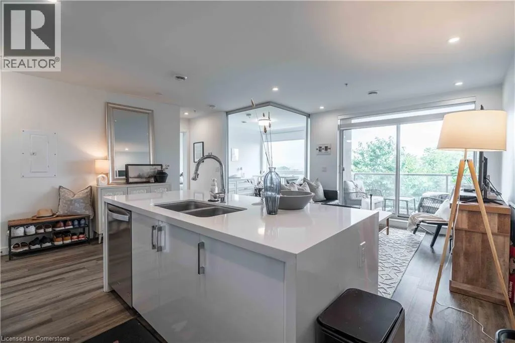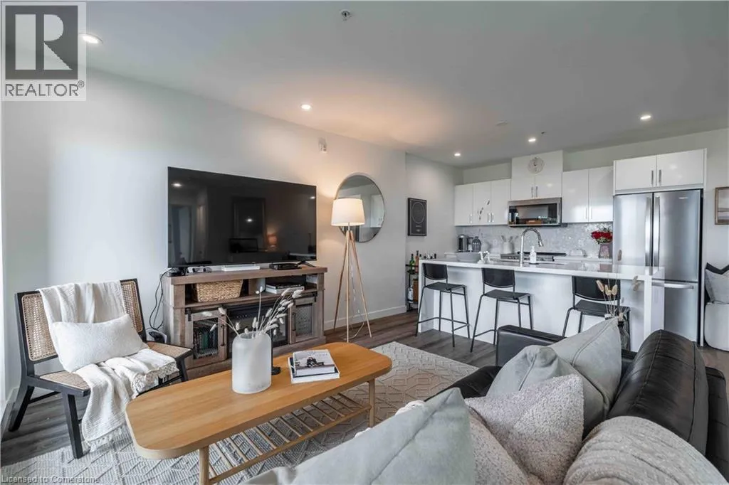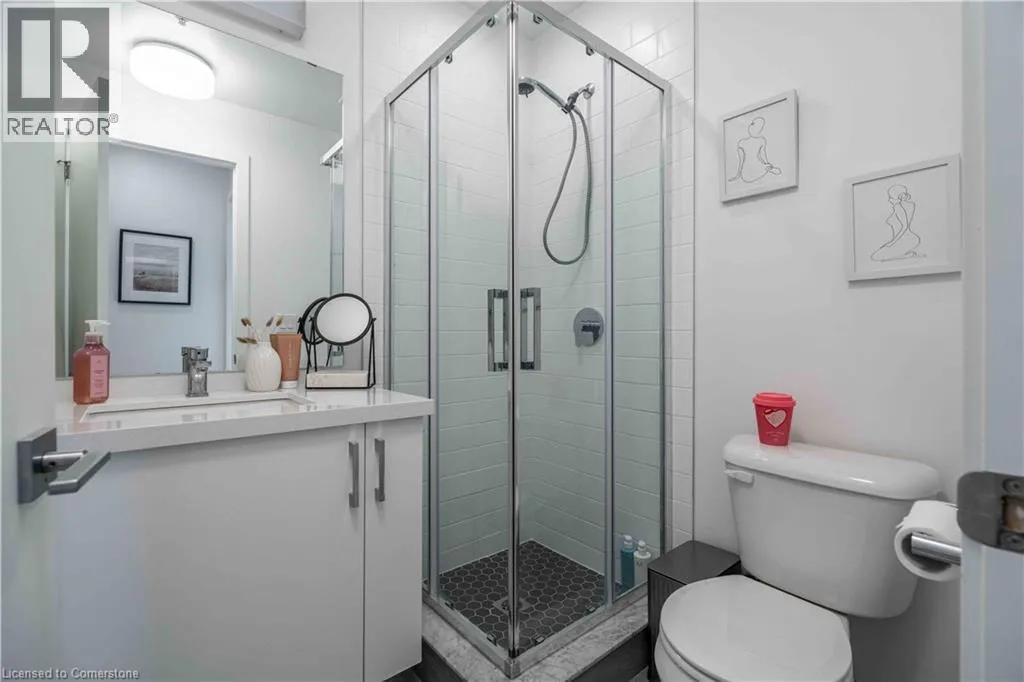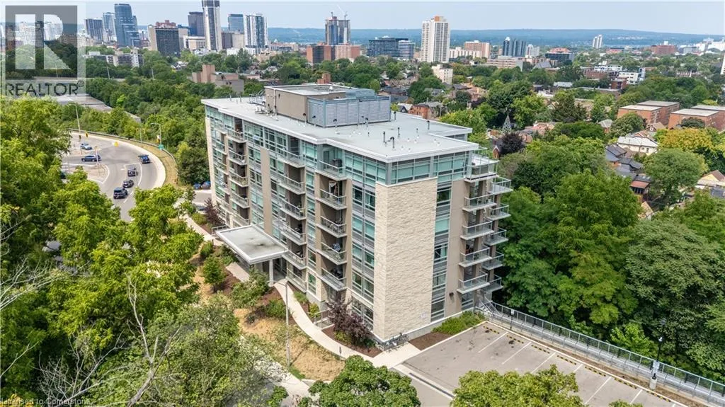 VICTORIA AVE S TO CHARLTON AVE E Perfect for first-time buyers, downsizers, or investors, this Spruce model unit in Vista 3 Condos offers two bedrooms and two bathrooms. Located in Hamilton's vibrant Stinson neighbourhood at the base of the escarpment, the open-concept living space features a gorgeous kitchen with a white quartz island, waterfall edge, and stainless steel appliances. The amazing unit boasts pot lights, a neutral palette, custom window coverings, laminate flooring, and in-suite laundry. Enjoy breathtaking city views from the covered balcony, and relax in the primary bedroom, which includes a walk-in closet and a four-piece ensuite. The building offers amenities such as a party room, fitness center, and visitor parking. This unit also includes one underground parking space and a locker and is conveniently located near Jurakinski, The General, and St. Joseph's Hospital as well as public transit. (id:27476)