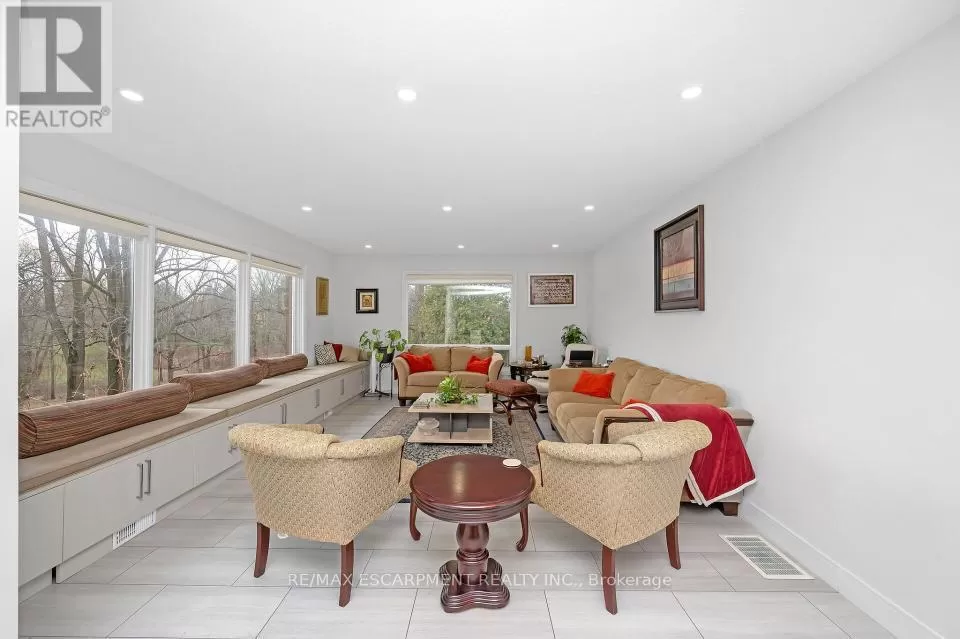 Brock Rd to Hwy 5 and Ofield Rd Welcome to your dream country retreat! This fully renovated ranch bungalow set well back from the entrance, sits on 2.47 scenic acres, offering the perfect blend of privacy and functionality. Enjoy modern finishes throughout the open-concept main floor featuring a stylish kitchen, a spacious living area, and bright dining space with serene views. With a few minor adjustments this home would give you 2+2 bedrooms, 2.5 updated bathrooms, and a finished lower level with separate entrance ideal for in-law suite potential. Outdoors, you'll find a tranquil pond, a detached workshop with heat and hydro for hobbies or storage, and a 2-car garage. Bonuses include natural gas to the home, garden irrigation and complete water filtration system. Whether you're entertaining, relaxing, or working from home, this property has it all. Peaceful rural living just minutes from town amenities! RSA. (id:27476)