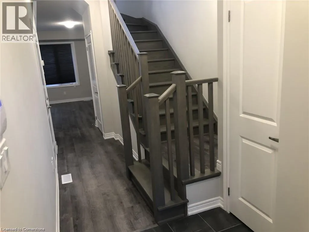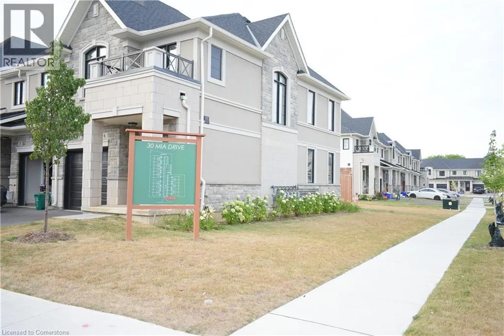 UPPER JAMES & STONECHURCH, DICENZO, LEFT ON AQUASANTA, RIGHT ON MIA DR Carpet-free 3 bedroom, 2.5 bath townhome featuring hardwood floors throughout both levels and a matching winding staircase. The open-concept kitchen offers abundant upper and lower cabinetry, an upgraded pantry, and stainless steel appliances. The second floor includes an upgraded laundry room with a gas dryer. The spacious primary bedroom features three large windows, a walk-in closet, and a stylish ensuite with a glass-enclosed shower. Two additional bedrooms are generously sized with ample closet space. Recent updates include newly installed window coverings. Located close to shopping, restaurants, parks, schools, and easy highway access via the âLinc.â Move-in ready and beautifully maintained. (id:27476)