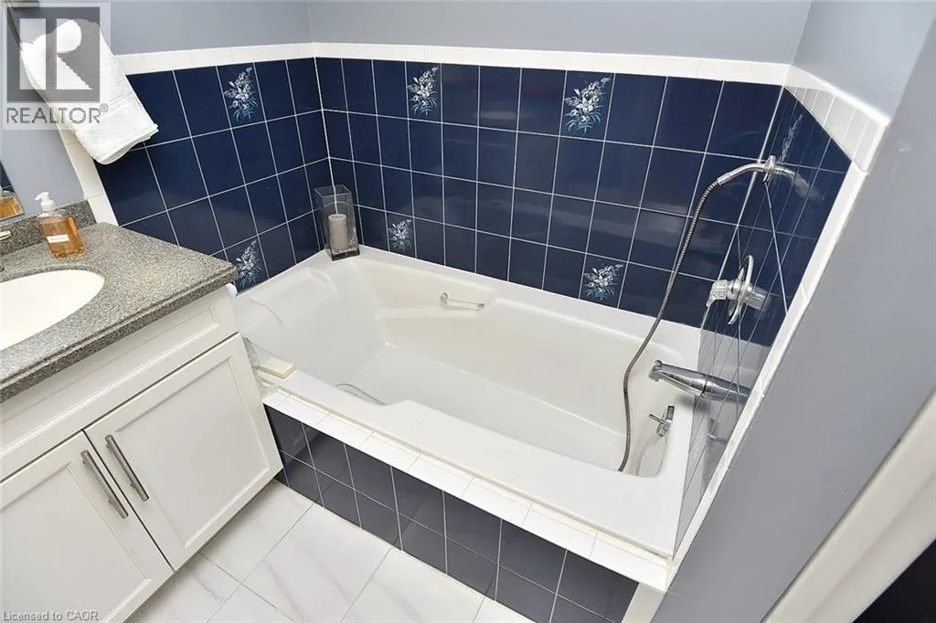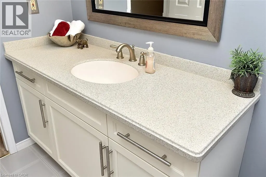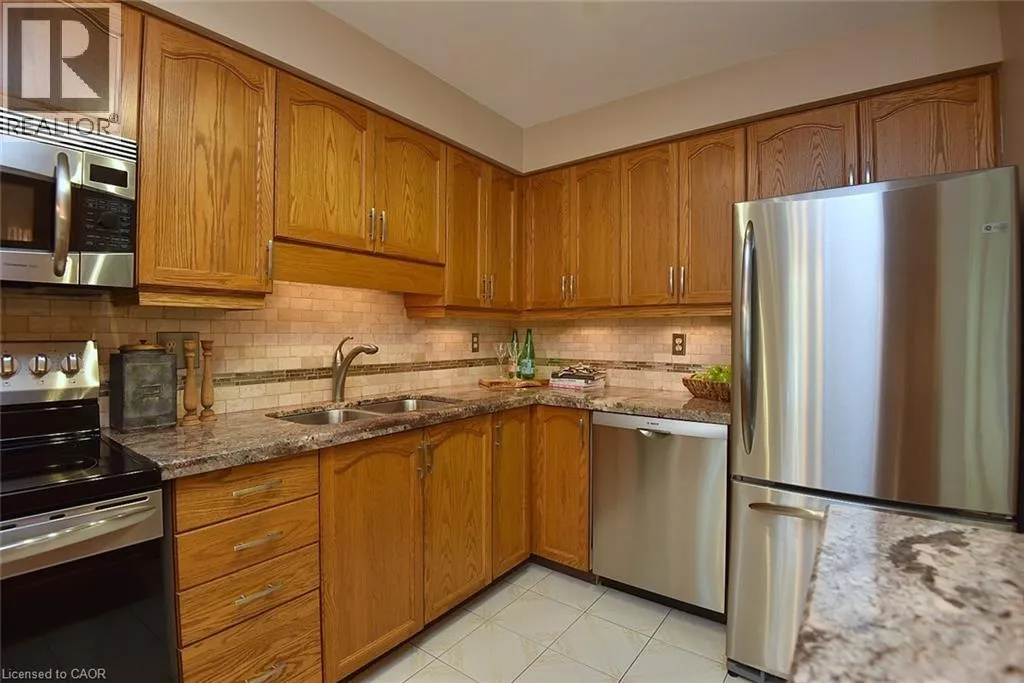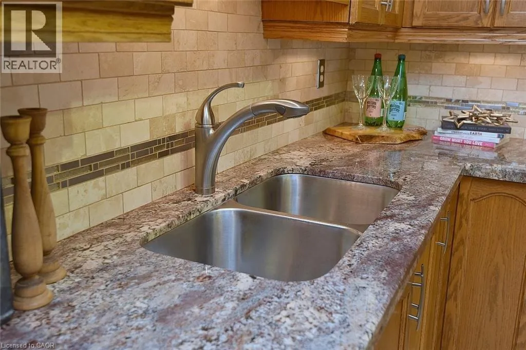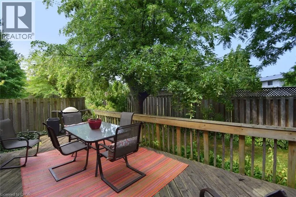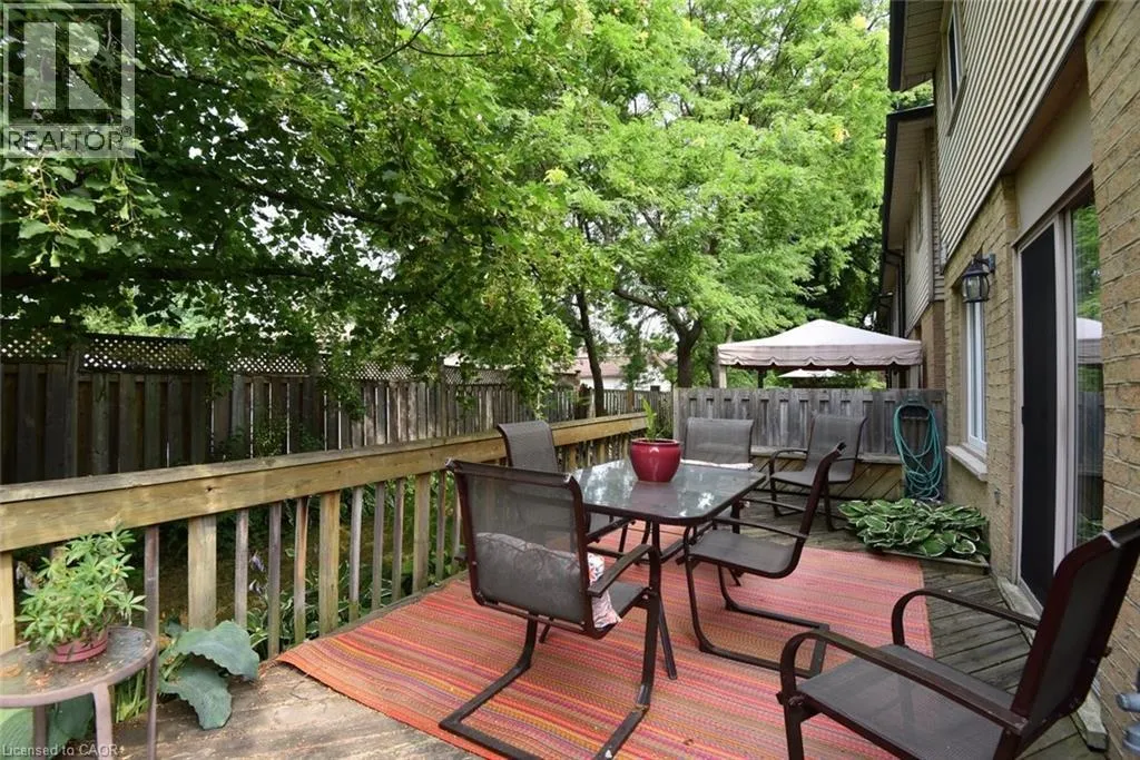 Mohawk Rd S on Upper Paradise, just north of the LINC Discover exceptional living in this meticulously maintained 3-bedroom, 3.5-bath end-unit townhome in a tranquil complex of just 20 units. Ideally situated near shopping, restaurants, parks, schools, recreation centers, and major highways (Linc and 403/QEW), this home combines prime location with refined comfort. The bright main floor showcases a welcoming living room with a bay window, brand new carpet, a conveniently placed powder room, elegant family room with hardwood floors, gas fireplace and California shutters situated beside a sophisticated open-concept dining area. The renovated kitchen dazzles with neutral ceramic flooring, quartz countertops, stone backsplash, SS appliances, and a distinctive coffee bar featuring raised counter and shelving. Upstairs, the primary bedroom retreat offers serene space with dual windows and California shutters, complemented by a spa-like ensuite with grey stone countertop, undermount sink, deep tub and stand-alone shower. Two additional well-appointed bedrooms with California shutters and generous closet space and a second 4-pc bath complete this level. The finished basement extends your living space with a recreation room featuring a custom built-in bar with sink and mini-fridge, built-in shelving with desk area ideal for a home office, practical laundry room, and 3-pc bath with stand-up shower. Additional features include a single attached garage with inside entry and a brand new interior door, central vacuum system, new light fixtures on every level, gorgeous perennial gardens and convenient visitor parking beside the unit and just steps away. The hallways, primary bedroom and living room have all been freshly painted. Move-in ready with tasteful, neutral décor throughout, this exceptional townhome offers the perfect blend of privacy, style, and convenience in a friendly, close-knit neighborhood. What an ideal setting for both comfortable everyday living and elegant entertaining in the home and outdoors on the private deck. (id:27476)