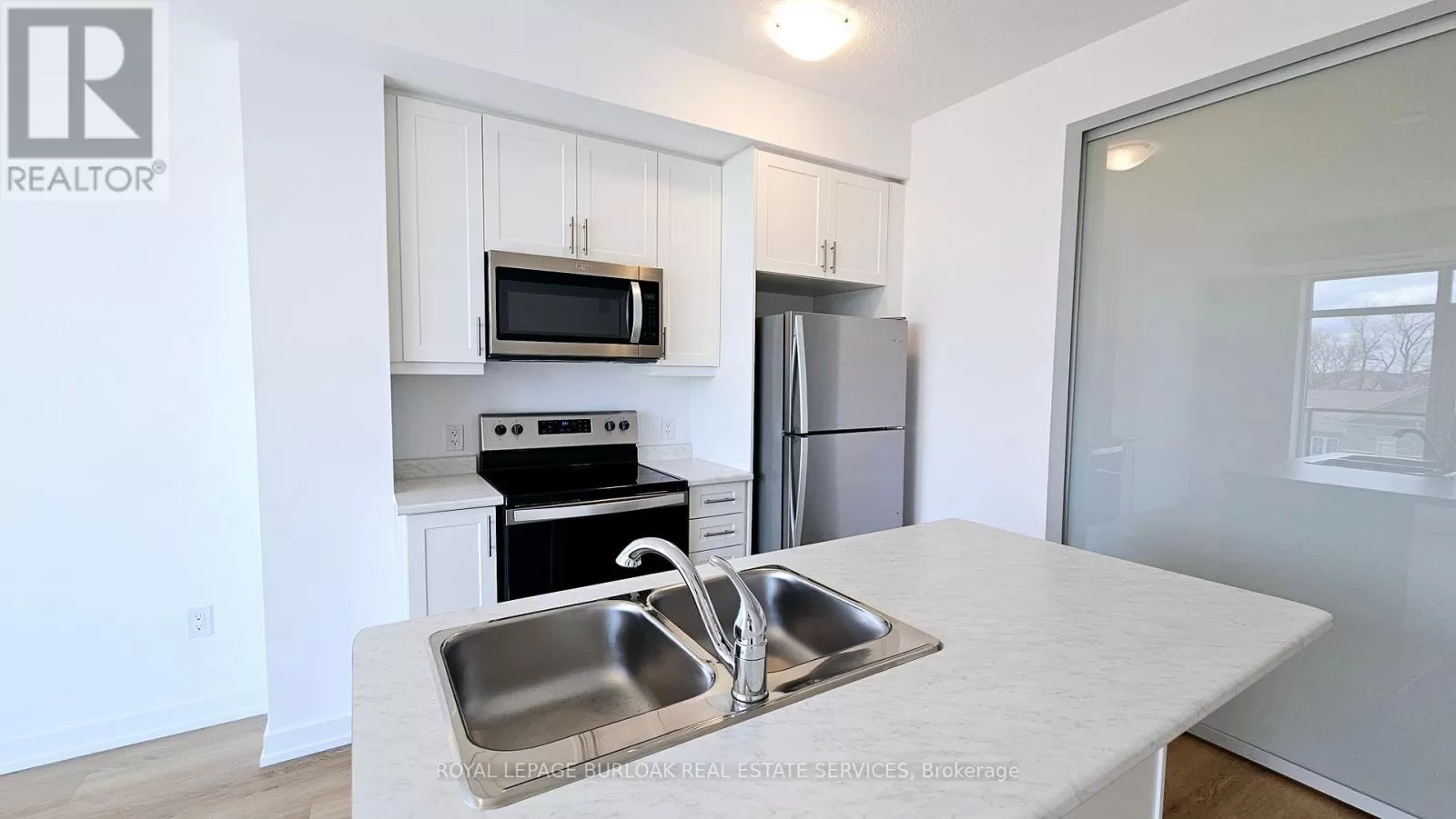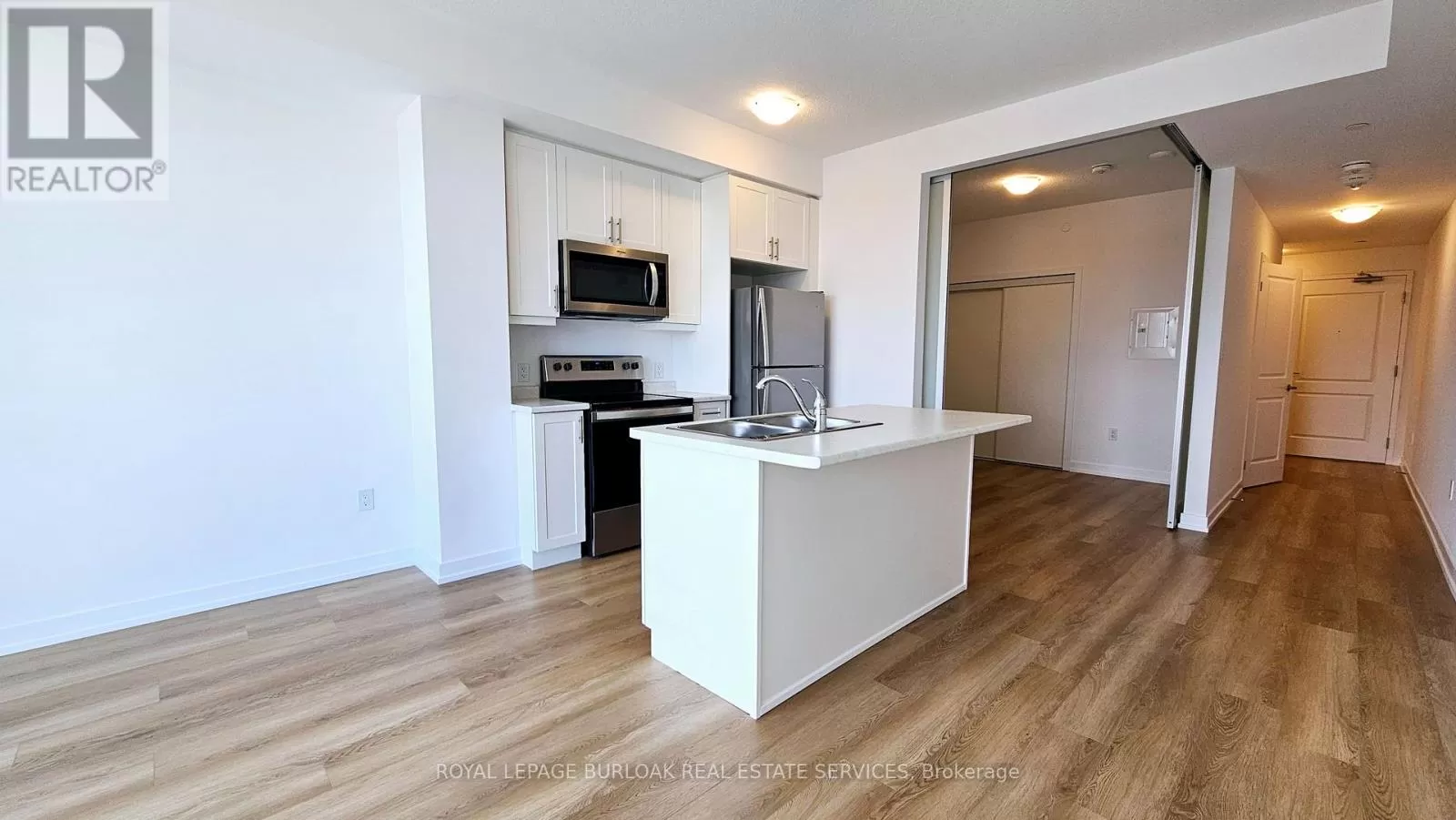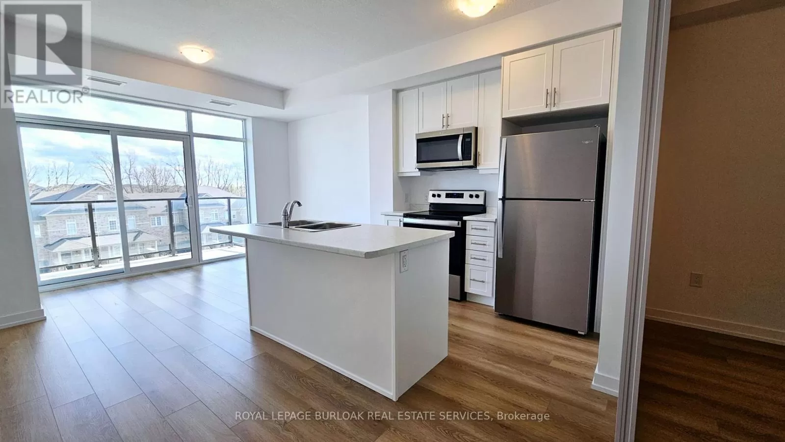 Dundas/ Waterdown Rd Welcome to 470 Dundas St East, a brand new condo building in a great location. Located on the 3rd floor this bright modern unit features, stainless steel appliances, a kitchen island, sand coloured vinyl plank flooring, 4 piece bathroom, large private bedroom, insuite laundry & south facing balcony with great views. Building amenities include exercise room, party room, and rooftop patio with deck & bbqs. Includes one surface parking spot & dedicated locker. Close to amenities, old Waterdown, 407, minutes from Aldershot Go & highway access. Move in ready perfect for bachelor, young professional or couple. (id:27476)