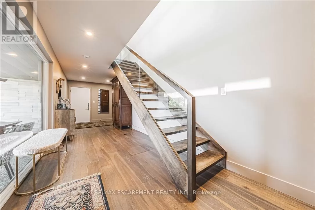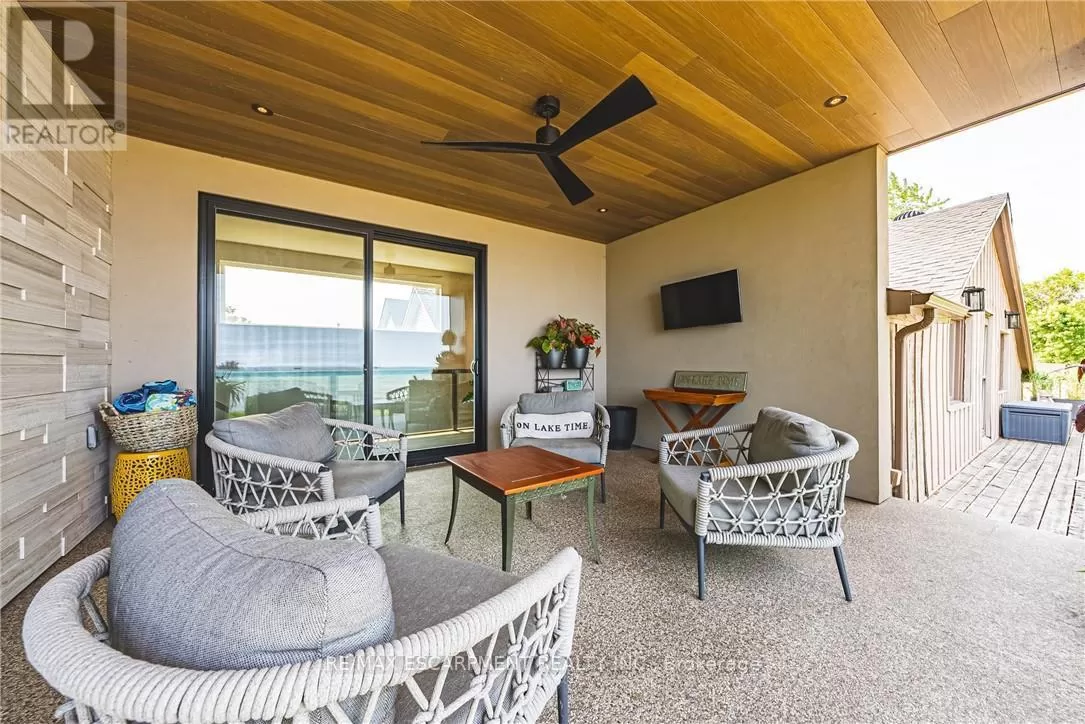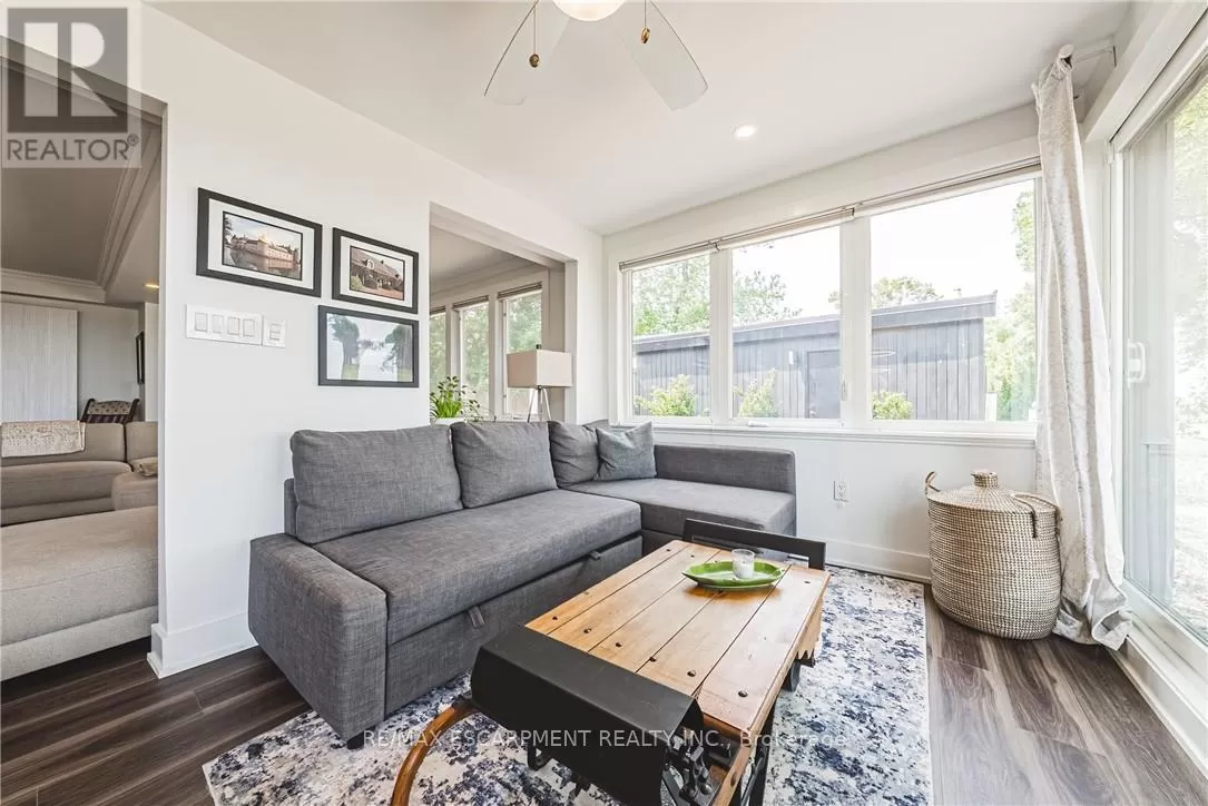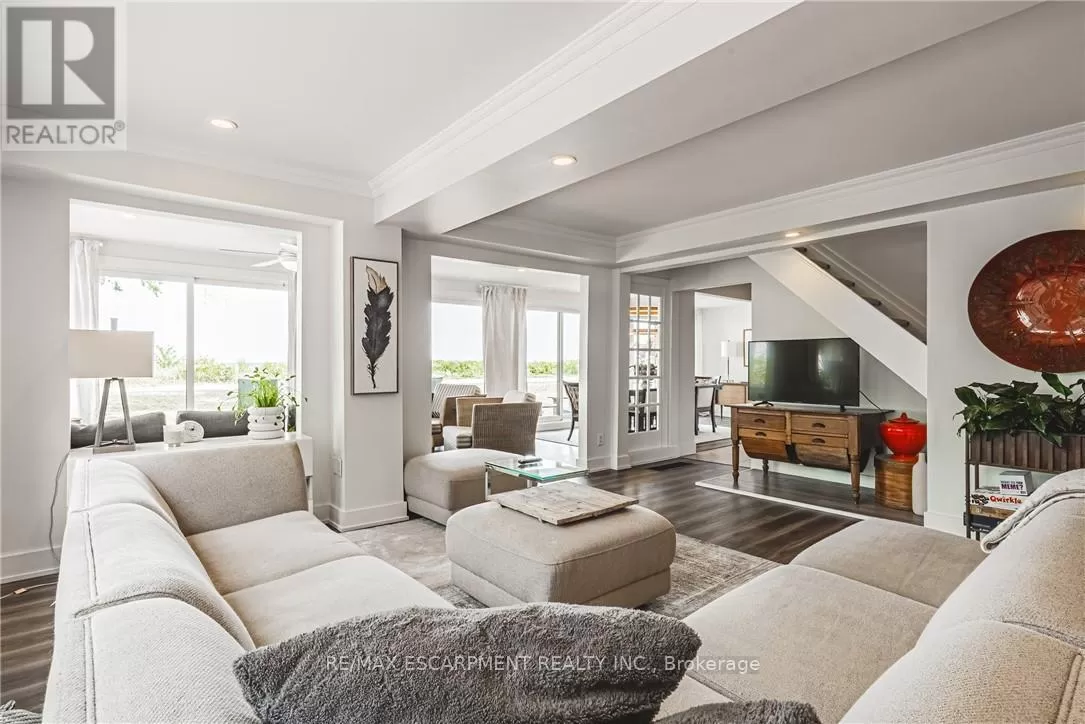 Beach Blvd Modern Elegance Meets Cottage Charm on the Waterfront. Welcome to this truly unique 4-bedroom, 3-bathroom home where original cottage character blends seamlessly with a stunning custom modern addition (21). Set against the powerful backdrop of Lake Ontario, this one-of-a-kind property offers the perfect balance of cottage charm & contemporary comfort with a beach inspired, calming decor. Inside this magnificent home, natural light pours through oversized windows, creating bright, inviting spaces that connect you to the breathtaking surroundings. Every room offers warmth, tranquility, & an unparalleled sense of retreat. The thoughtfully designed two storey addition features striking engineered hardwood flooring, a spacious primary suite with a walk-in closet, a luxurious 4pc ensuite with glass shower & custom vanity, & sliding doors that open to a covered balcony ideal for enjoying panoramic lake views. A separate laundry room & additional access to the outdoor living space add convenience & flow to the layout. The lower level of the addition showcases the front entrance, which offers a lovely covered patio area perfect for entertaining -- as well as access to the double car garage, side yard, crawl space, 2pc bath & also connects seamlessly to the original part of the home. Continuing with a calming beachy feel, the original home boasts a spacious kitchen with additional pantry, formal dining room with endless windows & lakeside views, comfy living room & staircase to the second level. New laminate flooring (25). Upstairs are 3 generous bedrooms, updated 3pc bathroom & access to deck area overlooking the water. Step outside & youre just seconds from the beach, scenic waterfront trails, peaceful parks, & all the serenity of lakeside living while still being within easy reach of Hamiltons urban amenities & minutes to Burlington. This exceptional property isnt just a home its a lifestyle. Room sizes approximate. Luxury Certified. (id:27476)