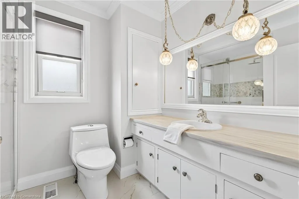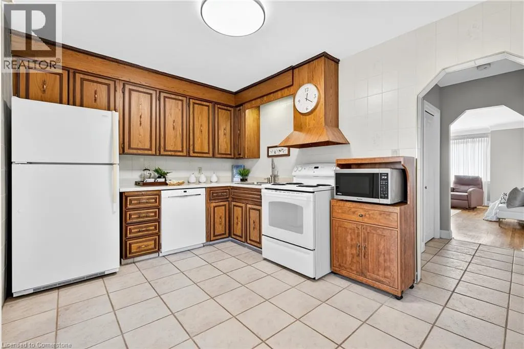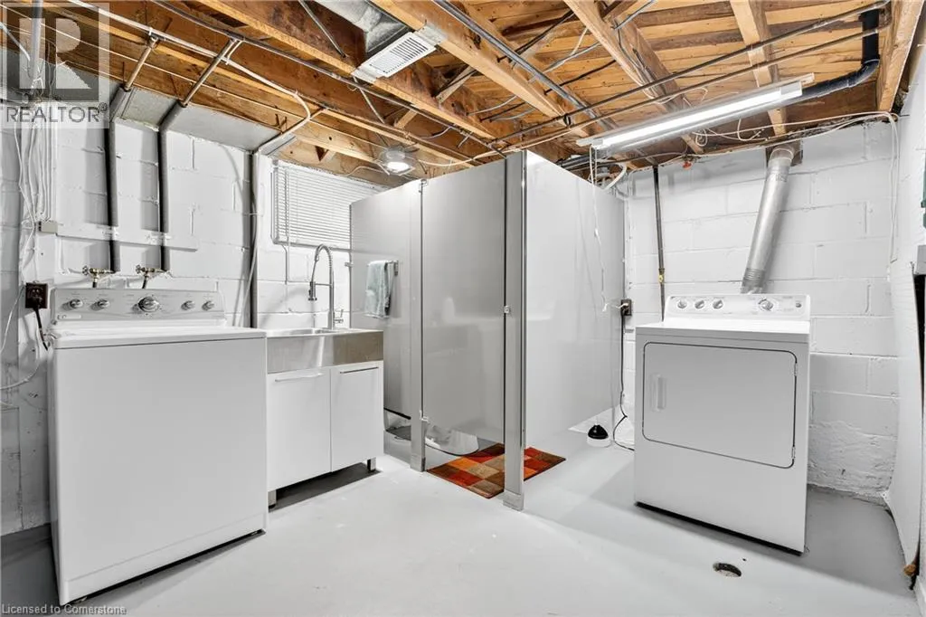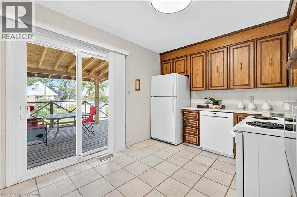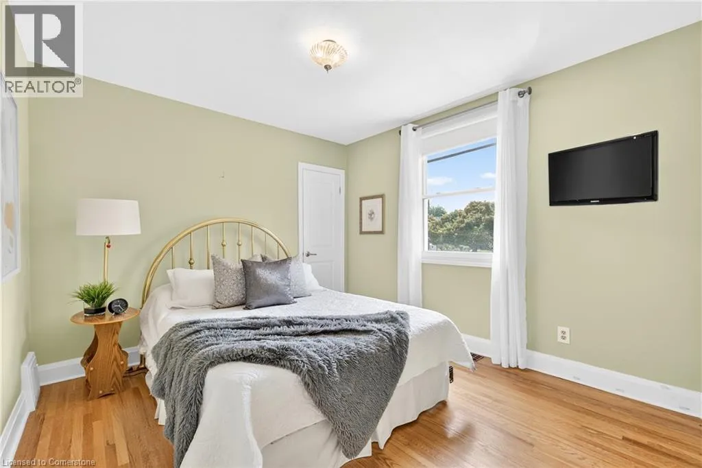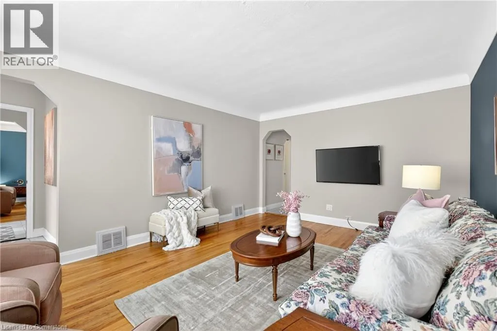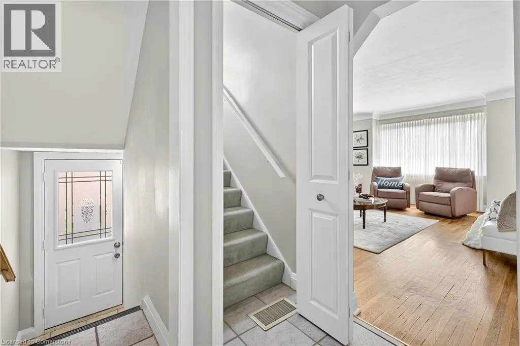 Upper James St to Mcelroy Rd W to West 1st St Welcome to 56 West 1st Street a charming, one-owner 1.5-storey home that has been meticulously cared for over the years. Situated on a generous corner lot, this property features a spacious backyard with a covered porch and a large private driveway with plenty of parking. Inside, you'll find a bright and inviting living room, a kitchen that opens to the dining area, and a main floor bedroom-ideal for flexible living. The beautifully renovated main floor bathroom adds a modern touch. Upstairs offers two more bedrooms and a closet space roughed-in for a future second floor bathroom. The lower level, with its separate side entrance, features a large rec room, full bathroom, and excellent in-law or rental suite potential. Located in a prime central Hamilton neighbourhood, you're just minutes from highway access, public transit, shopping, restaurants, schools, parks, and entertainment. Whether you're a first-time buyer, growing family, or investor, this well-kept home is a fantastic opportunity in a convenient location. (id:27476)