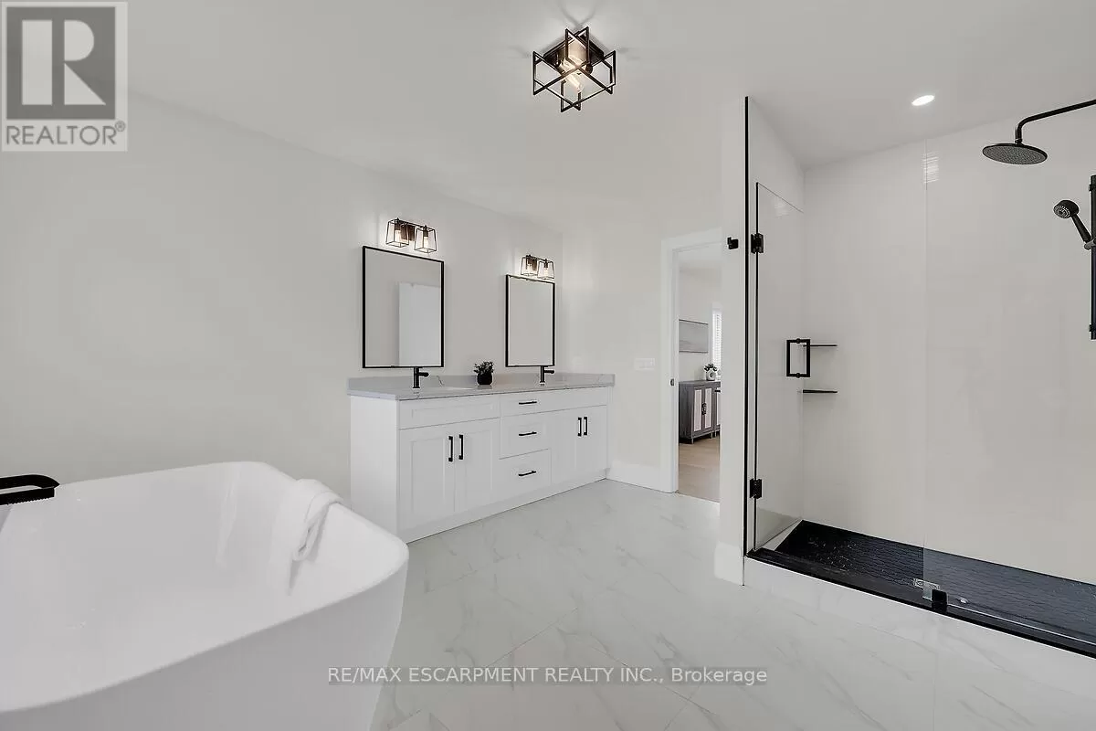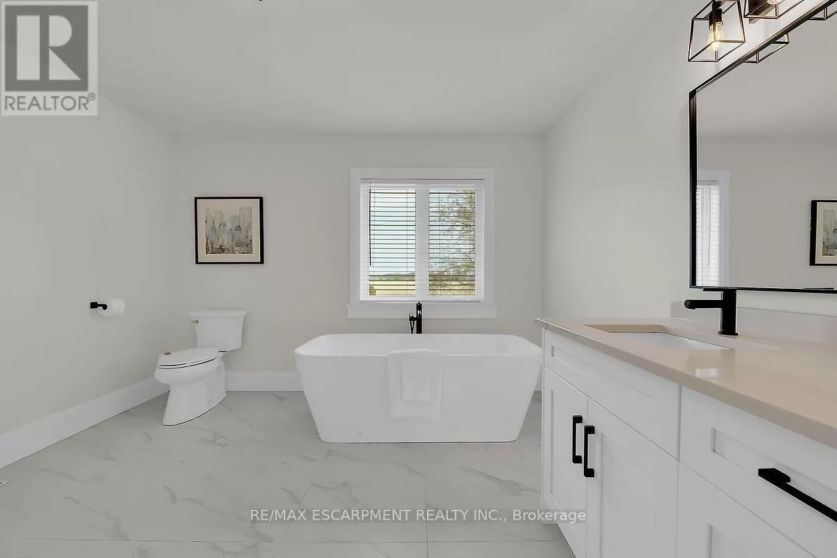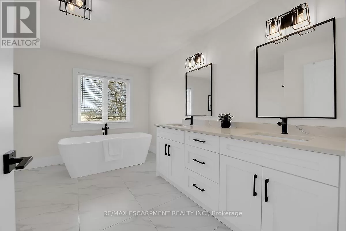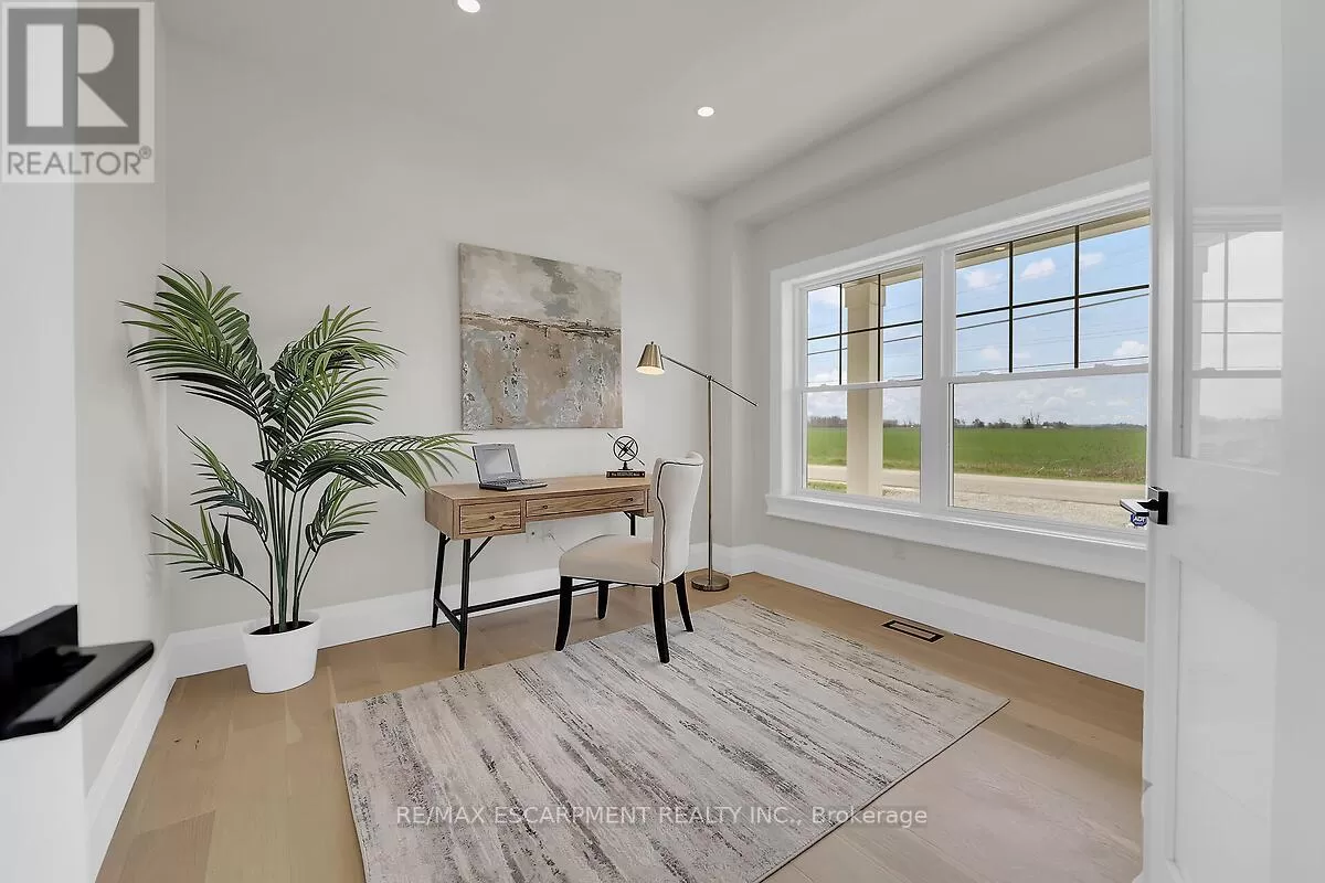 Hwy 6 and Airport Road Rent to own option available for this luxury custom home built in 2023. Escape to the country with the convenienceof all amenities just a short drive away! Mins from Hwy 6 & Hwy 403, with quick access to shopping, restaurantsand Hamilton Airport. The main floor features an open concept layout with a combination of engineered hardwood& tile floors, and an abundance of natural light. The den is situated at the entry of the home & provides a great workfrom home space. The kitchen offers quartz counters and backspash, stainless steel appliances & a large island thatis great for entertaining. There is also an upper level family room which is ideal for large and growing families. Thestunning primary suite features an enormous walk in closet & lavish ensuite with freestanding soaker tub & separateshower. The upper level hosts 3 additional bedrooms, main 5 piece bath and a convenient laundry room. Enjoy theoutdoors on your covered rear porch complete with scenic farm views. (id:27476)