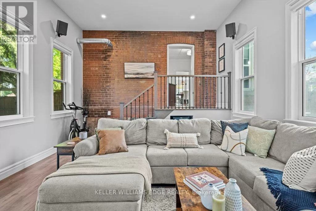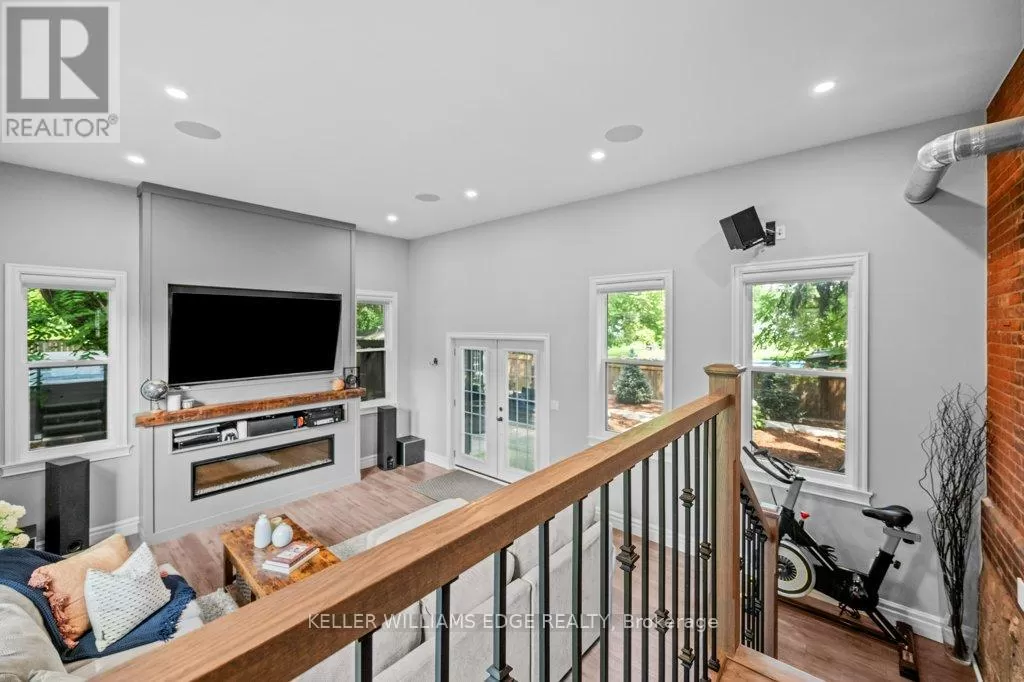 Cross Streets: Governor's Rd. ** Directions: Governors Rd - North onto Lynden Rd. Spectacular blend of old-world grace & modern comfort! Meticulously fully renovated century home located in the quaint West Flamborough village of Lynden. This 4-bed, 4-bath gem tastefully combines classic historic charm w contemporary luxury. It features high ceilings throughout, 9.5-ft on the main floor, 12-ft in the family room, and 9-ft on the 2nd floor (except office/bedrm), carpet-free floors incl travertine, porcelain and luxury vinyl plank. Ground-level family room equipped w radiant heated floor, auto Smart blinds, surround sound, 82 mounted TV, and a walkout to patio & beyond! Custom kitchen(15/16) w heated floor, high cabinets, Quartz, pendant lights & pantry, and a separate dining room w handy Butler bar. The 2nd floor offers 3 spacious bedrooms, access to the front balcony, a luxurious bathroom w claw-foot tub & glass shower w multi-function panel. Laundry room w a flex space, cabinets, folding area & w/o to rear deck. Oak stairs w wrought iron spindles lead to the skylit & spray-foam-insulated 3rd level primary retreat featuring a wet bar, its own balcony, reading nook, W/I closet and a sliding barn door to a7-pce ensuite w skylight, heated floor, water closet, slipper tub, double sink vanity & a double shower! The exterior boasts a 6-ca rdriveway(23),concrete walkway & porch(21/22), a fully fenced stunning rock landscaped yard(23) appointed with a gazebo, gas BBQ hookup, firepit, 3 sheds including a 20'x12' bunkie/workshop, and a 17 year-round Swim Spa(23)! Modern conveniences include city water, natural gas, electrical service panel w 220-amp(23), Smart Home Features ie. thermostats, switches, locks & more, BellFibe Network, central A/C(23), and C/VAC throughout the home. Other features & updates include stained glass, transom windows, exterior doors, gutter guards(23), re-shingled roof(21), windows(2018/19), and complete re-plumbing & re-wiring (2016-2024). This home truly combines historic elegance with contemporary amenities. (id:27476)
