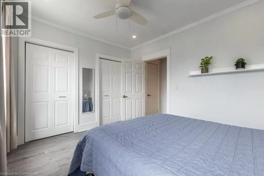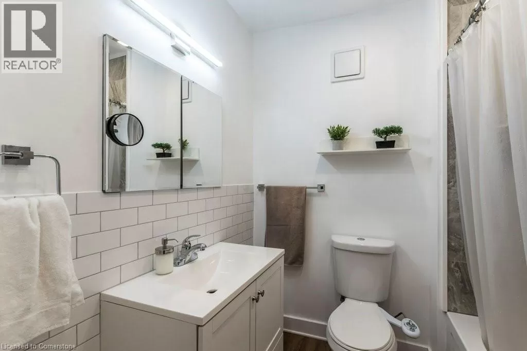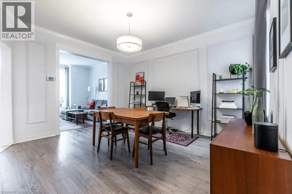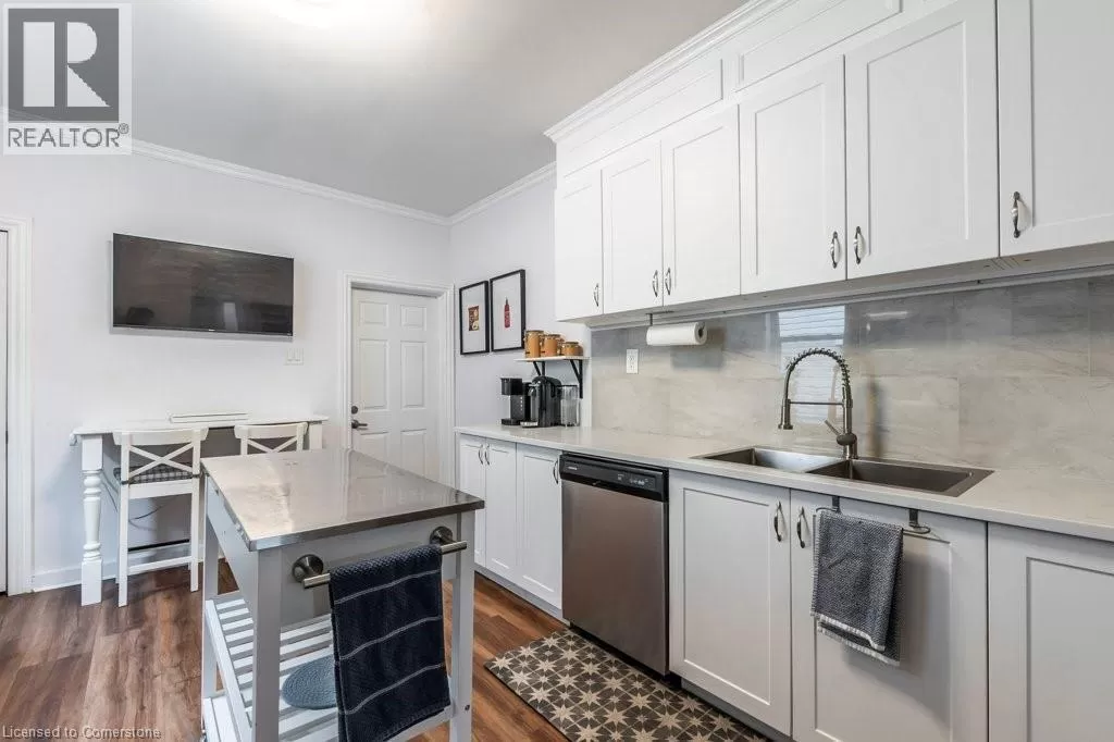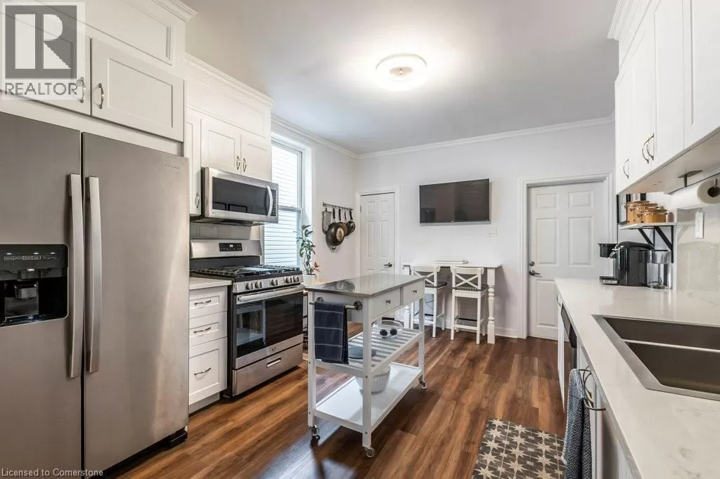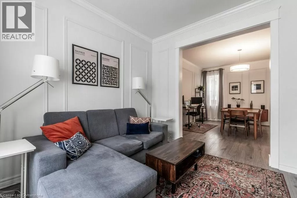 JAMES ST N TO STRACHAN ST TO HUGHSON ST N Welcome to this 2.5-storey semi-detached brick home, just steps from the GO Station and walking distance to Bayfront Park, Biking and walking trails, shops and public transit in a highly sought-after neighbourhood. This charming home features 2+1 bedrooms and 2.5 bathrooms, with a functional layout with no carpet throughout. The spacious main bedroom was created by combining two smaller rooms and now features a full wall-length closet. The second-floor bathroom has been fully renovated, adding modern comfort to this classic home. The updated kitchen boasts a new 11.5-foot quartz countertop, vinyl plank flooring, commercial-grade sink and faucet, porcelain tile backsplash, and under-cabinet lighting. Colonial-style upgrades throughout include custom crown and wall molding, updated front entry door, and interior door casings. The home also features upgraded windows in the master bedroom and dining room and new washer and dryer (2024). Additional multi use area in the attic allows for extra storage or workspace. A separate basement apartment with a walk-up entrance offers great income potential to help with mortgage payments or space for extended family. Outdoors, enjoy a custom-built backyard shed, enclosed under-deck storage, and vegetable garden. Double wide concrete driveway in this area is a bonus. With thoughtful upgrades and an unbeatable location, this home is a rare find. Note to investors looking to expand their portfolio consider the income potential of this property as a 2 unit rental asset. (id:27476)