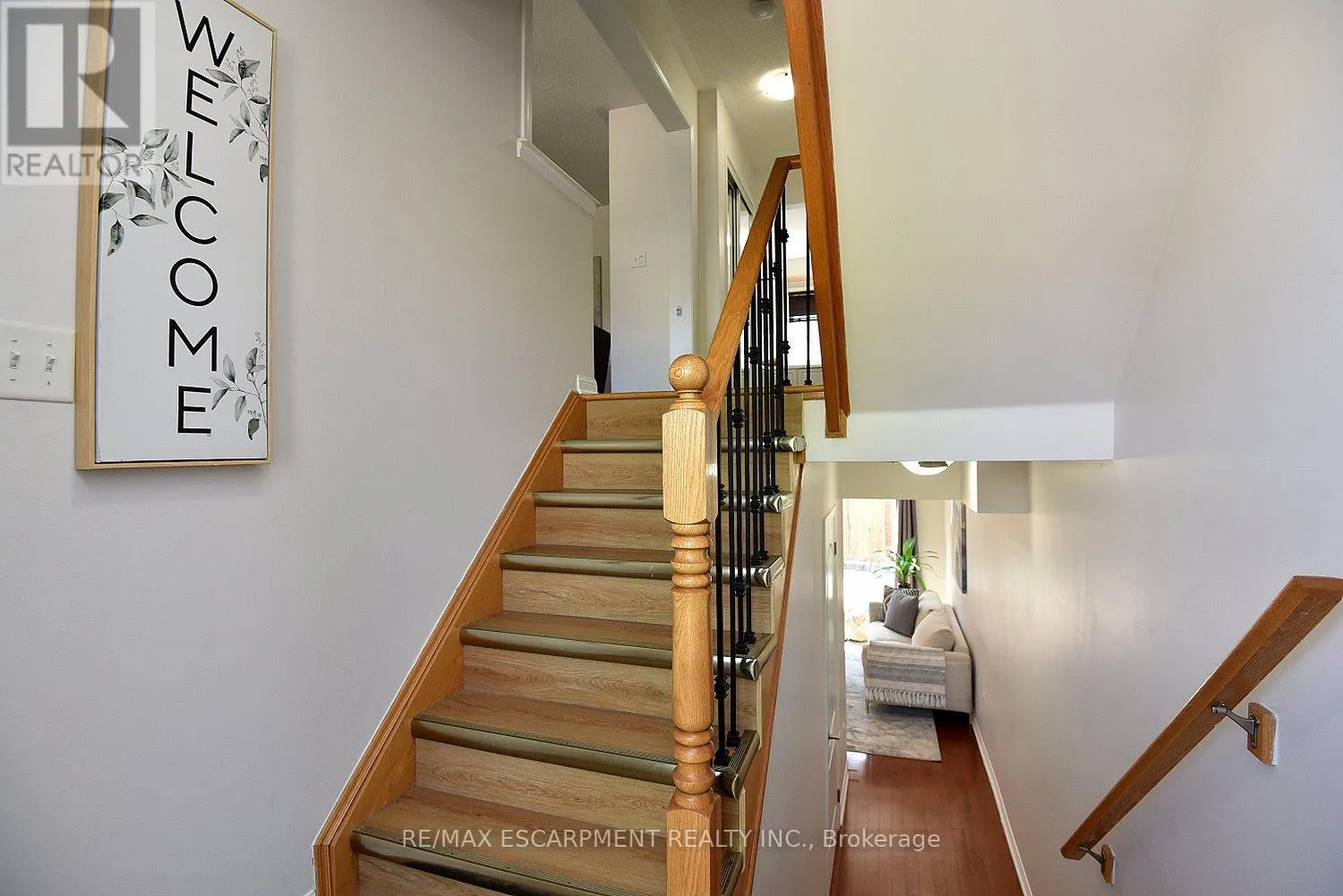 Cross Streets: Garner/Kitty Murray. ** Directions: Kitty Murray-Emick-Ohara. Opportunity Knocks! NO ROAD FEES! Welcome To 45 Ohara Lane, A Chic Freehold Street Townhome In Ancasters Meadowland, Steps To Parks, Schools, Redeemer University With Shopping, Eateries And Entertainment Nearby. Excellent Access To Highway 403 For Commuters! The Tasteful Yet Manageable Landscaping Adds To The Curb Appeal That You Will Enjoy Coming Home To. The Stairs To The Main Level Are Enhanced By The Iron Spindles. Here You Find The Bright Living/Dining Room With Hardwood Floors, A Perfect Space To Entertain Or Simply Kick Back And Relax. The Modern Kitchen Features Quartz Countertops And Backsplash And Stainless-Steel Appliances. Enjoy The Morning Coffee Or Casual Meals In The Bright, Spacious Dinette. The 2 -Piece Powder Room Completes The Main Level. The Upper-Level Features 3 Bedrooms, All With Engineered Hardwood Floors, And A 3 Piece Bath With A Huge Glass-Door Shower With A Rainfall Showerhead. The Lower Level Offers The Family Room With Hardwood Floors And A Walk Out To The Fenced Rear Yard. Also On The Lower Level Is The Laundry/Utility Room, A Storage Room Plus Direct Access To The Garage With A Door Opener. Both The Furnace And Central Air Are Owned. This Carpet-Free Home Has Been Freshly Repainted Making It Move-In Ready For You! (id:27476)