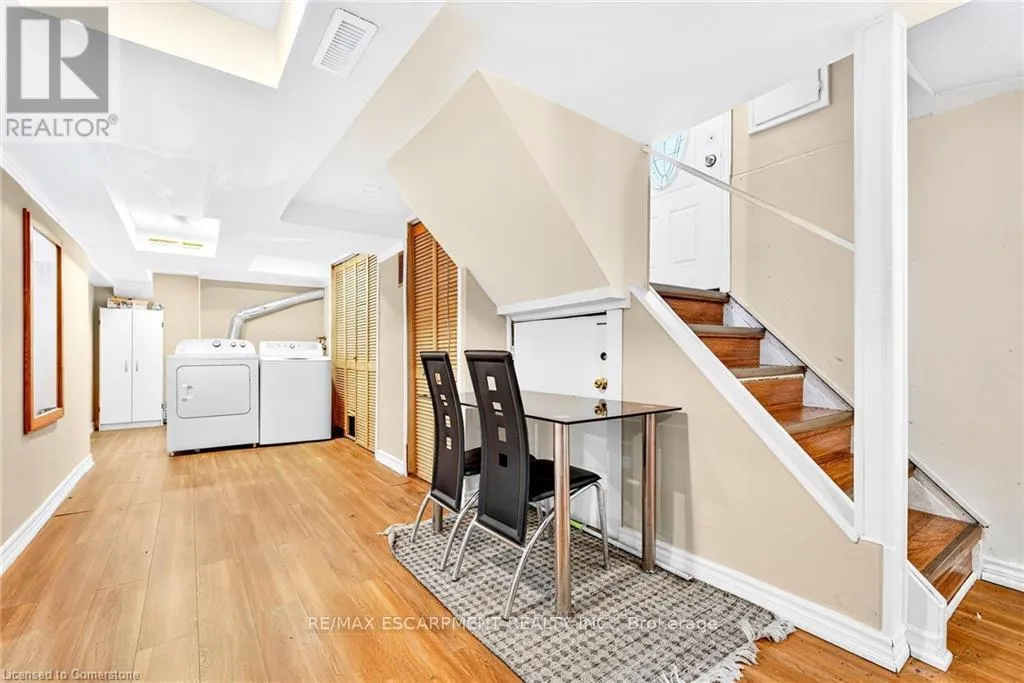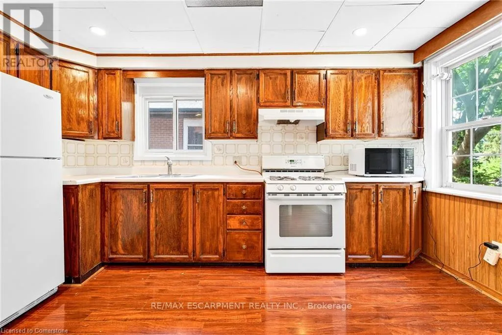 Cross Streets: Main Street West. ** Directions: Main Street West Leland Street. Walk to McMaster University! Live in or rent! Convenient West Hamilton Location. Minutes to the 403. Fantastic investment opportunity or ideal multi-generational home on a generous 42 x 150 lot, offering 3+3 bedrooms, 2 full baths, front & side entrances. Well-maintained bungalow is ideally located within walking distance to McMaster University & Hospital and offers parking for up to 3-4 vehicles. The main floor features 3 bedrooms, a bright living room with laminate flooring, pot lights, and crown moulding, as well as a kitchen with laminate flooring, decorative backsplash, pot lights, and a breakfast area. The fully finished basement, with its own separate side entrance, includes a living room, kitchen, and 3 spacious bedrooms, all with laminate flooring and pot lights. Conveniently close to shopping, public transit, restaurants, hiking trails, and with easy highway access, this home is perfectly positioned for both comfort and investment potential. Washer & dryer, 2 fridges, 2 stoves, gas furnace, central AC, 100 amp Breaker panel with copper wiring. Brick exterior, fenced backyard, detached garage and more! (id:27476)