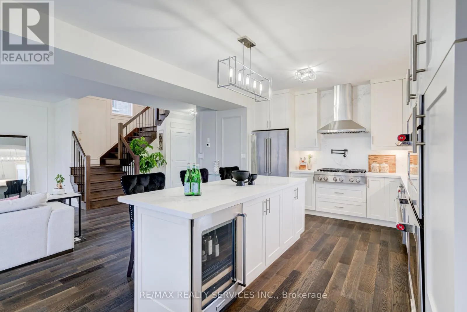 Springbrook Rd/ Klein Circle Beautifully upgraded 4-bed, 3-bath home in Ancasters sought-after Meadowlands! This executive residence features 10-ft ceilings, hardwood floors throughout, oak stairs, custom millwork, wallpaper accents, and stylish upgraded light fixtures throughout. The designer kitchen boasts quartz countertops, extended pantry cabinetry, pot filler, wine fridge, and built-in KitchenAid appliances including a 6-burner gas stove. Relax in the open-concept living room with a gas fireplace and electric blinds. Upstairs, enjoy a luxurious primary suite with spa-like ensuite featuring quartz counters, upgraded tiles, and a freestanding soaker tub. Includes home surveillance system, custom blinds, and a double garage. Located near Ancaster High School, big box stores, scenic trails, and waterfalls. (id:27476)