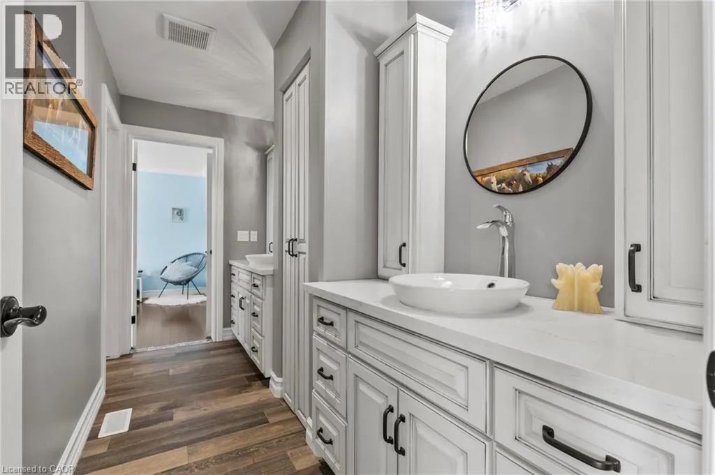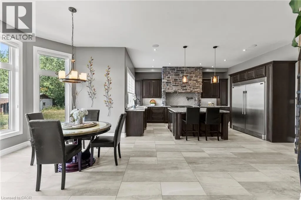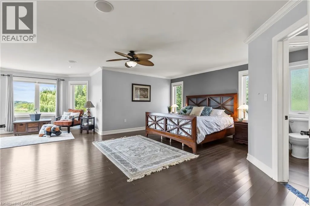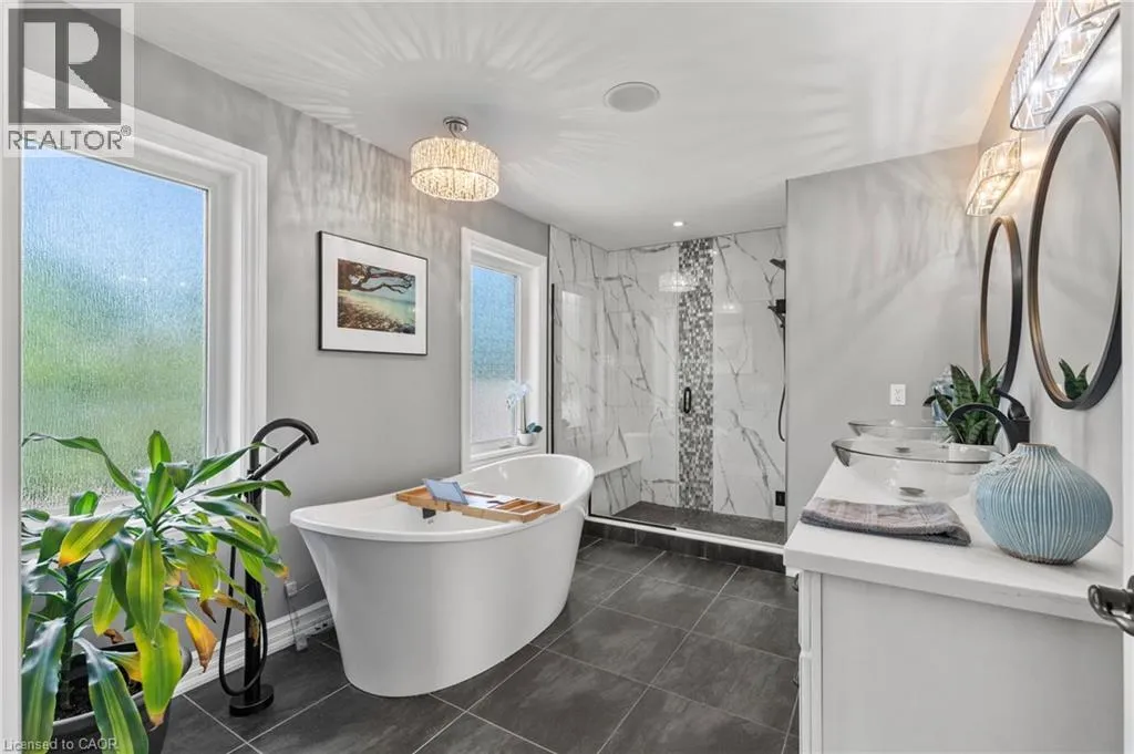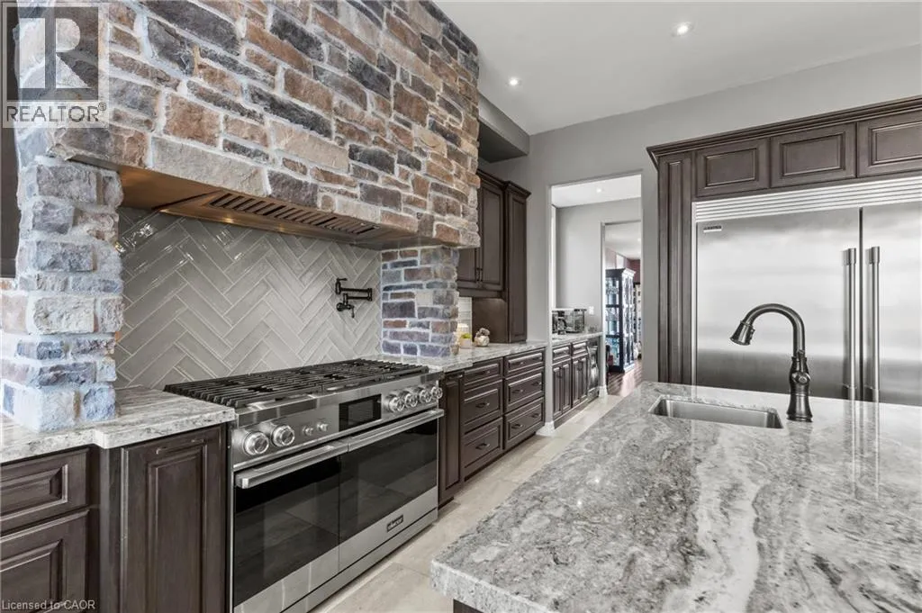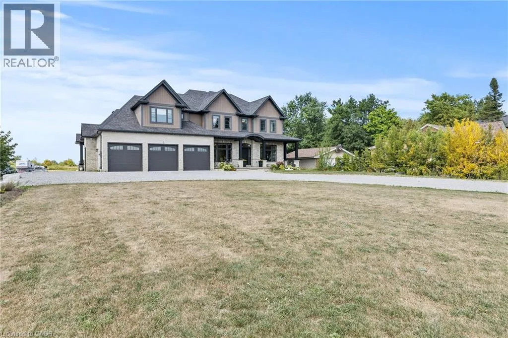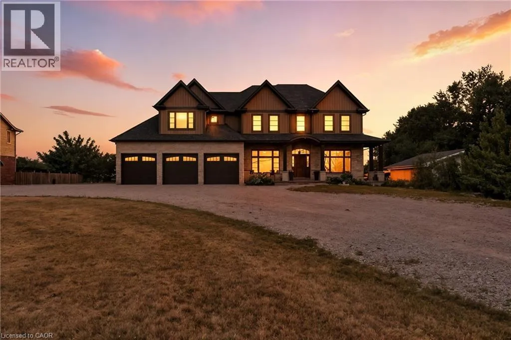 Hwy 20 to Third Rd E Welcome to your future gorgeous home sweet home! This luxurious custom-built (2019) residence on Stoney Creek Mountain offers the best of country living within city limits. Set on a 1.4-acre lot, the expansive backyard provides endless possibilities for your dream oasis, perhaps even a pool. Upon entering, you'll be captivated by the home's elegant grandeur, boasting over 5,000 square feet of finished living space(excluding the unfinished basement). The main floor features 10-foot ceilings, a combination of hardwood floors and tile, and a dream chef's kitchen with a walk-in pantry and coffee/servery. The main level also includes a great room with a fireplace, a library, a mudroom leading to the garage, and a powder room. Perfect for multi-generational families, the fantastic self-contained main floor in-law suite offers a separate laundry room, bedroom, bathroom, living room with a fireplace, and a potential unfinished basement for added living space. The second level of the main home provides four more bedrooms, with the potential for a 5th by converting the second-level family room. The primary bedroom retreat is truly spectacular, featuring a spacious bedroom, a spa-like bathroom, and a walk-out to a gorgeous second-floor patio with amazing sunset views. On this level, you'll also find a second-level family room, bedroom level laundry, an office, two bedrooms with shared ensuite privilege, and an additional bedroom with its own ensuite. All bedrooms include walk-in closets. The unfinished basement, with its 9-foot ceilings and over 2,600 square feet, awaits your vision, offering immense potential for another in-law suite or finish to your preference. Both the main home and the in-law suite share a lovely patio and yard. The property line extends far beyond the trees, ending at the farmer's field. The expansive driveway can accommodate multiple cars, and the four-car garage provides ample space for cars & storage. (id:27476)