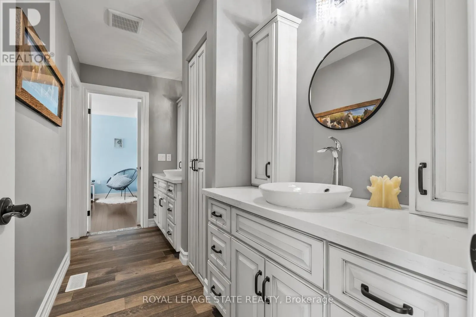 Cross Streets: Third Rd & Hwy 20. ** Directions: Hwy 20 to Third Rd E. Welcome to your future gorgeous home sweet home! This luxurious custom-built (2019) residence on Stoney Creek Mountain offers the best of country living within city limits. Set on a 1.4-acre lot, the expansive backyard provides endless possibilities for your dream oasis, perhaps even a pool.Upon entering, you'll be captivated by the home's elegant grandeur, boasting over 5,000square feet of finished living space(excluding the unfinished basement). The main floor features 10-foot ceilings, a combination of hardwood floors and tile, and a dream chef's kitchen with a walk-in pantry and coffee/servery. The main level also includes a great room with a fireplace, a library, a mudroom leading to the garage, and a powder room.Perfect for multi-generational families, the fantastic self-contained main floor in-law suite offers a separate laundry room, bedroom, bathroom, living room with a fireplace, and a potential unfinished basement for added living space.The second level of the main home provides four more bedrooms, with the potential for a 5th by converting the second-level family room. The primary bedroom retreat is truly spectacular, featuring a spacious bedroom, a spa-like bathroom, and a walk-out to a gorgeous second-floor patio with amazing sunset views. On this level, you'll also find a second-level family room, bedroom level laundry, an office, two bedrooms with shared ensuite privilege, and an additional bedroom with its own ensuite. All bedrooms include walk-in closets. The unfinished basement, with its 9-foot ceilings and over 2,600 square feet, awaits your vision, offering immense potential for another in-law suite or finish to your preference. Both the main home and the in-law suite share a lovely patio and yard. The property line extends far beyond the trees, ending at the farmer's field. The expansive driveway can accommodate multiple cars, and the four-car garage provides ample space for cars & storage. (id:27476)