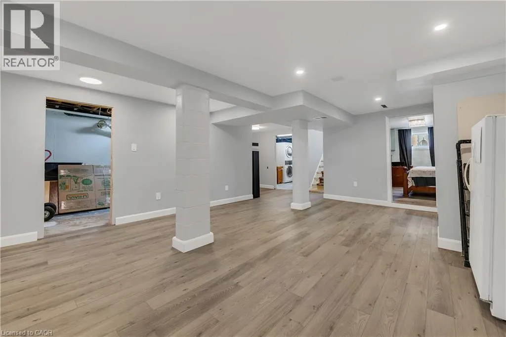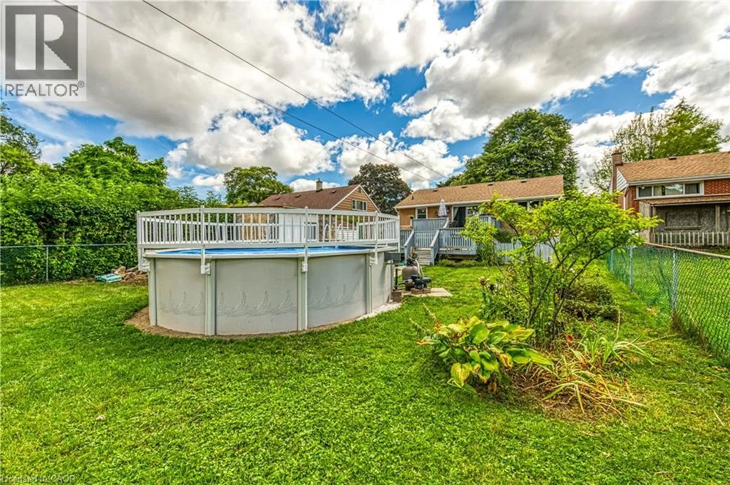 North of Mohawk Rd, East of Upper Sherman Brick bungalow on a premium lot backing onto Macassa Park! This home offers a rare combination of A+ location, lot size, and versatility, sitting on an impressive 51â x 184â property with direct gate access to the park & playground. The main level has been thoughtfully redesigned to maximize flow and natural light, featuring a welcoming living room, a custom oak kitchen, and a bright dining area with sliding doors that walk out to the backyard. Two comfortable bedrooms and an updated 4-piece bathroom complete this level. The newly renovated lower level is spacious and adaptable, showcasing a cozy gas fireplace, open-concept family area, third bedroom, and laundry room. This space is designed for a future in-law suite, teen retreat, or separate apartment, adding value and flexibility. The backyard is like having your own private parkâfully fenced with endless room for children and pets to enjoy. Highlights include a two-tier deck, 18ft above-ground pool (liner 2024), large storage shed, and a private gate that opens directly onto Macassa Park. Potential for a garage or ADU. A brand-new double-wide concrete driveway provides ample parking for 4 vehicles. This is a home that truly offers a family-friendly neighbourhood, investment potential, and a move-in ready, all in one packageâdonât miss out! (id:27476)