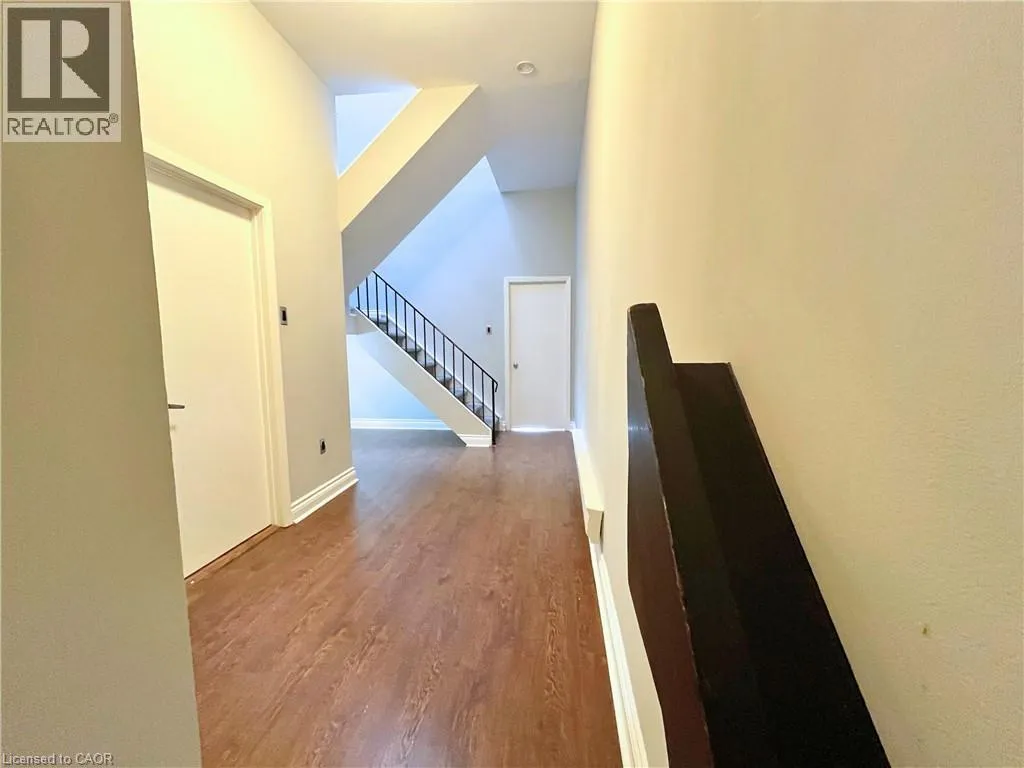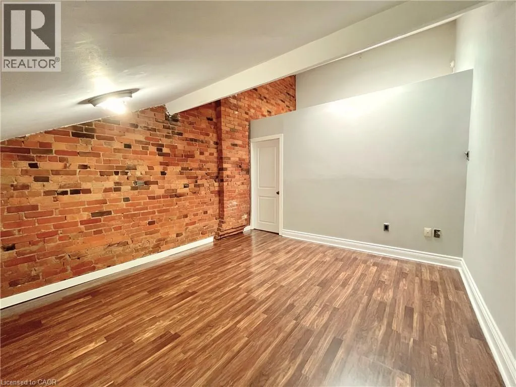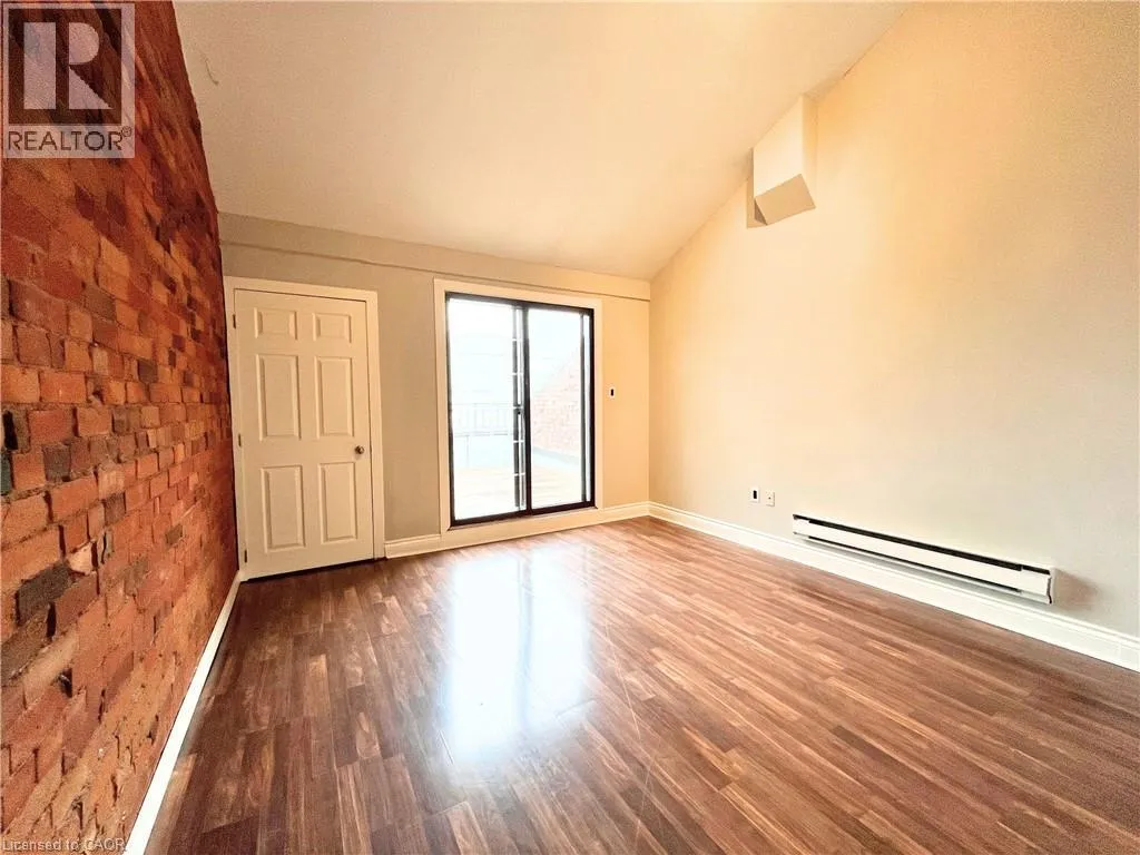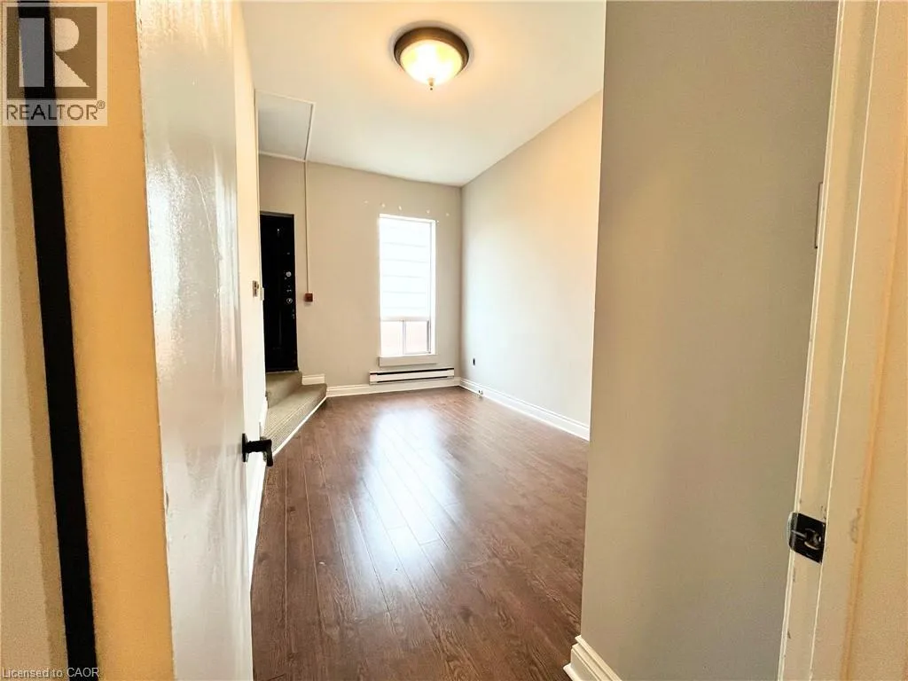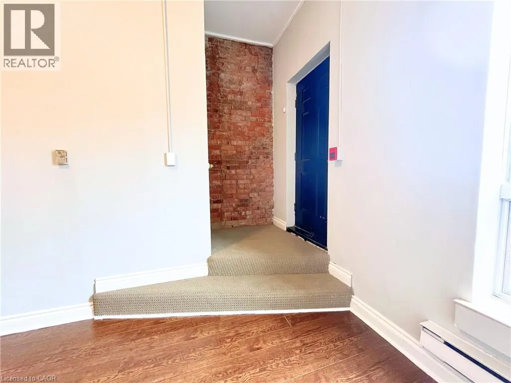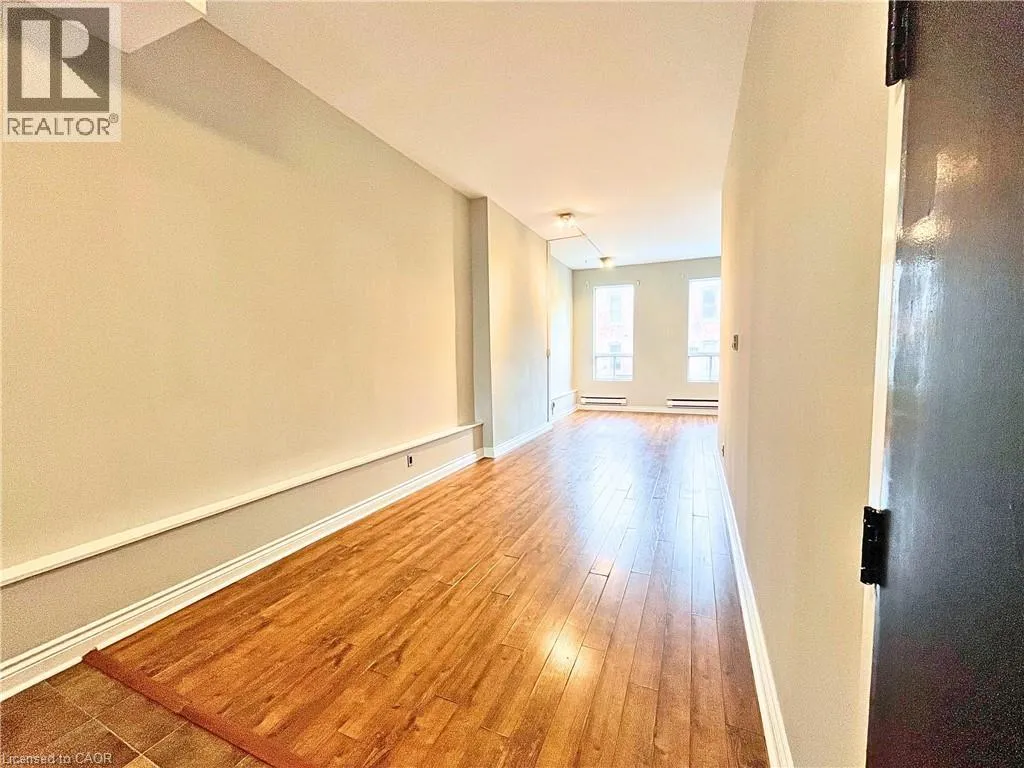 King St. E Between Wellington & John Welcome to your next home in the heart of Hamiltonâs International Village! This spacious 3+1 bedroom, 1.5 bathroom unit spans 1,668 sq ft across three bright and functional levels. The main floor features a massive open-concept living and dining area with huge windows overlooking King Street East, filling the space with natural light and urban charm. The layout flows seamlessly from the front living area to the back kitchen, which includes a dishwasher and direct access to a secondary entrance at the rear of the building. Just off the kitchen, youâll find stacked laundry tucked away in a closet and a convenient powder room in its own private space. Upstairs, the second level offers two generously sized bedrooms and a full bathroom. One of the bedrooms includes a private walkout to the rear entrance, while the other overlooks King Street and features a spacious double closet. On the third level, thereâs a cozy bedroom with access to its own rooftop-style deck, plus a bonus room ideal for a home office, den, or creative studio. Exposed brick adds classic charm to the top floor, echoing the character seen throughout this vibrant area of Hamilton. Centrally located and just steps from restaurants, cafés, shops, and transit, this unit offers incredible space, flexibility, and walkability. $2,500/month + utilities. Parking available in nearby private and municipal lots, with free parking evenings, weekends, and statutory holidays along King Street East. (id:27476)
