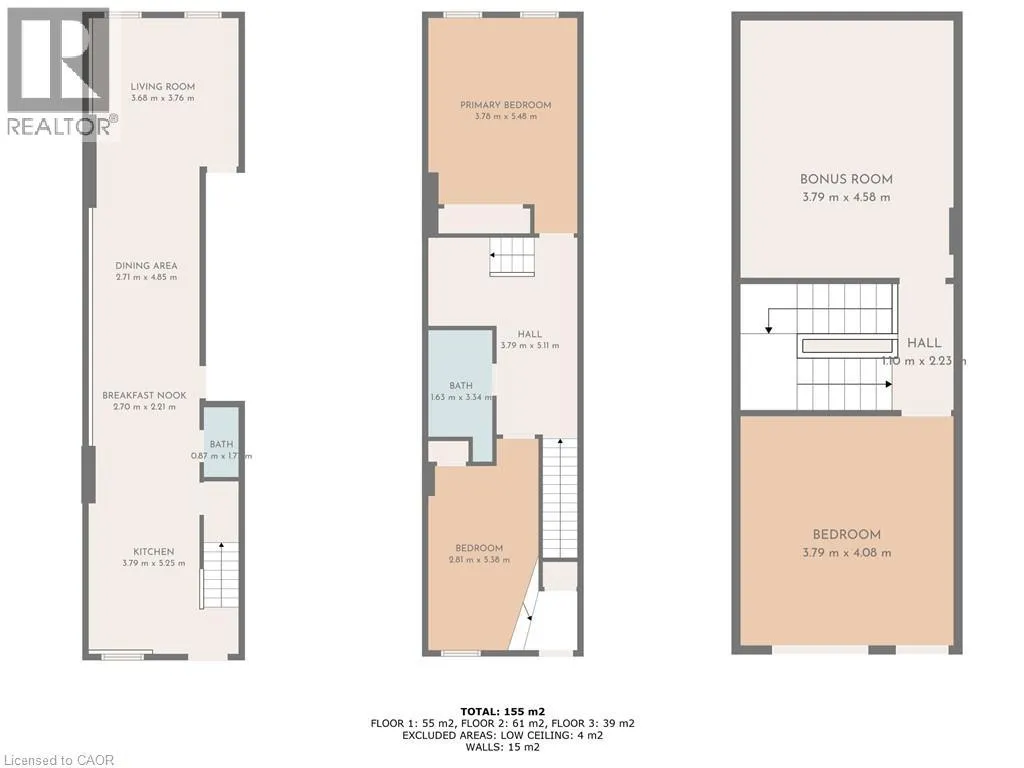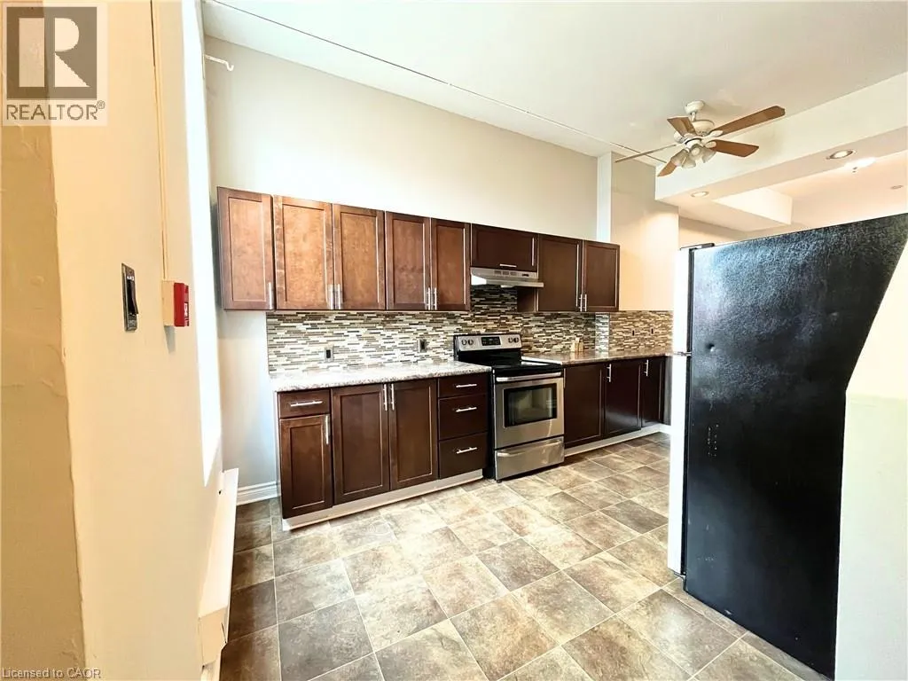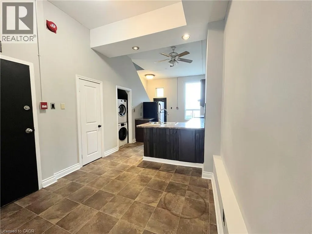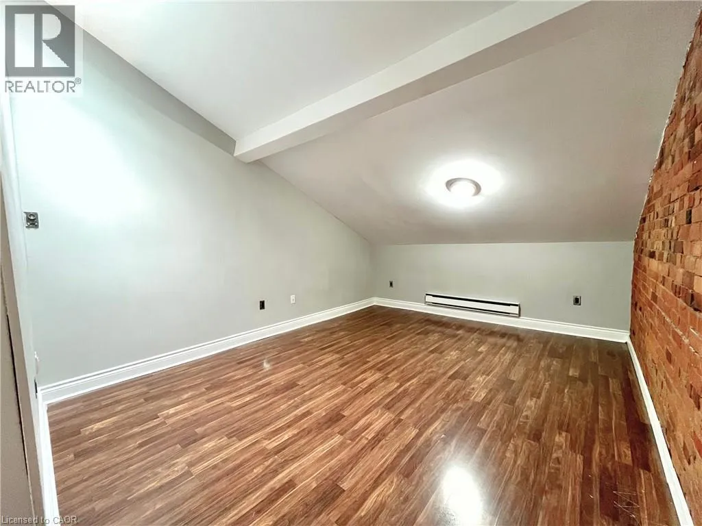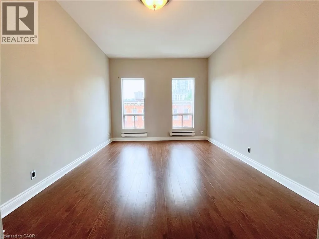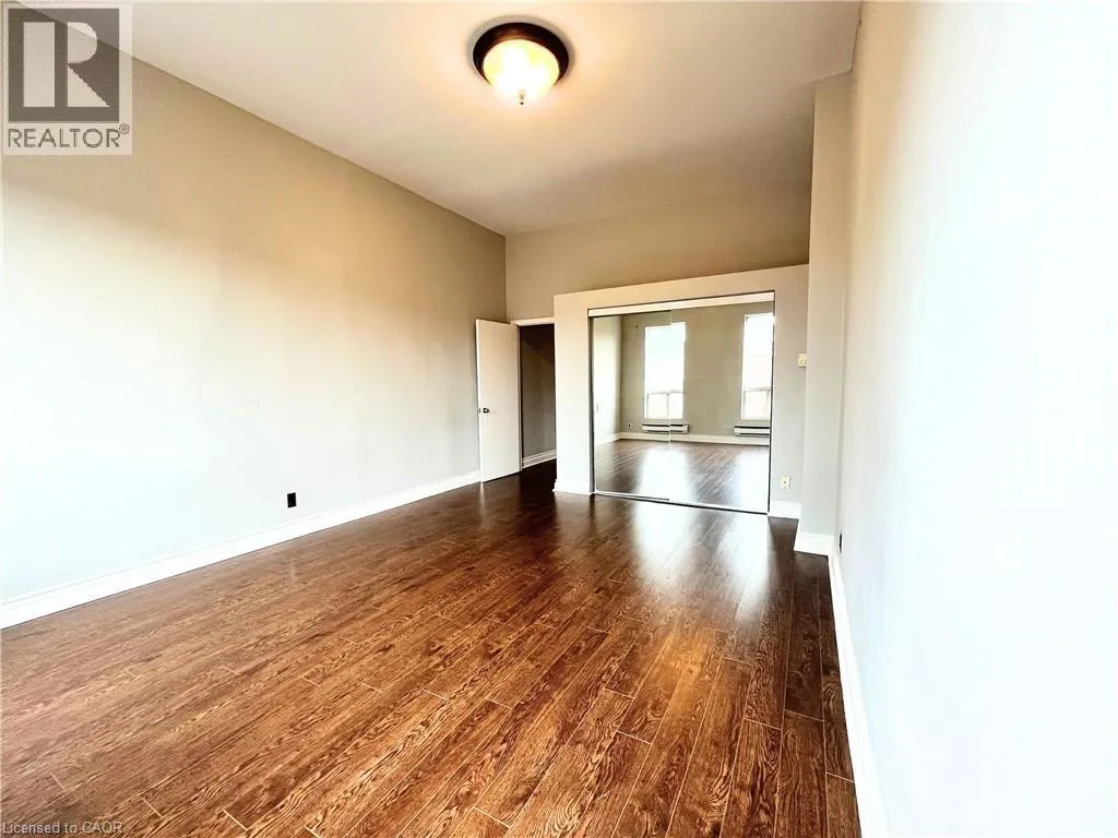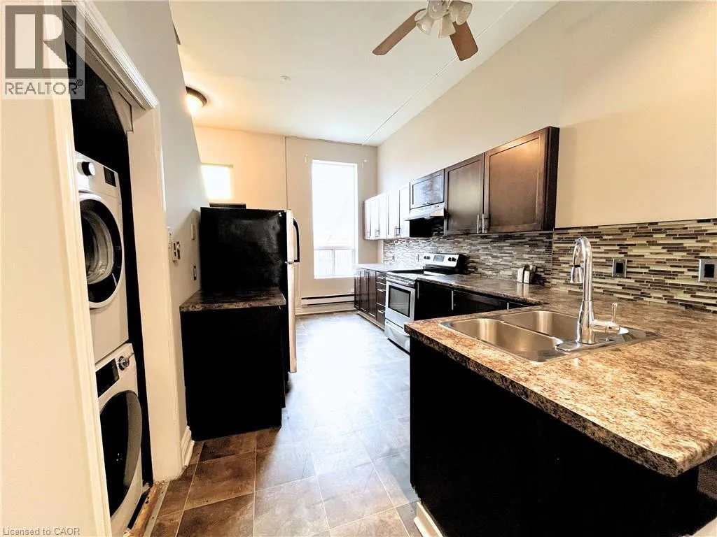 King St. E Between Wellington & John Welcome to your next home in the heart of Hamiltonâs International Village! This spacious 3+1 bedroom, 1.5 bathroom unit spans 1,668 sq ft across three bright and functional levels. The main floor features a massive open-concept living and dining area with huge windows overlooking King Street East, filling the space with natural light and urban charm. The layout flows seamlessly from the front living area to the back kitchen, which includes a dishwasher and direct access to a secondary entrance at the rear of the building. Just off the kitchen, youâll find stacked laundry tucked away in a closet and a convenient powder room in its own private space. Upstairs, the second level offers two generously sized bedrooms and a full bathroom. One of the bedrooms includes a private walkout to the rear entrance, while the other overlooks King Street and features a spacious double closet. On the third level, thereâs a cozy bedroom with access to its own rooftop-style deck, plus a bonus room ideal for a home office, den, or creative studio. Exposed brick adds classic charm to the top floor, echoing the character seen throughout this vibrant area of Hamilton. Centrally located and just steps from restaurants, cafés, shops, and transit, this unit offers incredible space, flexibility, and walkability. $2,500/month + utilities. Parking available in nearby private and municipal lots, with free parking evenings, weekends, and statutory holidays along King Street East. (id:27476)
