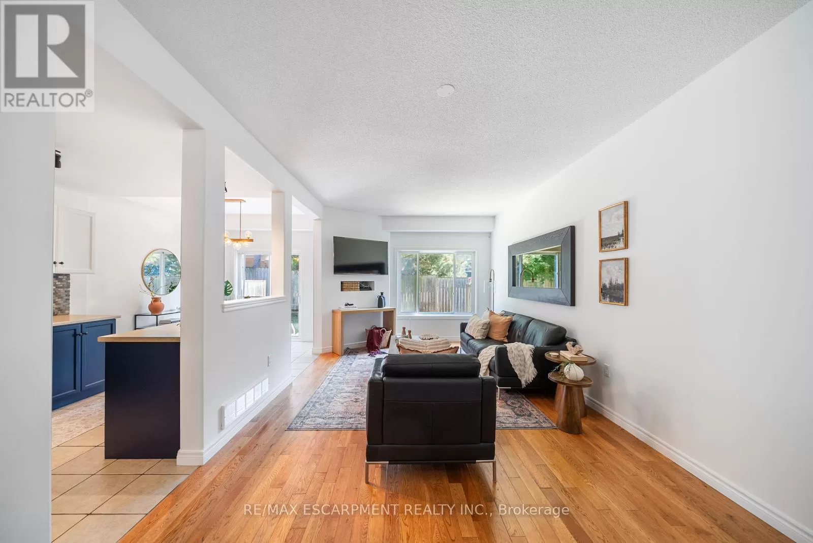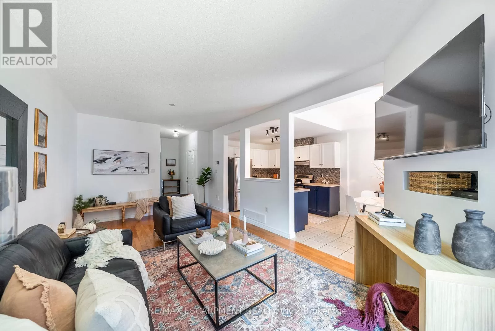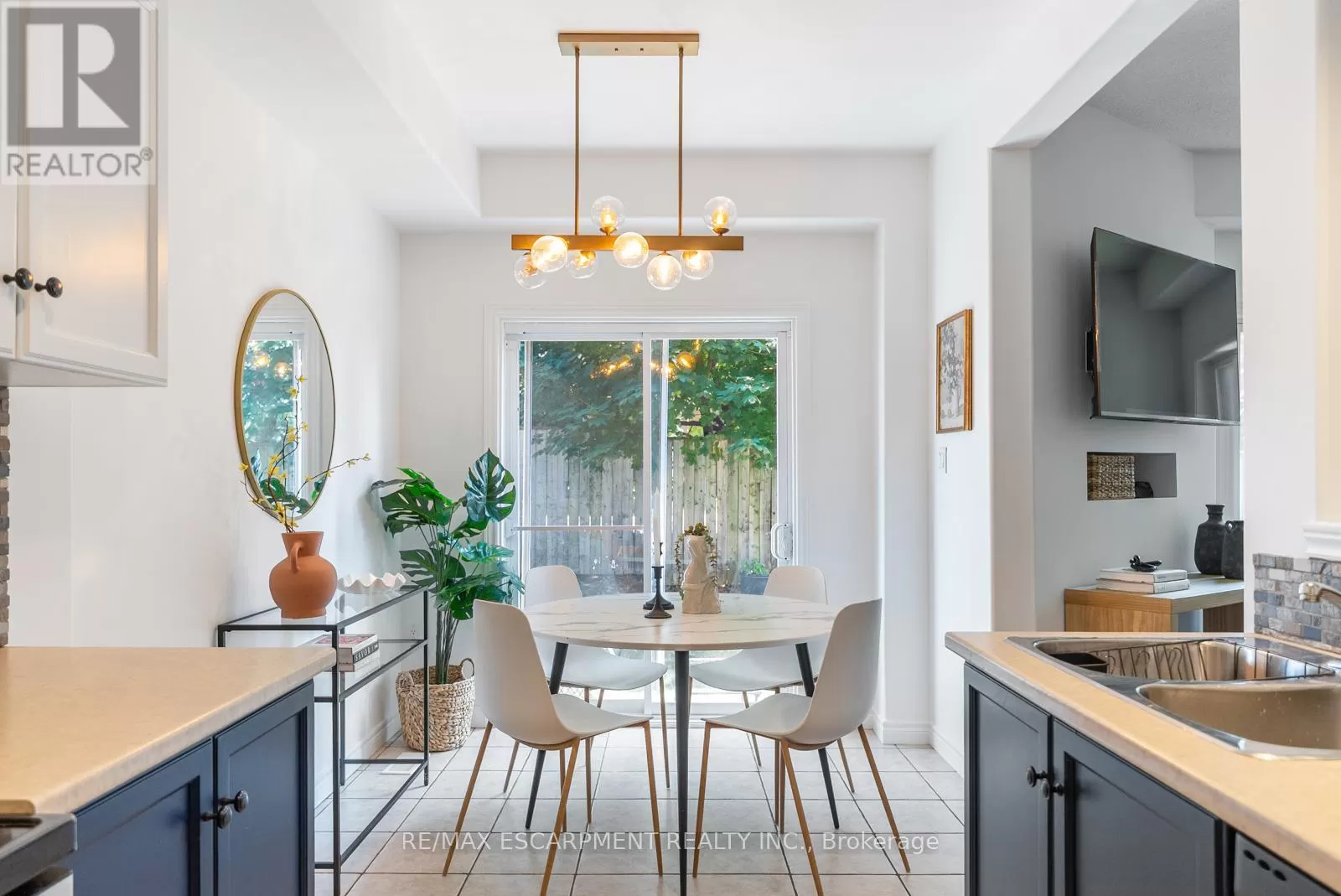 Cross Streets: WILSON TO SHAVER. ** Directions: Wilson to Shaver Road. A prime Ancaster location close to trails, highway access, shops, and restaurants. The street itself is quiet, perfect for evening walks, yet just minutes from everything you need. This home is an excellent fit for families, offering 3 spacious bedrooms, 2 full bathrooms upstairs, and a powder room on the main floor. As you enter, you'll appreciate the tall ceilings, front closet, inside entry to the garage, and parking for two with the single-car garage and driveway. The main floor has been freshly painted, with the kitchen cabinets professionally refinished and light fixtures thoughtfully updated for a more modern feel. The layout is bright and airy, with large back windows and sliding doors that flood the living and dining areas with natural light. There's space for both a breakfast nook and a formal dining area, making it ideal for everyday living and entertaining. Upstairs, all three bedrooms are generous in size with their own closets. Two of the bedrooms feature striking accent walls with gorgeous millwork. The unfinished basement provides plenty of opportunity to create a space tailored to your needs. Step outside to the private, partially fenced backyard. One of the standout features of this property is the low-maintenance lifestyle. Snow removal, lawn care, window cleaning, roof, and common area upkeep are all taken care of (and more), and there's plenty of visitor parking. Its not only perfect for families but also an ideal choice for downsizers, snowbirds, or investors looking for worry-free ownership. At this price point, few homes in Ancaster are truly move-in ready with updated finishes and everything complete - this is a rare opportunity that wont last. (id:27476)