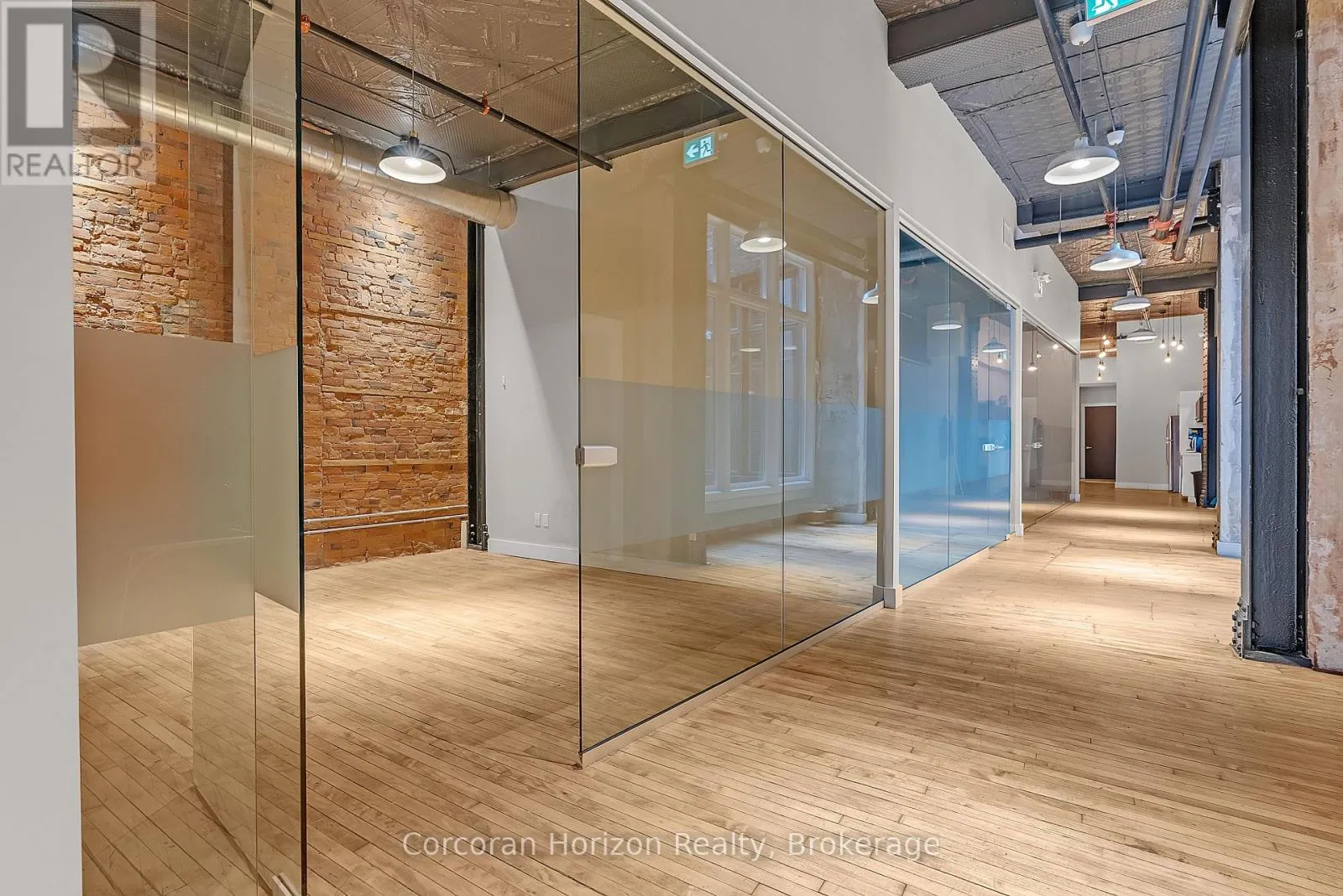 On James Street N just up from King Street Economical 200 square foot office available at the prestigious King-James building! As part of the Core Works Office Suites, the second floor and common area include kitchen, washrooms, boardroom, lounge, and access to the fifth floor common area terrace! The building itself has been completely redeveloped by Core Urban; known for their brilliant combination of preserved heritage features and character with modern features and building systems. Located in the heart of downtown Hamilton, this suite is literal steps away from the major banks, City Hall, the court houses, McMaster University's downtown campus, the James North Arts district, Jackson Square, and the King William restaurant district! (id:27476)