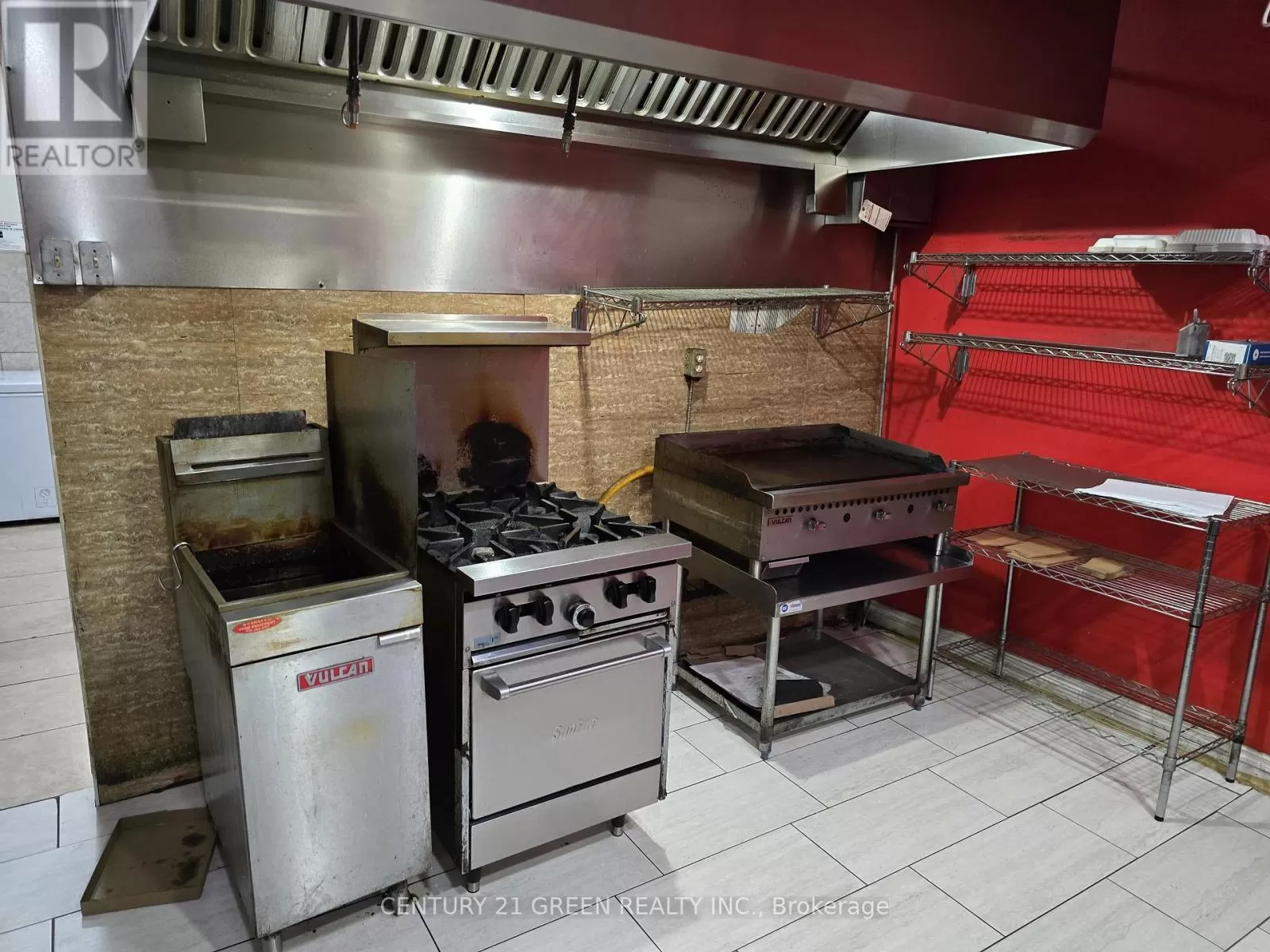 Cross Streets: King St and Queen St. ** Directions: Google Address. Be your own boss!! Re-branding opportunity! Prime downtown Hamilton location. franchised Burrito Bandidos with immense potential to scale. Exposure to main street, low rent, and the flexibility to add any additional stream of income/business to the current existing franchise (approved by franchise) or convert the store to another brand!! Store is spacious, approx 1000 sqft of main floor space + 1000 sqft of basement space which is unused currently. Full size kitchen with deep fryer, ovens, freezer, fridges, and prep tables. Backdoor with parking lot for easy offloading of materials. Current owner is part-time owner and store does not operate at full hours (currently only open from 3pm-7pm daily). Store conversion possible to any brand! Possibilities are endless! Motivated seller! (id:27476)