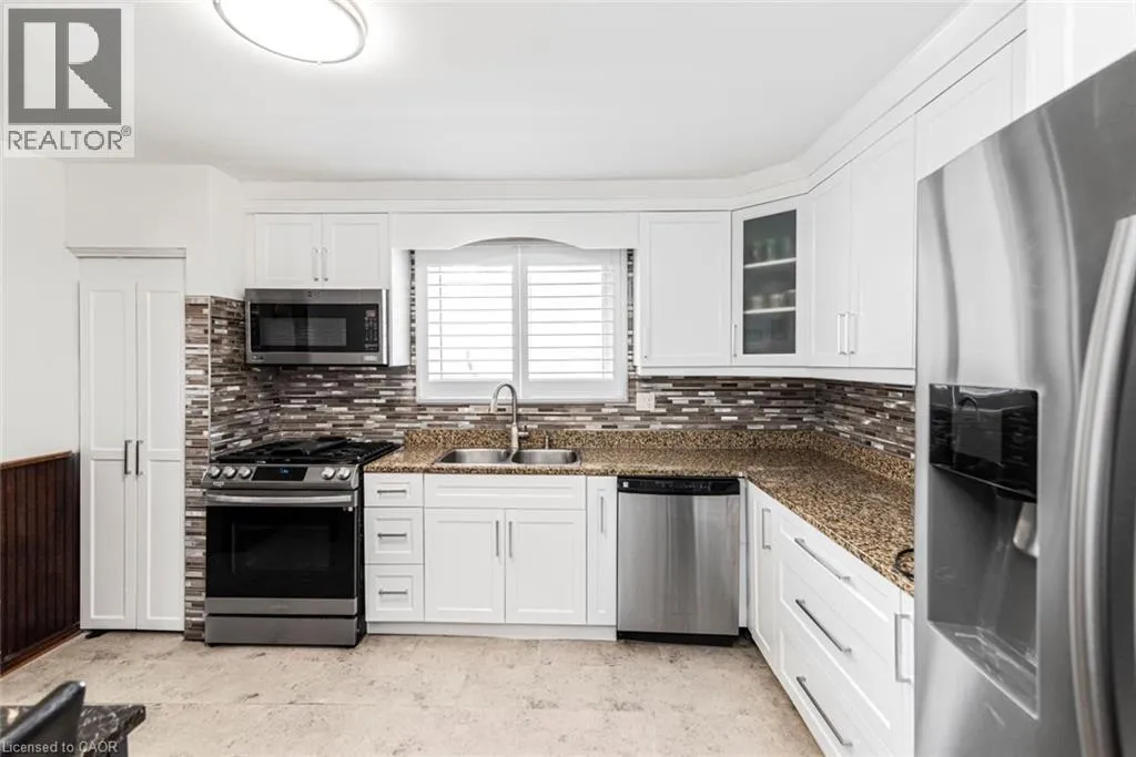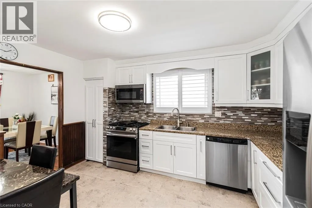 Upper Gage Ave to Loconder Dr to Quaker Cres Welcome to 102 Quaker Crescent â a beautifully renovated home with a fully equipped in-law suite. From the charming façade to the cozy front porch, this home sets a welcoming feeling immediately. Inside, youâll find a bright living space that flows seamlessly into the dining area and recently updated kitchen â ready for your perfect family dinner. The main level offers three comfortable bedrooms, providing plenty of space for the whole family. The lower level showcases a newly finished in-law suite with a private entrance, spacious living room with fireplace, full kitchen, laundry and a bedroom with an impressive walk-in closet. Outside, the backyard is a blank canvas awaiting your personal touch, complemented by a new aggregate patio and shed. Notable updates within the last five years include: furnace, A/C, roof, windows, fence, aggregate driveway and patio, both kitchens, both bathrooms, in-law suite, separate laundry and walk-in closets in both the garage and basement. Donât be TOO LATE*! *REG TM. RSA. (id:27476)