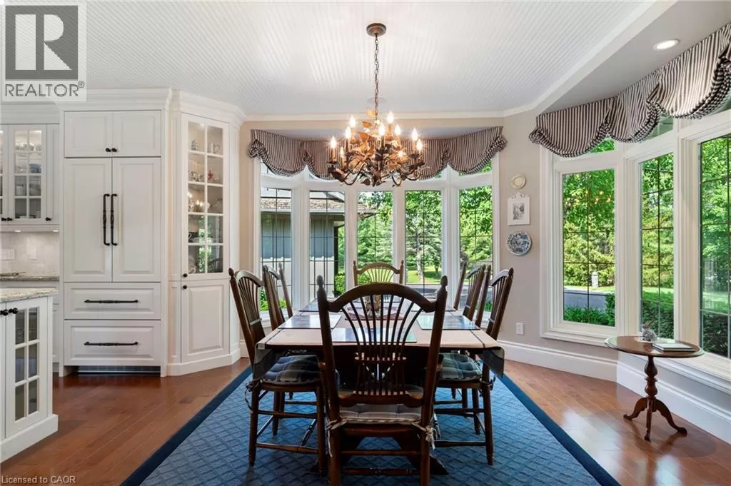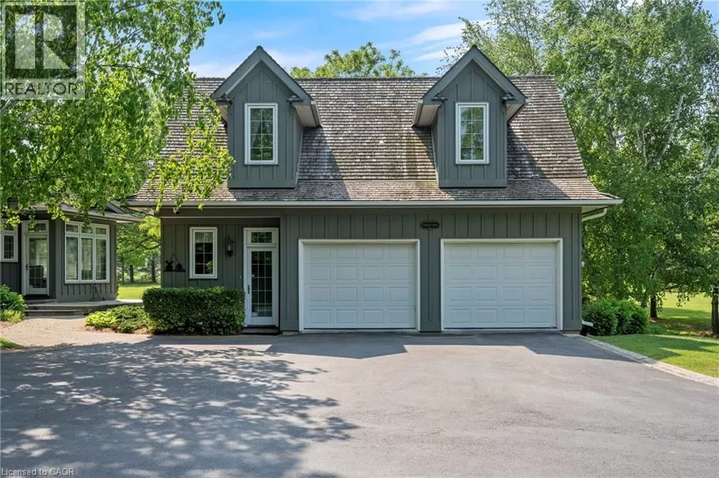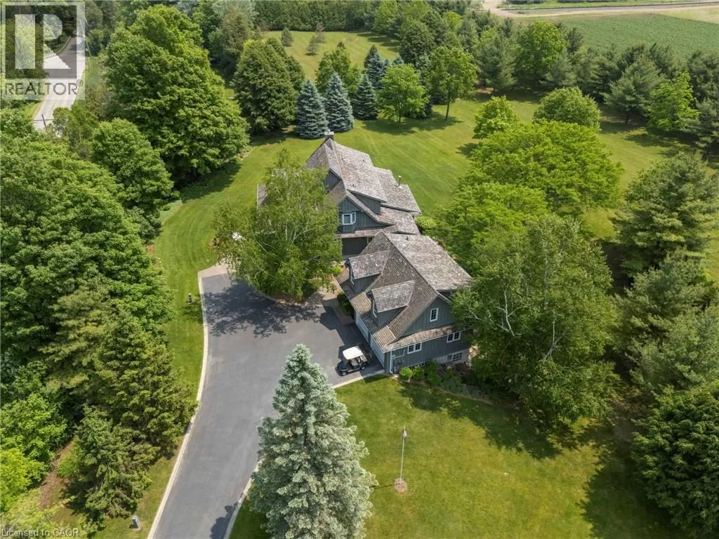 Carlisle Rd to Progreston Welcome to your private country retreat on nearly 4 acres in the heart of Carlisle. From the moment you arrive, this property leaves a lasting impression with its winding driveway, lush natural surroundings, and timeless centre-hall design. Nestled on a quiet hill and surrounded by mature trees, this custom-built home offers an exceptional blend of craftsmanship, quality, and classic charm. The inviting front and covered side porches provide peaceful spaces to relax and take in the views. Inside, the home showcases maple hardwood flooring and a bright, open-concept layout designed for modern living. The kitchen is equipped with high-end stainless steel appliances, quartz countertops, and a large central island that flows seamlessly into the dining and living areas, perfect for both entertaining and everyday comfort. Just off the kitchen, a sunroom offers a serene spot to enjoy morning coffee while overlooking the greenery. The family room exudes warmth with its inviting fireplace and direct walkout to the backyard. Upstairs, the primary suite is a true retreat. Designed with spa-like comfort in mind, this space features a spacious layout, walk-in closets, and a luxurious en-suite bathroom complete with a glass shower, soaker tub, double vanity, and heated floors. The fully finished basement offers generous additional living space and ample storage, making it perfectly suited for a variety of needs. A standout feature of this property is the workshop, ideal for storage, projects, or equipment. Another highlight is the spacious, fully finished apartment above the double garage with a separate entrance, offering incredible potential for guests, in-laws, or rental income. This is a rare opportunity to own a truly versatile property in one of Carlisleâs most picturesque locations. With premium finishes, thoughtful design, and expansive indoor and outdoor living spaces, this home delivers a lifestyle thatâs increasingly hard to come by. (id:27476)