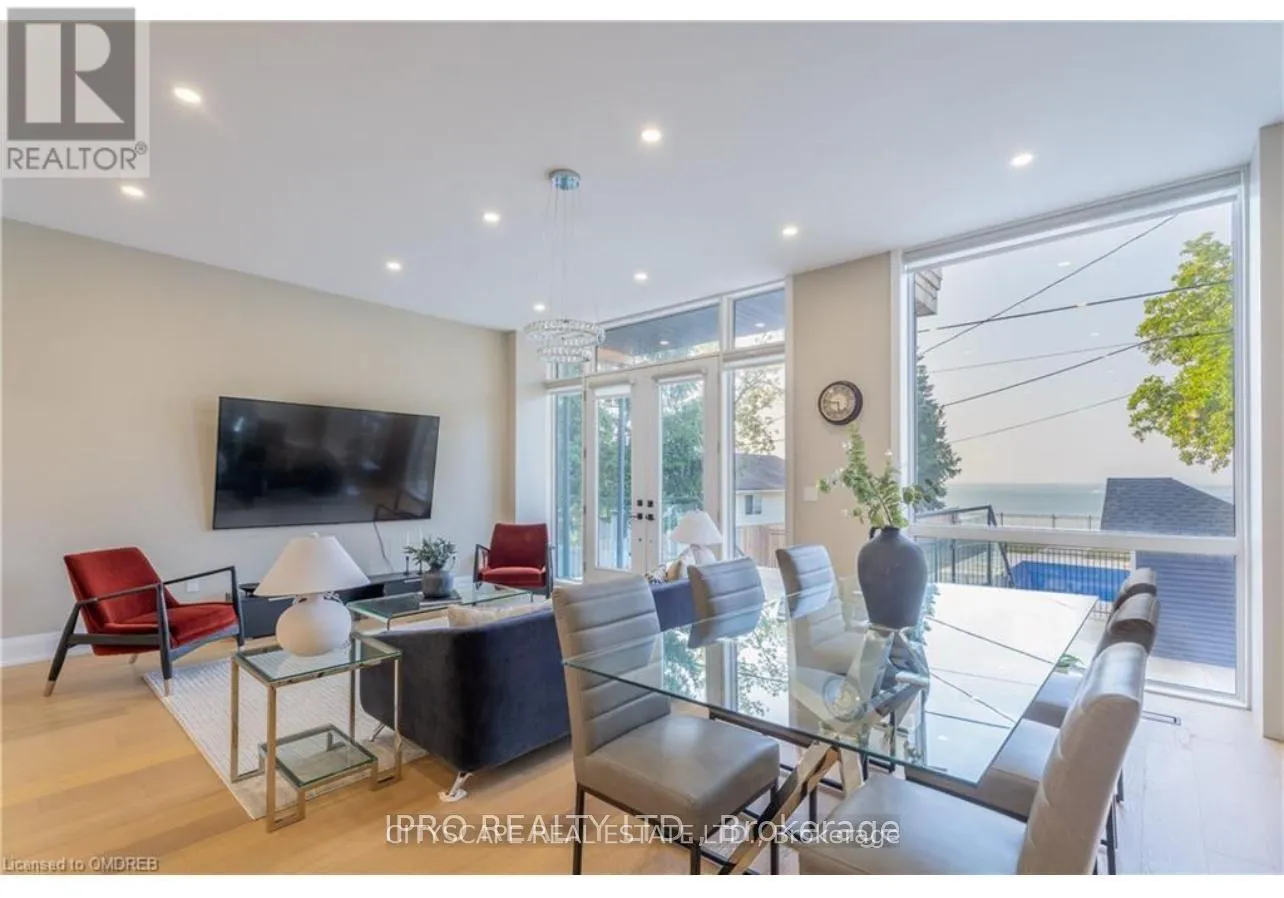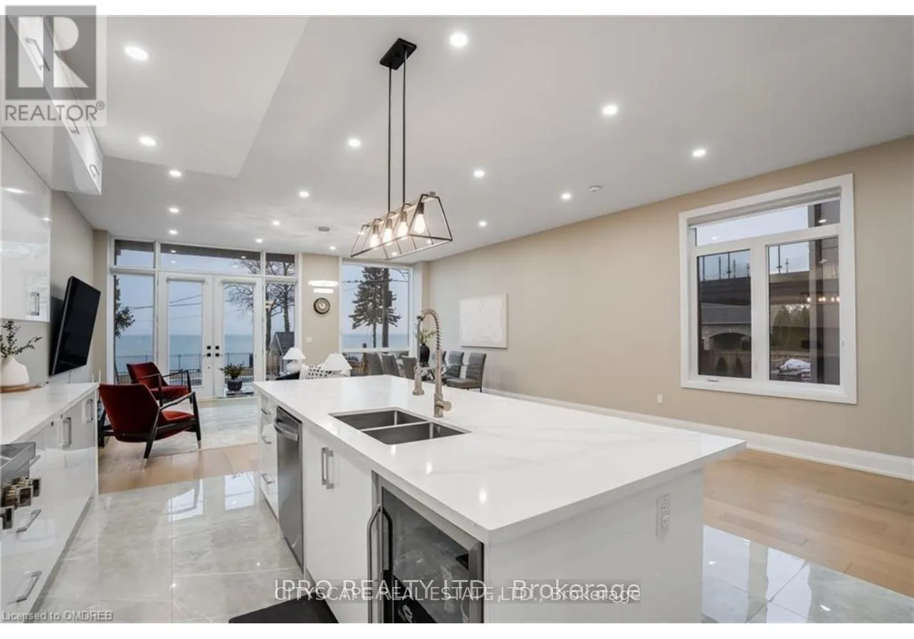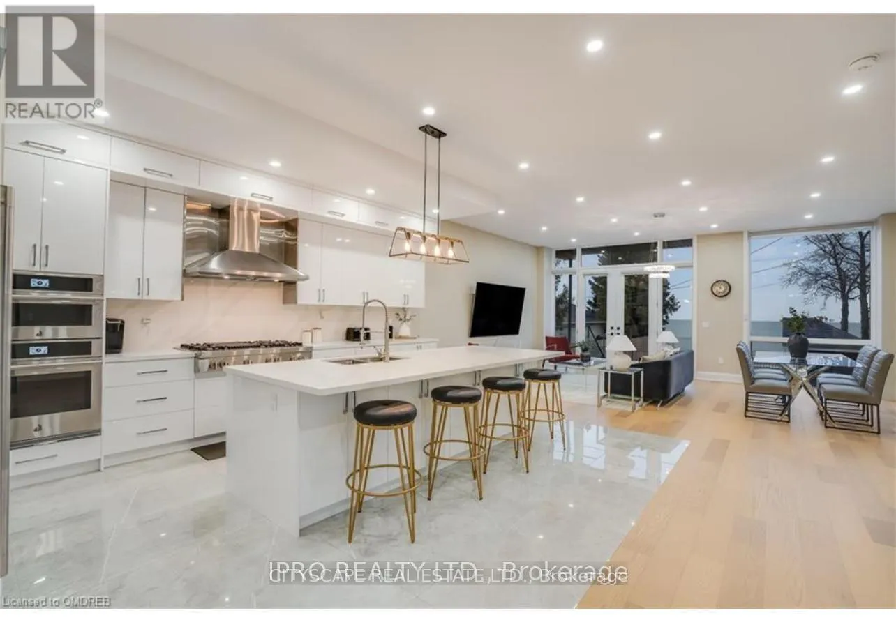 N Service Rd/Campview Rd Welcome to 6 Campview Road a truly exceptional waterfront estate offering luxury, privacy, and rare direct access to the shores of Lake Ontario. This custom-built home spans over 4700 sq ft of elegant living space, Built in 2022, this remarkable home showcases beautiful craftsmanship throughout, w/10' ceilings on the main level, led pot lights, elegant engineered hardwood floors, and a stunning open concept floor plan that seamlessly blends all the living areas together. Expansive windows bring the outdoors in w/ unobstructed views of the water. Chef's gourmet kitchen designed w/ high-end JennAir appliances anchors this home and fts quartz countertops and ample upper and lower cabinetry space. Charming living room w/ a gas fireplace creates the perfect ambiance to sit around and catch up with loved ones. Step into your primary bedroom above designed w/ a large walk-in closet, 5pc ensuite and direct access to your private balcony overlooking the tranquil Lake and its soothing sounds. 4 more bedrooms down the hall w/ ensuites. 9' ceilings on 2nd lvl! The lower level w/ walk-up fts 2 more bedrooms, a full size kitchen, a dining area, a 3pc bath & a rec room w/ electric fireplace. Great for multi-generational living or investment purposes! Spacious backyard w/ inground pool and ample seating areas to entertain! Mins to Downtown Burlington & Niagara Region, Marinas, Trails, Shops, Schools, Major Highways & More. (id:27476)