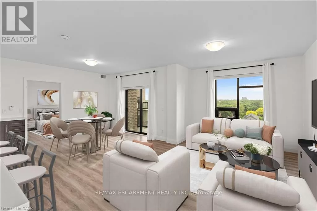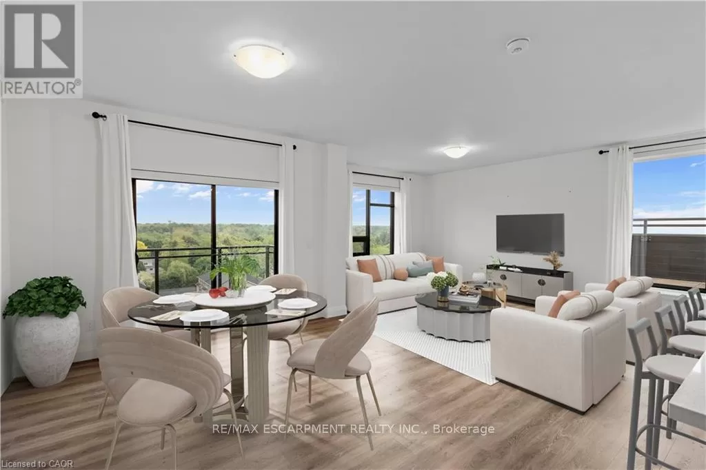 Cross Streets: Barton Street. ** Directions: Barton/Hamilton Street S. Luxurious Penthouse Condo offering breathtaking sunrises and views of Lake Ontario and the Skyway Bridge. Located in the sought-after VIEW building, this special unit checks every box with its bright, open-concept layout, custom kitchen featuring an oversized island, soft-close cabinetry, and sleek stainless steel appliances. Enjoy the separate living and dining areas, two spacious bedrooms with built-in closet organizers, and two full baths for ultimate convenience. Step out onto your private balcony or the large terrace to soak in the sun and take in the stunning views. Additional perks include two indoor parking spots and a storage locker conveniently located on the same floor. The VIEW itself is an upscale condominium, complete with a welcoming concierge service and impressive main-level amenities. Cozy up by the fireside in the elegant common room, host friends in the bright boardroom/dining area with a warming kitchen, or relax with a good book in the reading nook. The building also boasts a well-equipped gym, a handy dog washing station, and two rooftop terraces with BBQs and seating perfect for mingling with neighbours and taking in the views. Centrally located in vibrant Waterdown, youll love being within walking distance to shopping, restaurants, library, parks, trails, and everything this fantastic community has to offer. (id:27476)
