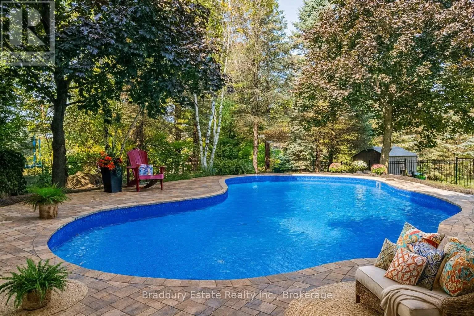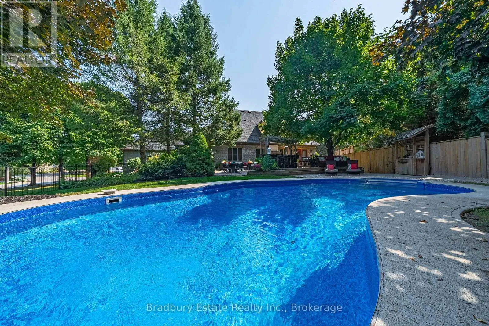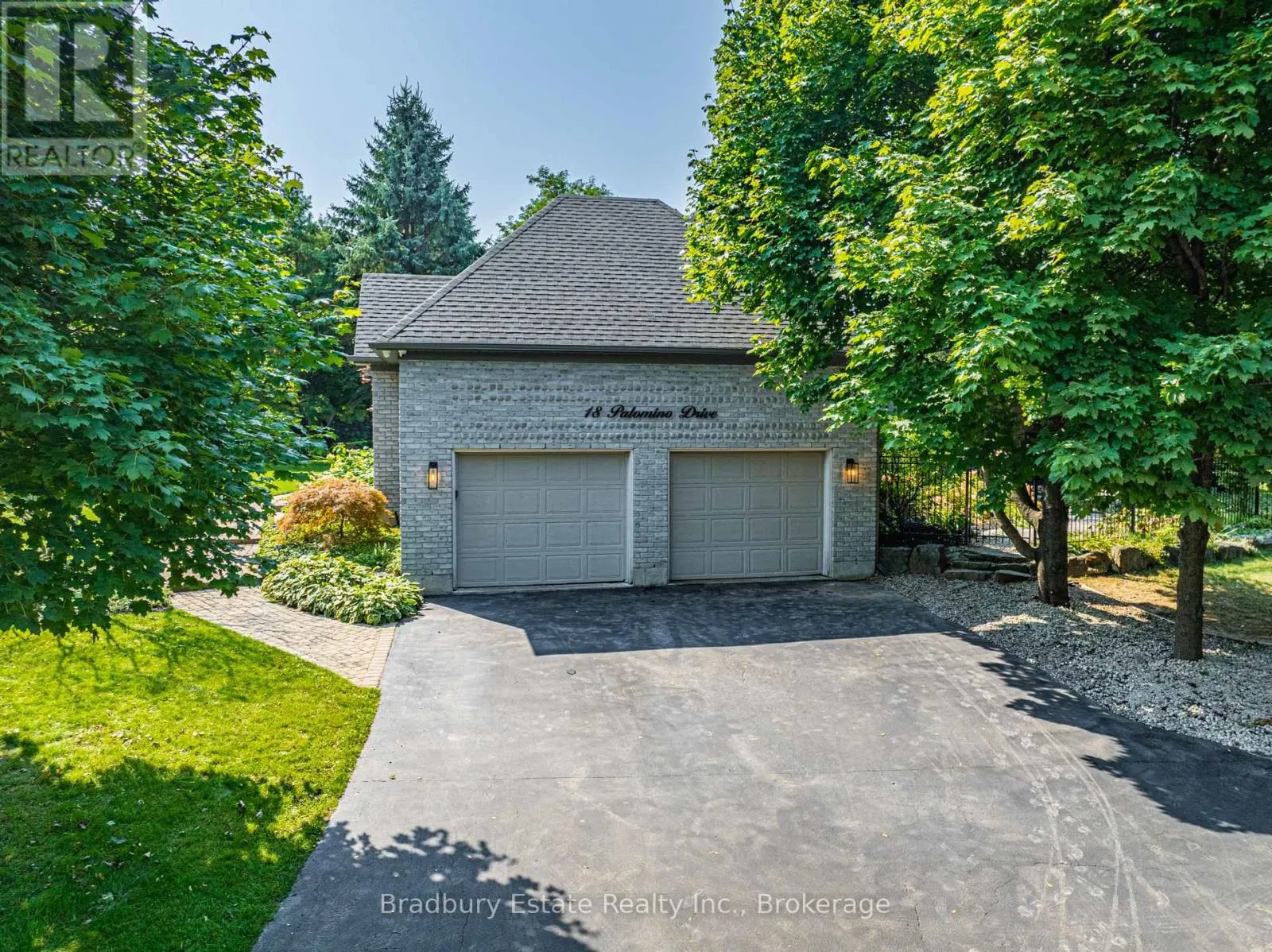 Cross Streets: Carlisle Rd & Palomino. ** Directions: Carlisle Rd to Palomino. Welcome to 18 Palomino Estates - Flamborough's most prestigious and sought-after communities. This rare bungaloft floor plan offers exceptional flexibility for todays lifestyle, featuring two main-floor bedrooms, each with its own ensuite, perfect for downsizers or multi-generational families. Upstairs, you'll find two additional bedrooms and a full bath, plus two more bedrooms on the lower level with a full bath and recreation spaces. With over 4,000 sq. ft. of finished living space, and half-acre estate-sized lot, this property is move-in ready and presents a unique opportunity to customize into the luxury home you've always envisioned. The homes timeless brick exterior and gracious curb appeal set the stage for endless possibilities. The back-yard oasis has incredible privacy, extensive patios/decks, a salt-water pool and tons of additional space to add a pool house, ADU or workshop. The double car garage has extra height and can accomodate a car lift, while the driveway can host up to 8 cars. Nearby, updated homes of similar scale have sold for significantly higher values - this is your chance to secure the address and design the space your way. Recent updates include Soffits (2025), Shingles (2016), Keeprite Furnace (2018) A/C (2018), Salt-water pool (2018), Internet is is Bell Fibre. 1000 gallon septic. Inspirational Renderings, sample boards and actual estimates have been obtained and are viewable when you book for your private showing or upon request. (id:27476)