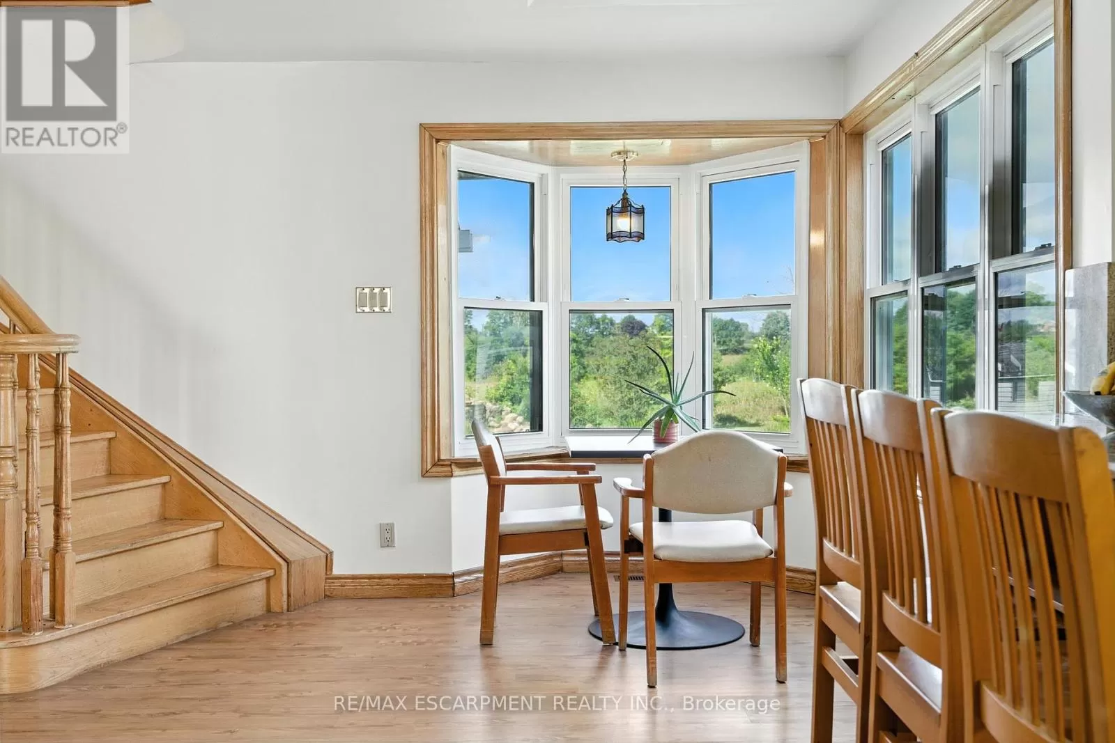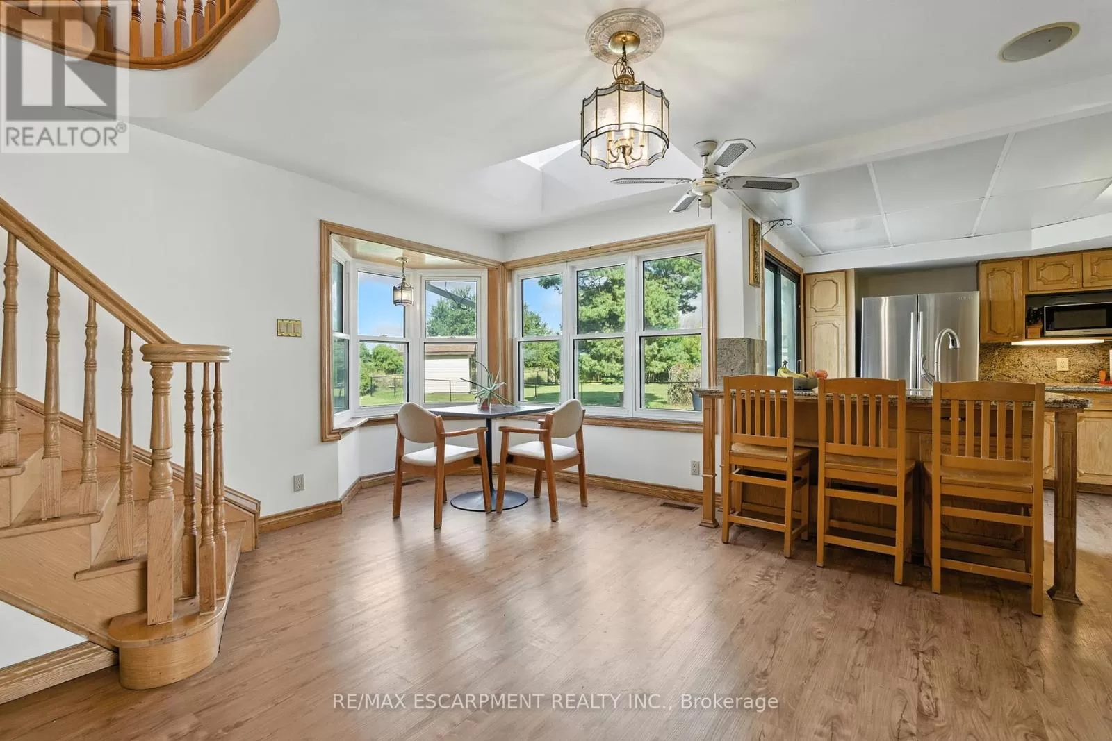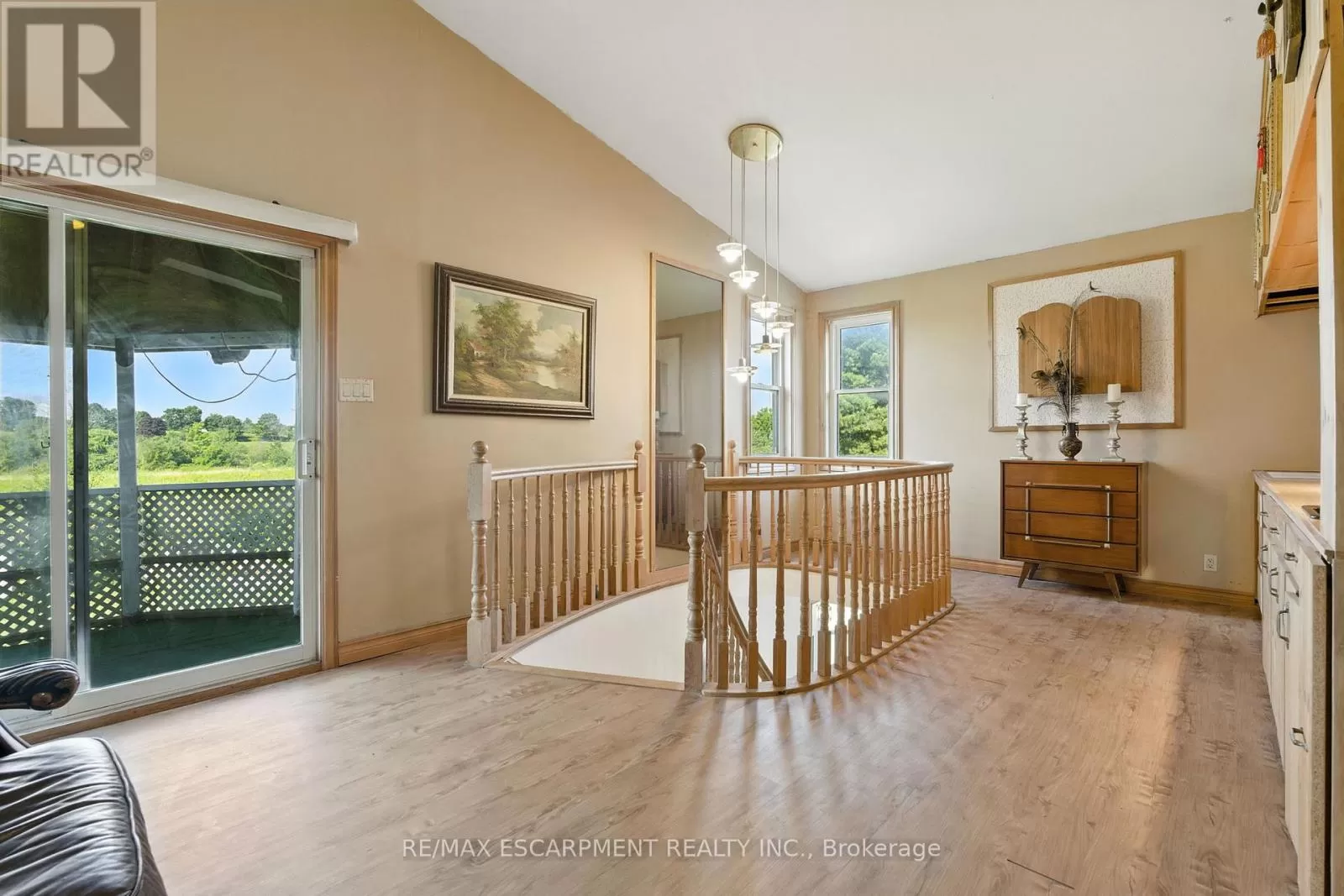 Hwy 5 past Sydenham Rd, before Ofield Rd N Bring your vision and creativity to this incredibly spacious and unique two-storey home on a premium 100' x 150' lot backing onto open fields! Offering over 3,500 square feet of living space, this one-of-a-kind and functional layout has amazing potential for a multi-generational setup. The main level features a large eat-in kitchen with granite countertops and gas stove, three generously sized bedrooms, main-floor laundry, and oversized living spaces throughout. The upper level is home to a massive primary suite with ensuite - perfect for a private retreat and family room with high ceilings and a wet bar. All rooms are impressively sized, offering endless renovation opportunities. Located just minutes to Dundas, Waterdown, Burlington, Hamilton, major highways and the GO Station - this is a fabulous location to invest in and transform into your dream home! RSA. (id:27476)