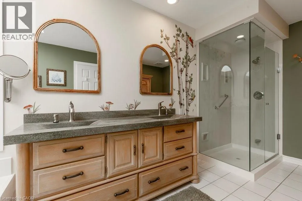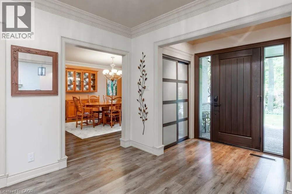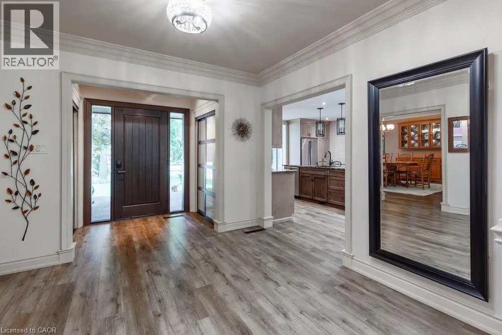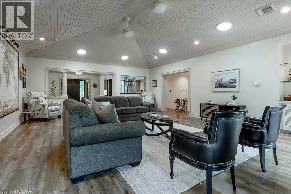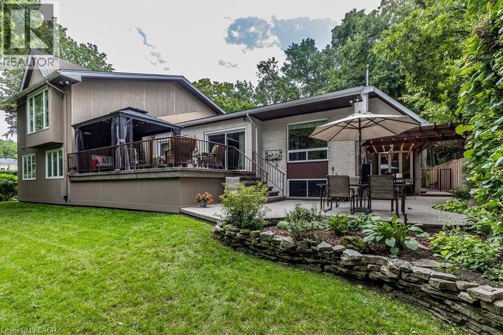 Garth St to Braemar Pl Tucked away on a quiet cul-de-sac in one of Hamiltonâs most prestigious neighbourhoods, this remarkable residence blends functional design, modern updates, and a rare opportunity for multi-generational living. Set on a beautifully landscaped, sprawling lot, this 5-bedroom, 5-bath home boasts over 5000 sq. ft. of finished living space. A grand foyer welcomes you inside, leading to a soaring vaulted-ceiling great room, a newly renovated eat-in kitchen, and a formal dining area, perfect for both everyday living and elegant entertaining. The main level features three generous bedrooms, including a private in-law suite with its own entrance, offering comfort and flexibility for extended family or guests. Upstairs, the principal retreat spans the entire floor and showcases a spa-inspired ensuite with a glass shower, jacuzzi tub, and warm organic finishes. A fully finished lower level extends the living space with a recreation room, additional bedroom and bath, laundry, workshop, and abundant storage. Step outside to your private backyard oasis, where multi-tiered seating areas are framed by mature trees, ideal for summer gatherings or quiet morning coffee. With its scale, versatility, and premier location just steps from top schools including Hillfield Strathallan and Mohawk College, and only minutes to St. Josephâs Hospital and Hamiltonâs vibrant downtown, this is a truly special offering. (id:27476)
