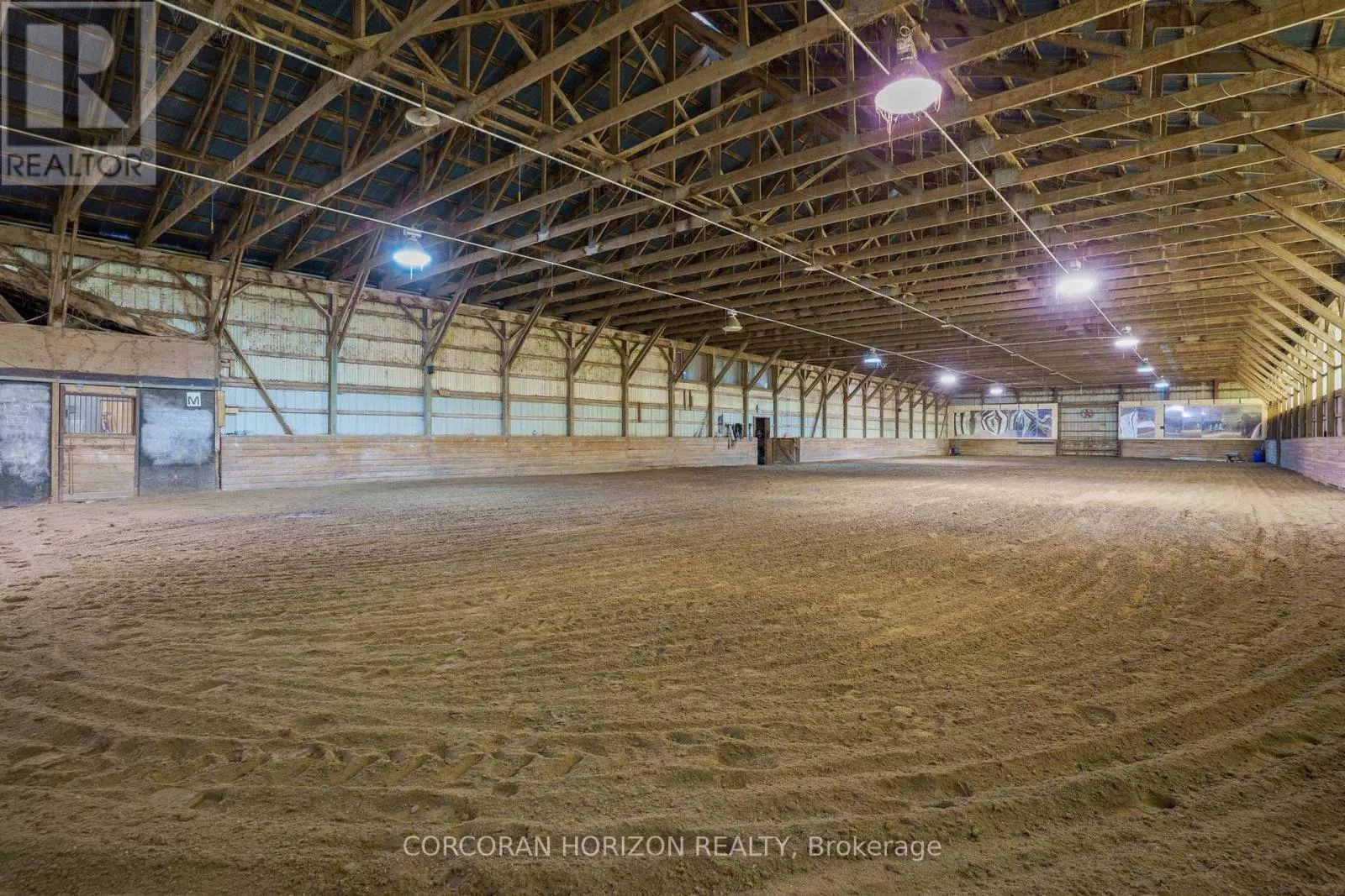 Cross Streets: Westover Rd. ** Directions: Highway 6 to Concession 5 W. VERSATILE FARM PROPERTY PERFECT FOR HORSE ENTHUSIASTS! Discover 45.74 acres of privacy and opportunity with this versatile farm, ideally located close to Hamilton, Brantford, Guelph, Cambridge with quick access to 401 and 403. Perfect for equestrian enthusiasts, trainers or hobby farmers, this property offers a unique blend of lifestyle, function, and income potential. The main residence is a charming 3-bedroom bungalow with room for customization featuring a large great room with 3 french doors leading to the wrap around porch overlooking green pastures. Steps from your door, the property features a workshop, original 80x40 bank barn with 6 stalls (10x11), a tack room, dry storage and complemented with a finished upper level classroom for summer camps, clinics, and more. An attached barn offers 24 additional stalls, a locker room, an additional tack room, a wash bay equipped with hot water, 2-piece bathroom and access to an upper-level approx. 900 sq ft (1-bed plus den, 1 bath) apartment ideal as barn staff accommodation or as additional rental income. The true highlight of the barn is the 60x190 indoor riding arena with a sand base, new LED lighting and overhead sprinkler system. The property is completed with 11 paddocks of varying sizes, an outdoor riding ring (approx 100x200), round pen and conservation protected forest with pond. Ample space for trailers, turnouts, paddocks, and more . All this, just a short drive to town amenities enjoy the serenity of country life without sacrificing convenience. Whether you're looking to grow your equestrian operation as a lesson barn or boarding facility or simply want to enjoy the wide open spaces, this property offers the perfect blend of land, lifestyle, and long-term value. Schedule your showing today to check out this turn key horse venue. (id:27476)