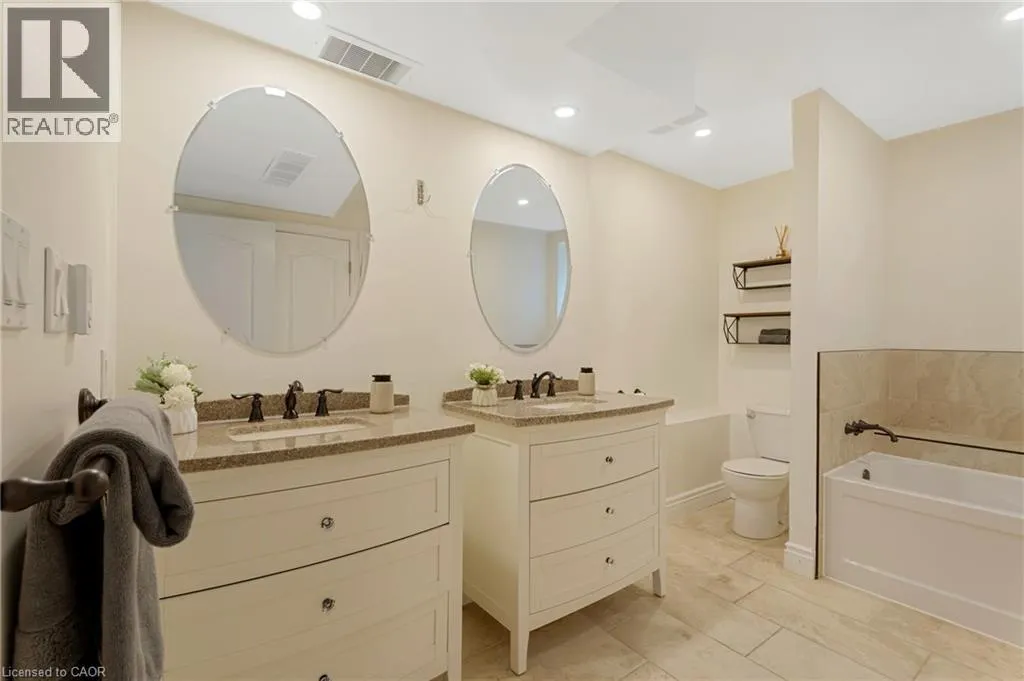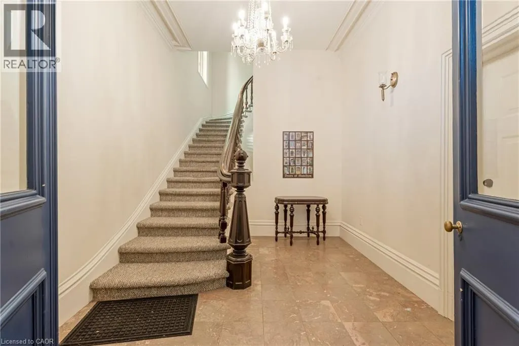 Park St S & Herkimer Own a piece of the cityâs history in this stunning 1,700 sq. ft. condo, part of a beautifully maintained 1870s building with only 4 exclusive units. This main-floor suite is the only one with a private entrance and direct access to parking. Soaring 11-ft ceilings, tall windows, and walnut hardwood floors highlight the spacious living and dining rooms, complete with custom built-ins and fireplace. The gourmet kitchen boasts high-end cabinetry, granite counters, and stainless steel appliances. Both bedrooms feature updated ensuite baths, plus thereâs in-suite laundry, ample storage, and two parking spaces. Nestled in a quiet downtown neighbourhood, steps to St. Josephâs, Durand Park, GO Station, trails, and James St. S. shops and cafés. Modern updates meet timeless charmâan opportunity rarely offered. (id:27476)