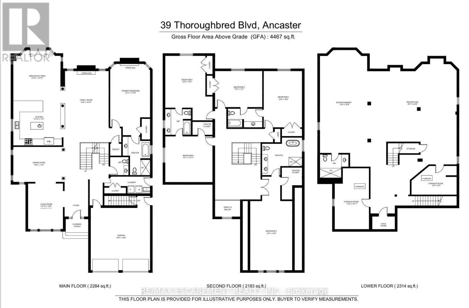 Cross Streets: KITTY MURRAY LN/Thoroughbred Blvd. ** Directions: Golf Links Road Turns Into Kitty Murray. Welcome to 39 Thoroughbred Blvd a custom-built luxury estate in Acaster's prestigious Meadowlands community, backing onto greenspace for rare privacy and serenity. With over 6,700 sq ft of living space, this home is ideal for large or multi-generational families seeking both elegance and function. The main floor features a spacious in-law suite with ensuite privilege perfect for elderly parents or guests along with formal living and dining rooms, a cozy fireplace, and soaring 12-ft ceilings in the kitchen and family room. Upstairs offers five additional generously sized bedrooms, including two Jack & Jill bathrooms and a luxurious primary suite with vaulted ceiling, walk-in closet, and spa-like 5-pc ensuite totaling six bedrooms above grade. The finished basement adds over 2,000 sq ft with a separate entrance to the garage, a new 3-pc bathroom, oversized storage rooms, and open space with potential for a gym, home theatre, or additional bedrooms the possibilities are endless. Professionally landscaped and surrounded by mature evergreens, the backyard offers tranquil greenspace views. Dual furnaces, A/C units, and hot water tanks ensure year-round comfort. Just minutes to Costco, Meadowlands Power Centre, top schools, parks, and highway access this is a rare opportunity to own an exceptional home with space, privacy, and flexibility for every generation. (id:27476)
