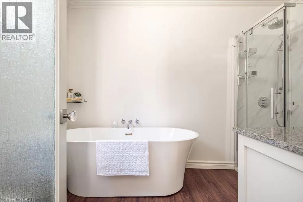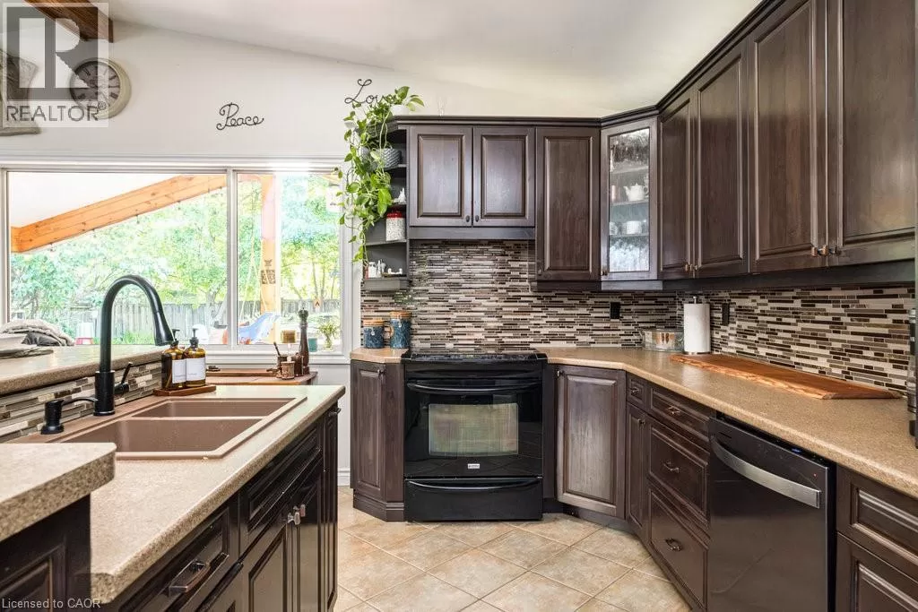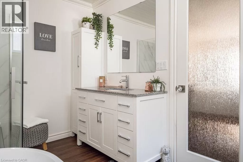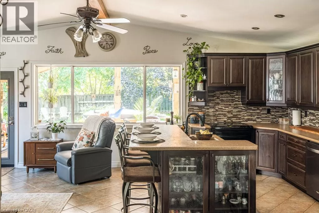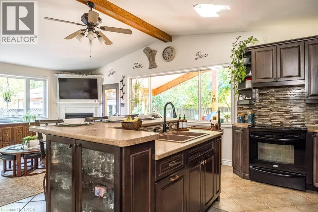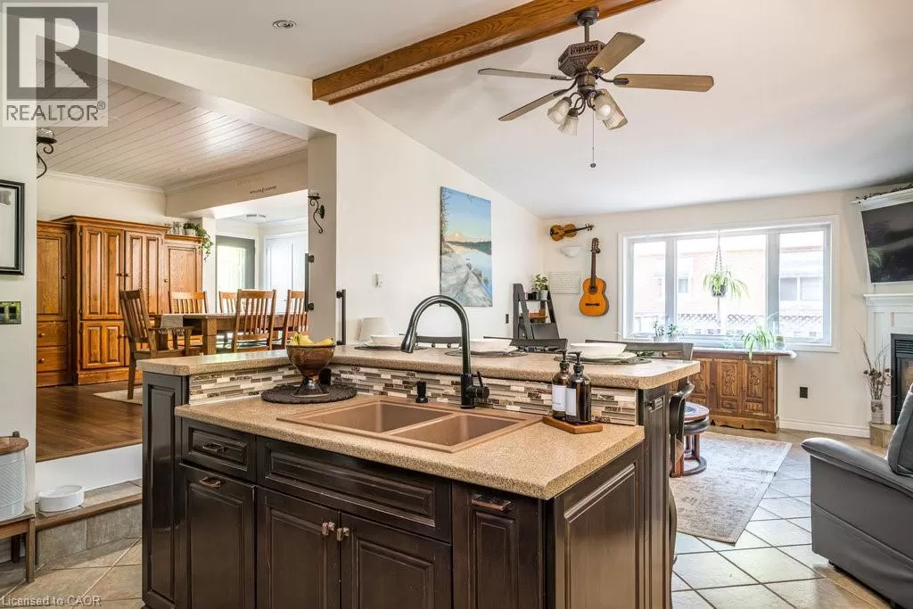 Between Fennell Avenue East and Brucedale, just West of Upper Wellington. Looking for that Muskoka vibeâright in the city? Welcome to 87 East 9th Street: a thoughtfully expanded 2,286 sq. ft. two-storey home that seamlessly blends modern updates with timeless character, charm, and exceptional versatility. Whether for a growing family, an in-law suite, or rental income, the flexible layout offers the rare potential to convert into two separate above-ground units if desired. Located on a quiet, family-friendly street in the heart of Hamilton Mountain, this unique home features 5 bedrooms, 3.5 bathrooms, 2 kitchens, and a 6-car driveway on a private 55' x 127' lot. Step inside to a beautifully renovated main floor with a bright entryway, large closet, and charming powder room. The dining room, naturally lit by a skylight, leads to a sun-drenched rear addition with cathedral ceilings, a cozy gas fireplace, and a stunning open-concept kitchen and living area. From here, walk out to your private outdoor oasisâan expansive, timber-framed covered porch overlooking a fully fenced backyard with mature trees, a paved play area, storage shed/playhouse, and built-in hot tub. The main level also includes a private primary suite with a 4-piece ensuite, a second bedroom, main floor laundry, and a bonus second kitchenâideal as a craft room, studio, or office. Donât miss the cozy enclosed front porch! Most of this level features new vinyl flooring, trim, doors, and fresh paint. Upstairs offers a spacious hallway, three generously sized bedrooms with hardwood flooring and ample closets, and a beautifully renovated 3-piece bath. Just 10 minutes to the GO Station, Locke Street, downtown, and highways. Steps to Sam Lawrence Park, Concession Street shops, Juravinski Hospital, and Escarpment trails. With more space and a larger lot than most homes in the area, this is a one-of-a-kind opportunity at unbeatable value. (id:27476)