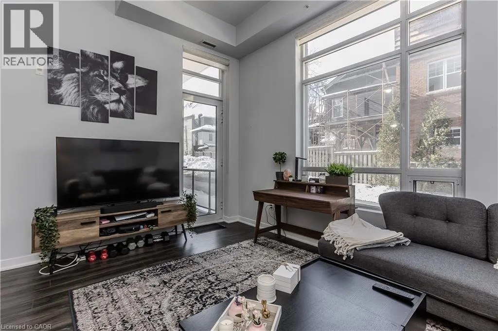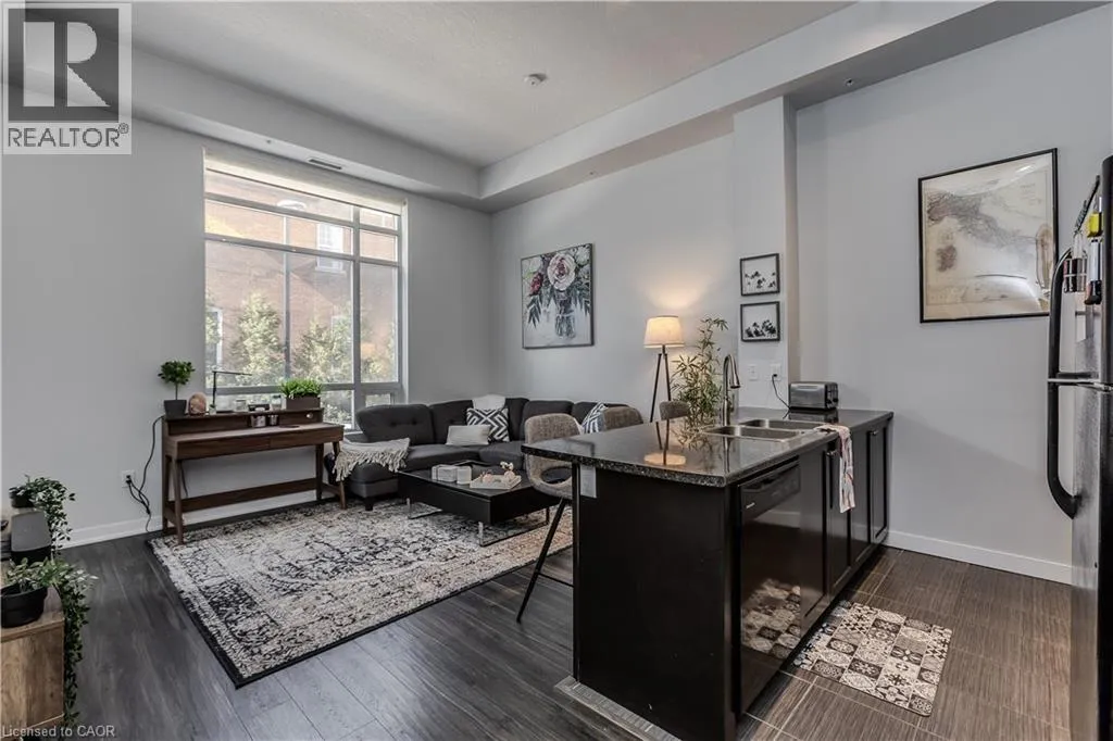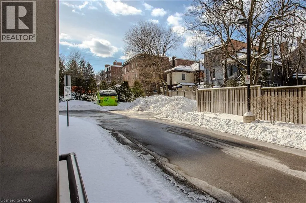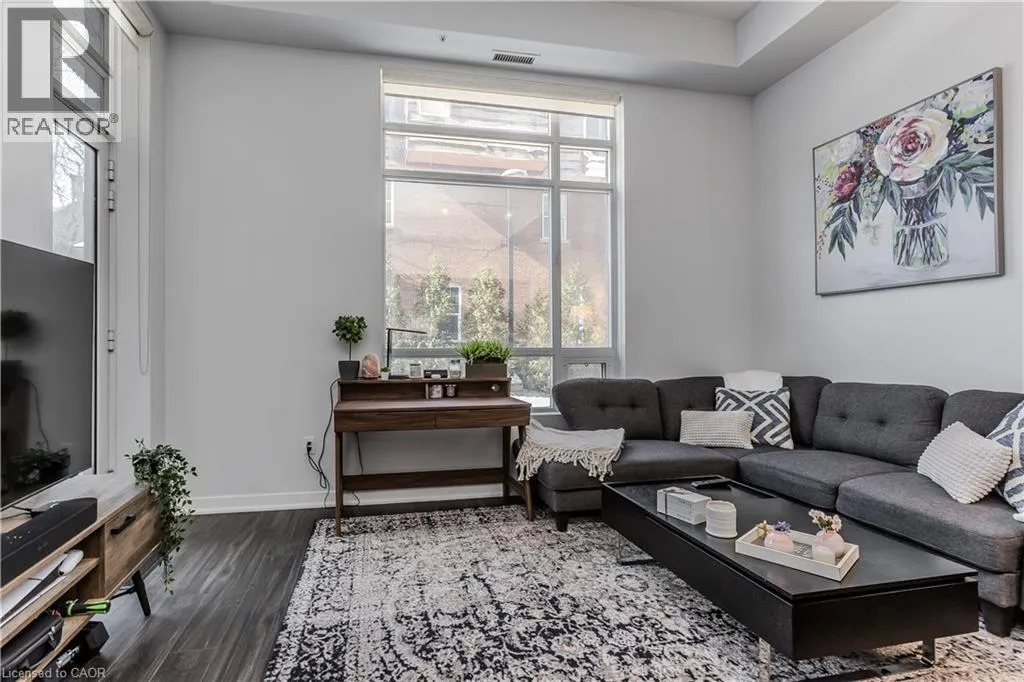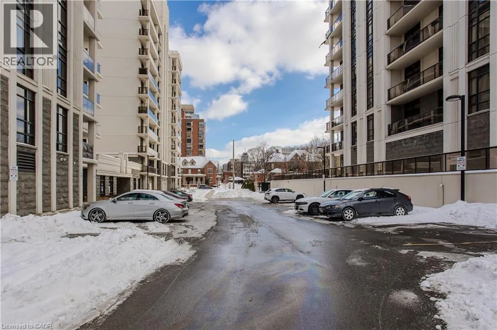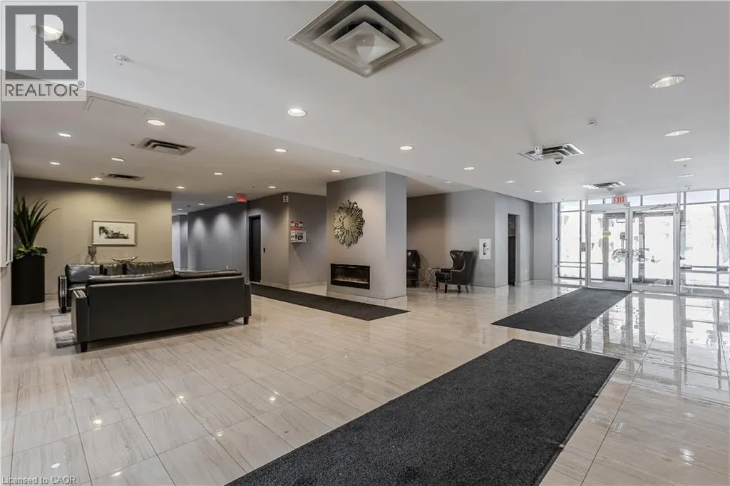 James St S to Robinson St Welcome to City Square, a stylish and modern condo in Hamiltonâs sought-after Durand neighbourhood! This stunning 1-bedroom, 1-bathroom unit offers 11 ft ceilings and oversized windows, flooding the open-concept space with natural light. The contemporary kitchen features a peninsula with a breakfast bar, a pantry, and sleek finishes, while the spacious bedroom offers private balcony access. The modern bathroom boasts a glass and tile shower with ample counter space. Enjoy the convenience of in-suite laundry and a bright, airy living space. The City Square building offers hotel-like amenities, including an exercise room, party room, media room, yoga room, and a two-floor terrace with BBQs, bike storage, and lockers. Located just steps from shopping, dining, and public transit, this condo is also close to St. Josephâs Hospital and the Hunter Street GO Stationâperfect for professionals and commuters. Don't miss this opportunity to live in one of Hamiltonâs most vibrant communities! Book your showing today! (id:27476)