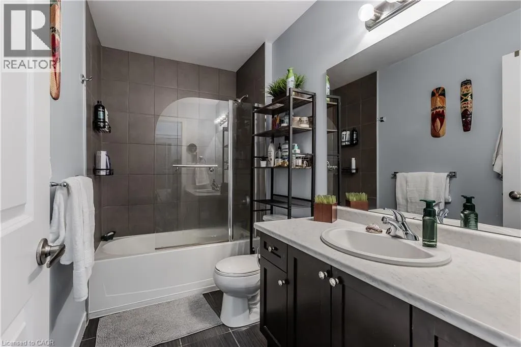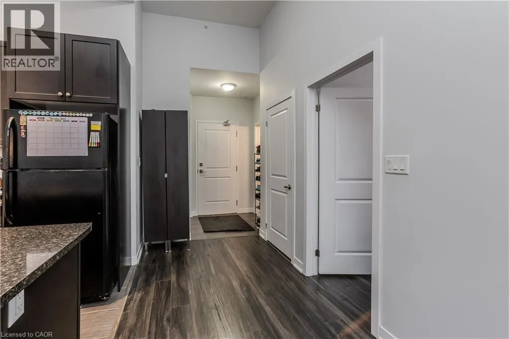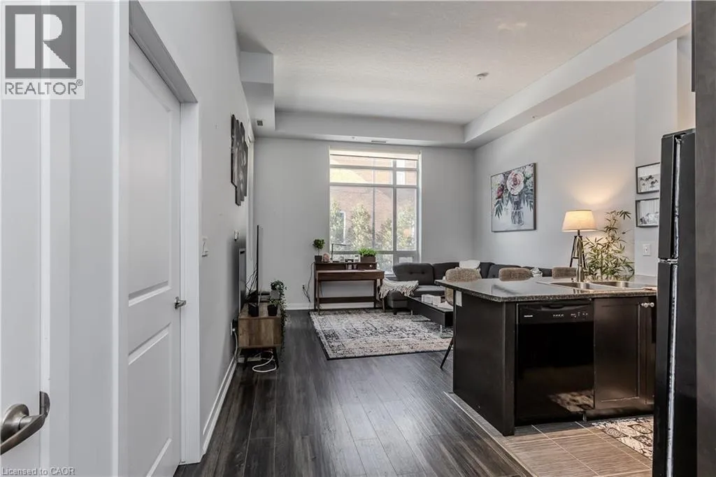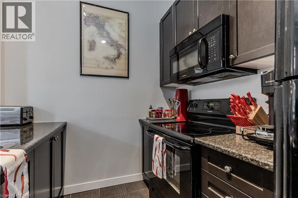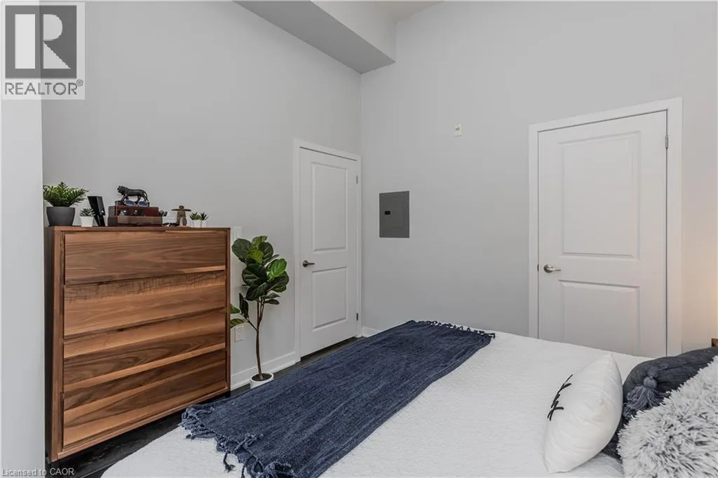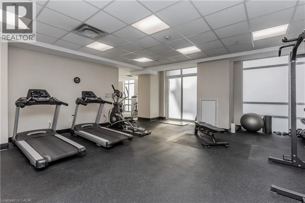 James St S to Robinson St Welcome to City Square, a stylish and modern condo in Hamiltonâs sought-after Durand neighbourhood! This stunning 1-bedroom, 1-bathroom unit offers 11 ft ceilings and oversized windows, flooding the open-concept space with natural light. The contemporary kitchen features a peninsula with a breakfast bar, a pantry, and sleek finishes, while the spacious bedroom offers private balcony access. The modern bathroom boasts a glass and tile shower with ample counter space. Enjoy the convenience of in-suite laundry and a bright, airy living space. The City Square building offers hotel-like amenities, including an exercise room, party room, media room, yoga room, and a two-floor terrace with BBQs, bike storage, and lockers. Located just steps from shopping, dining, and public transit, this condo is also close to St. Josephâs Hospital and the Hunter Street GO Stationâperfect for professionals and commuters. Don't miss this opportunity to live in one of Hamiltonâs most vibrant communities! Book your showing today! (id:27476)