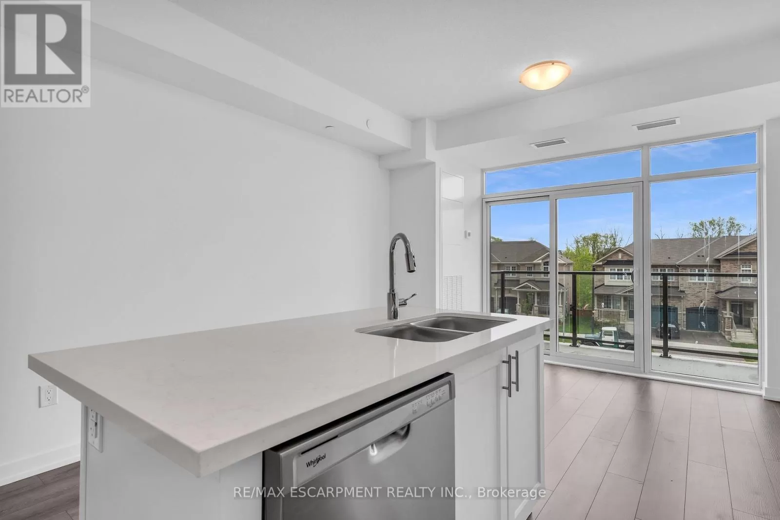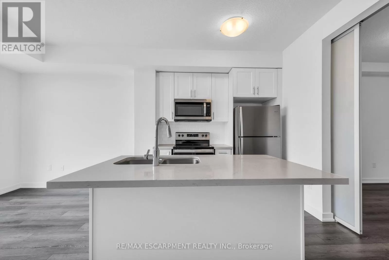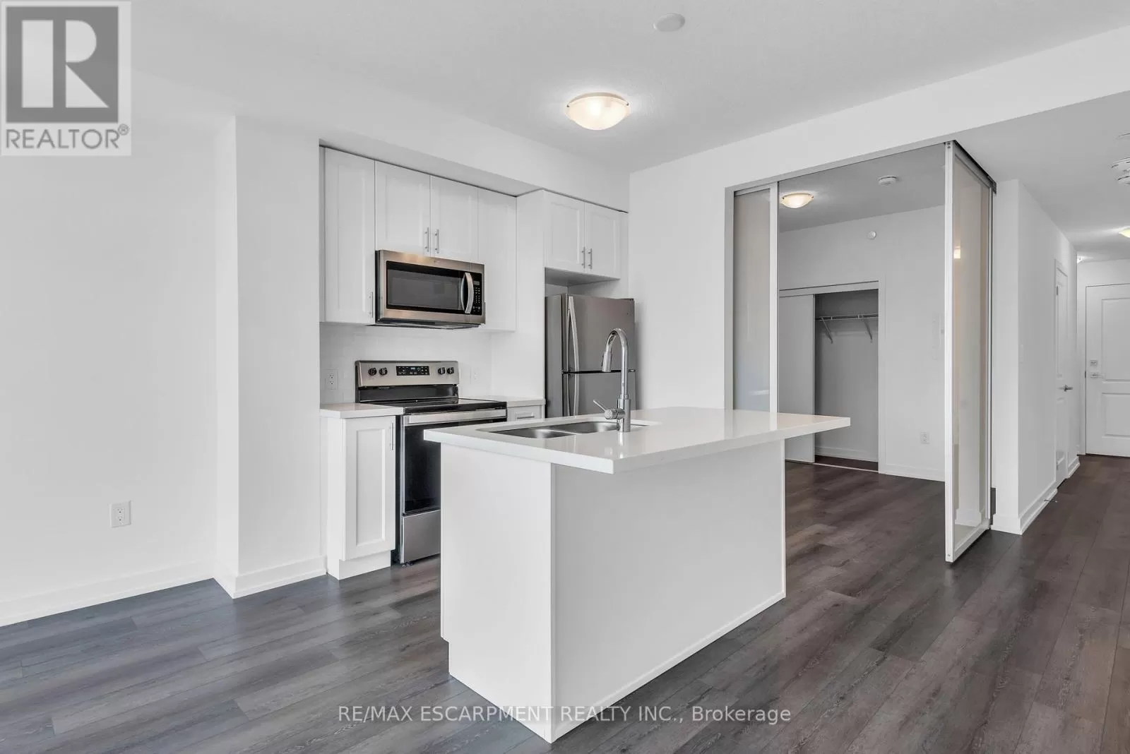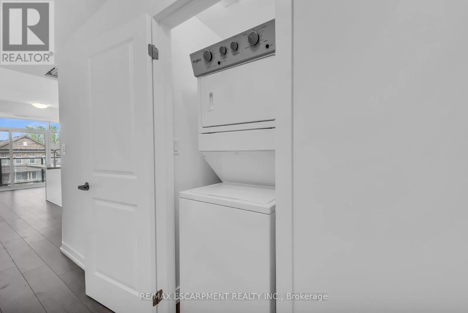 Follow Dundas St E to Mallard Trail Welcome to this stunning 2nd-floor unit in the highly sought-after Trend 3 community! Step into a bright and inviting 1-bedroom condo. The open concept layout seamlessly connects the modern kitchen and living area, featuring brand-new stainless steel appliances, a stylish breakfast bar with quartz counter tops, and direct access to your private balcony. A well-appointed 4-piece bathroom and the convenience of in-suite laundry complete this thoughtfully designed space. Enjoy a lifestyle of comfort and convenience with exceptional building amenities, including vibrant party rooms, a state of the art fitness center, scenic roof top patios, and secure bike storage. Located in the heart of Waterdown, this home offers effortless access to top-rated dining, shopping, schools, and picturesque parks. Included with the unit is 1 owned surface parking space and an owned locker for extra storage. Experience contemporary living at its finest in this exceptional condo! Some photos are virtually staged. (id:27476)
