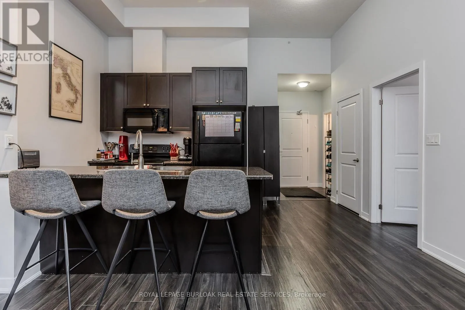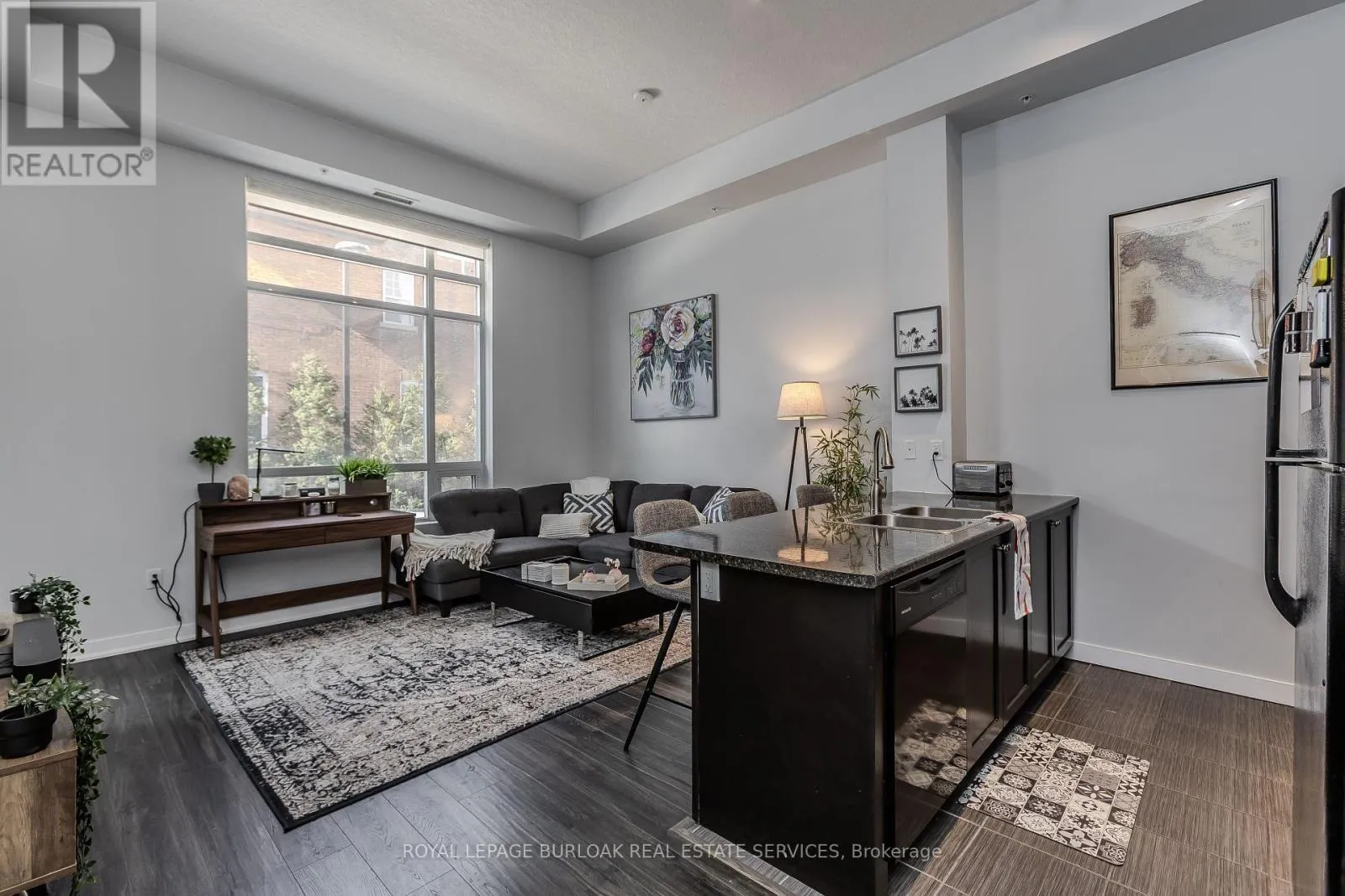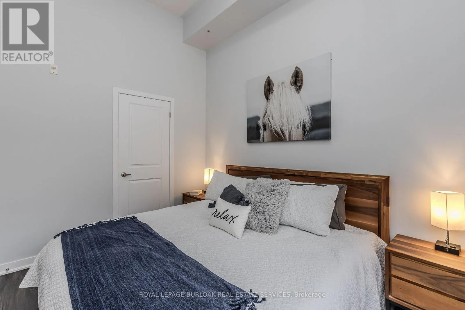 Cross Streets: Park Street South. ** Directions: James St S to Robinson St. Welcome to City Square, a stylish and modern condo in Hamilton's sought-after Durand neighbourhood! This stunning 1-bedroom, 1-bathroom unit offers 11ft ceilings and oversized windows, flooding the open-concept space with natural light. The contemporary kitchen features a peninsula with a breakfast bar, a pantry, and sleek finishes, while the spacious bedroom offers private balcony access. The modern bathroom boasts a glass and tile shower with ample counter space. Enjoy the convenience of in-suite laundry and a bright, airy living space. The City Square building offers hotel-like amenities, including an exercise room, party room, media room, yoga room, and a two-floor terrace with BBQs, bike storage, and lockers. Located just steps from shopping, dining, and public transit, this condo is also close to St. Joseph's Hospital and the Hunter Street GO Station, perfect for professionals and commuters. Don't miss this opportunity to live in one of Hamilton's most vibrant communities! Book your showing today! (id:27476)