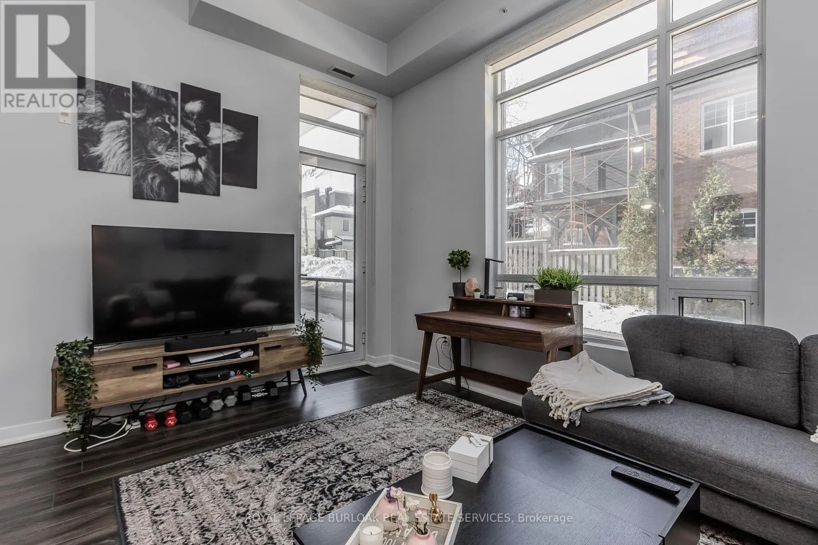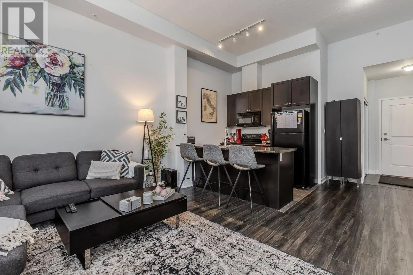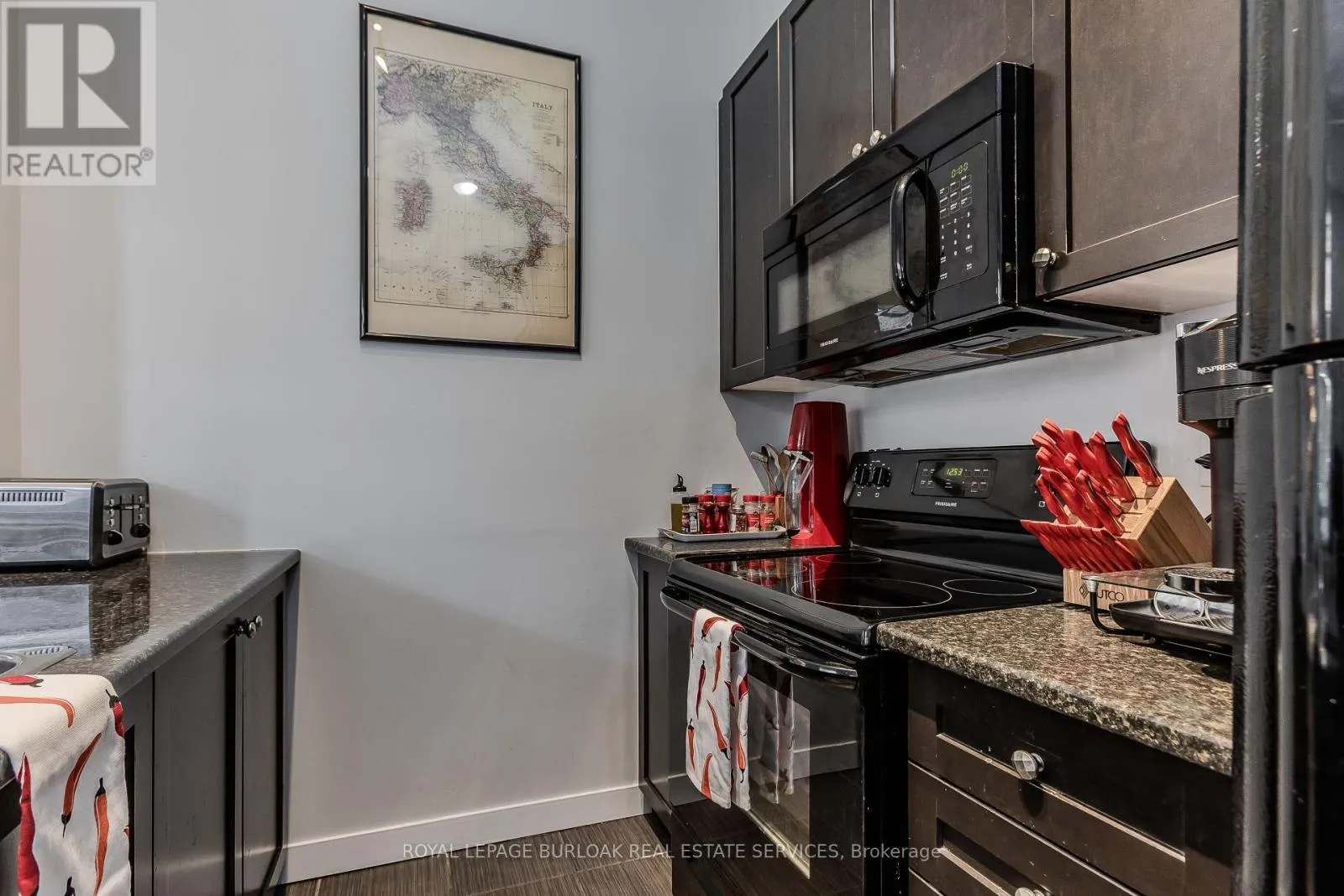 Cross Streets: Park Street South. ** Directions: James St S to Robinson St. Welcome to City Square, a stylish and modern condo in Hamilton's sought-after Durand neighbourhood! This stunning 1-bedroom, 1-bathroom unit offers 11ft ceilings and oversized windows, flooding the open-concept space with natural light. The contemporary kitchen features a peninsula with a breakfast bar, a pantry, and sleek finishes, while the spacious bedroom offers private balcony access. The modern bathroom boasts a glass and tile shower with ample counter space. Enjoy the convenience of in-suite laundry and a bright, airy living space. The City Square building offers hotel-like amenities, including an exercise room, party room, media room, yoga room, and a two-floor terrace with BBQs, bike storage, and lockers. Located just steps from shopping, dining, and public transit, this condo is also close to St. Joseph's Hospital and the Hunter Street GO Station, perfect for professionals and commuters. Don't miss this opportunity to live in one of Hamilton's most vibrant communities! Book your showing today! (id:27476)