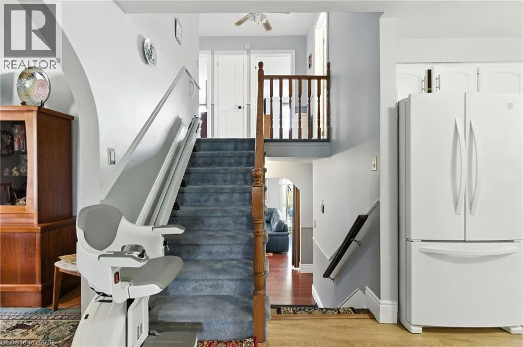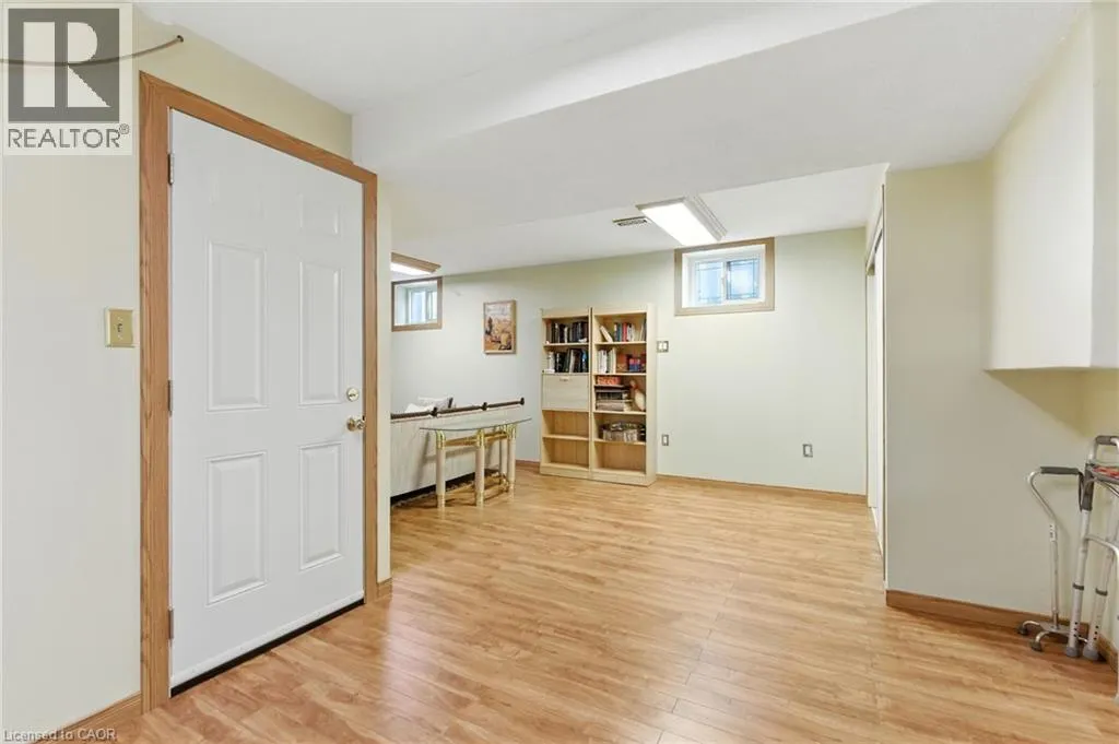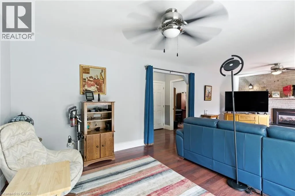From Upper Kenilworth Ave, head west on Landron Avenue and take third right onto Carson Drive Pride of ownership shines throughout this beautifully maintained 4-level backsplit with 4 beds and 2 full baths, offering space, comfort, and convenience with a magnificent location. Set across from a large park, beside excellent schools, and minutes from highway access and trails, this home is set in a serene setting yet close to everything. Gorgeous gardens and a big front porch welcome you, complemented by a concrete drive and attached 1.5-car garage with inside entry from the basement. Inside, natural light fills the generous living and dining rooms, perfect for gatherings. The spacious kitchen is ideal for family life, while upstairs youâll find three large bedrooms and a full bath with a double vanity. The lower level offers a great family room with fireplace, and walkout to the backyard, and complemented with a bedroom and full bath and separate side entrance. The basement adds even more functionality with a rec room, full laundry room, cold room, and a massive crawl space for storage, along with garage access. Out back, enjoy lush flower beds, a concrete patio with retractable awning, shed, and a covered sitting area designed for comfort and relaxation. A truly special home where every detail has been cared for, ready for its next proud owners. Everything is taken care of with the shingles (2025) just replaced, furnace + central air (2017), and all the appliances recently purchased, you can move in and not worry about a thing! (id:27476)