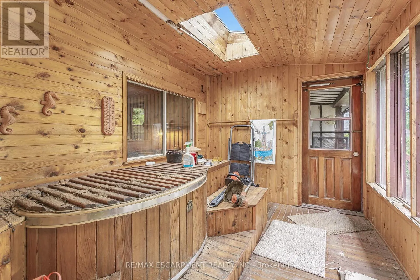 Cross Streets: Woodburn Road. ** Directions: Woodburn Road to Golf Club Road. Sitting on a generous 0.37-acre property, this sprawling 1,931 square foot bungalow presents you with an opportunity to renovate and add your own style, or start fresh and build the home of your dreams. Located in a desirable rural pocket of Hamilton, this property combines the best of quiet country living with everyday conveniences just minutes away. The home presents with three spacious bedrooms, a large living room with hardwood floors and a four piece bathroom. There is also a south facing sunroom and another room with an indoor hot tub. The backyard is spectacular with gardens everywhere and no rear neighbours. Make your dream a reality at this incredible property today! (id:27476)
