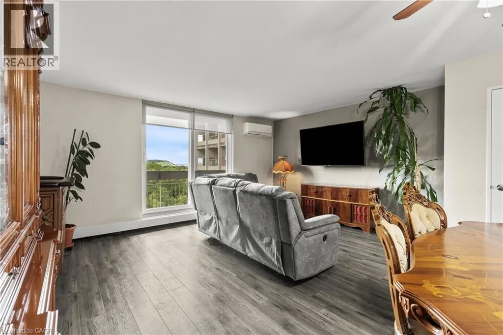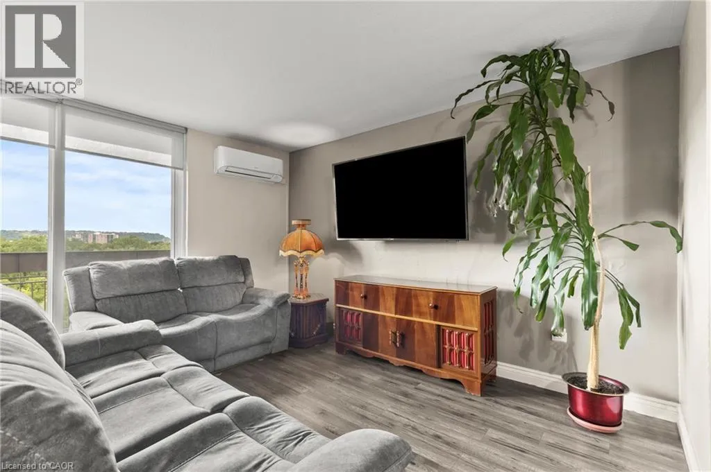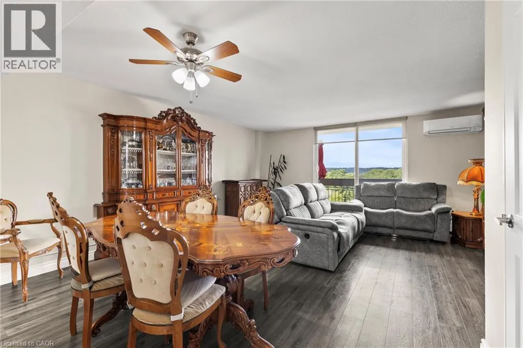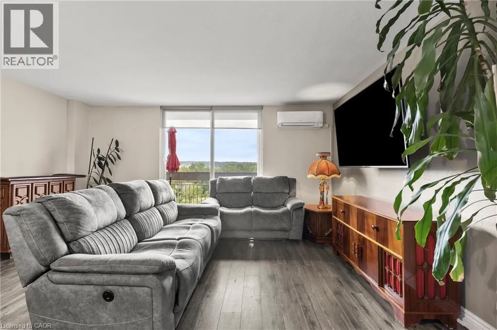 Exit Greenhill off of Redhill, Left on Quigley Step inside this rare two-level condo that feels more like a townhouse. On the main floor, youâre welcomed into a bright and functional layout finished with laminate flooring. The kitchen features ceramic tile flooring and a granite backsplash, offering both durability and style. From here, the space flows into the dining area and cozy family roomâperfect for entertaining or everyday living. Just off the family room, open the patio doors to your private balcony, freshly painted and upgraded with electrical. Itâs the perfect spot to enjoy summer evenings, morning coffee, or breathtaking sunsets over greenspace. Comfort is a priority on this level, thanks to a ductless AC/heat pump system that keeps the space cool in summer and warm in winter. Upstairs, youâll find vinyl flooring across the top landing, then spacious three bedrooms with breathtaking views, paired with a full bathroom that offers ample storage. Two additional AC units in the bedrooms ensure the upper level stays cool during warmer months. Upgraded closet doors, including full mirrored doors on the main level, and custom shelving throughout add both function and modern flair. Outside your front door, the location is ideal. With quick highway access, itâs perfect for commuters, and for those who enjoy the outdoors, nearby walking trails invite peaceful strolls through the neighbourhood. The building itself is rich with amenities: a covered basketball court with nets, a community garden, bike storage, party room, childrenâs playground, and BBQs for residents. Pet-friendly and designed with open-air sky streets, the community has a welcoming, townhome feel. For added convenience, this unit includes one exclusive parking spot and a storage lockerâmaking it as practical as it is unique. With its rare upgrades, thoughtful improvements, and two-story design, this condo is truly one of a kind. (id:27476)