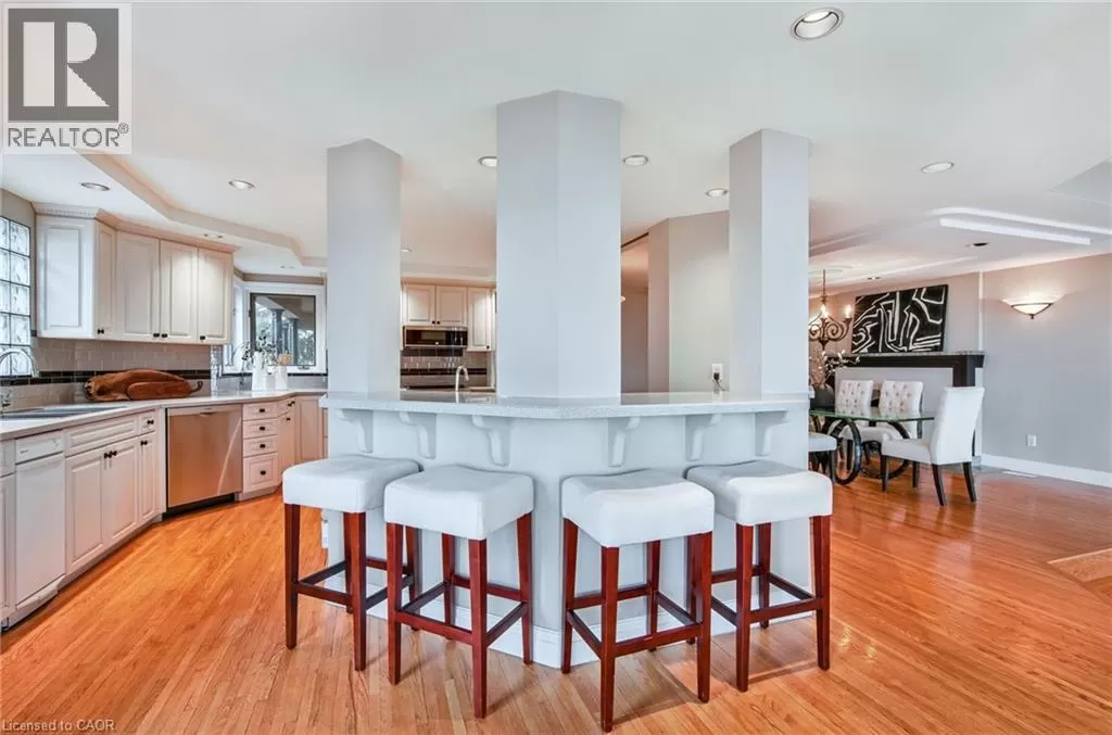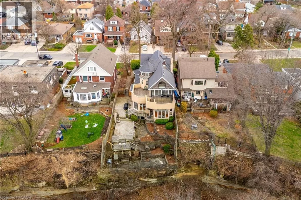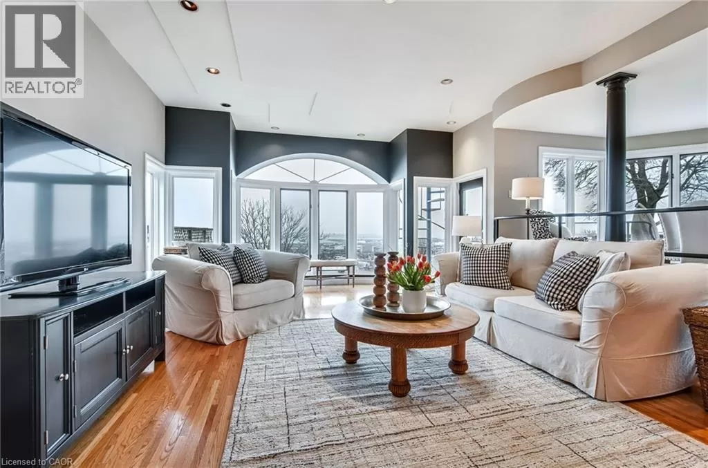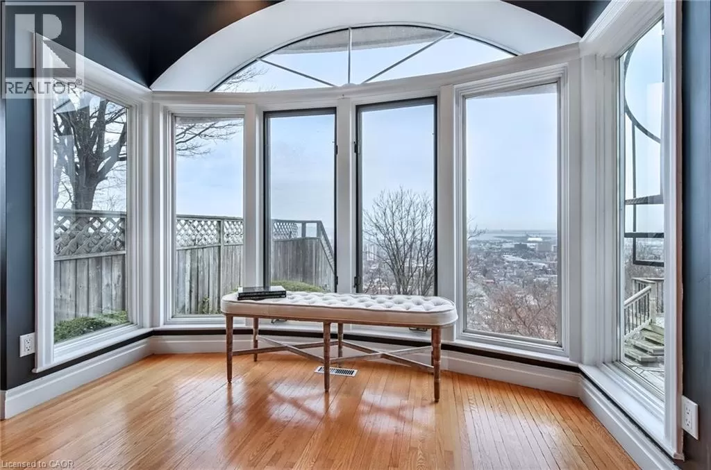 CONCESSION ST TO BELWOOD AVE, RIGHT ON MOUNTAIN PARK AVE THIS IS HOME! Welcome to 91 Mountain Park Avenueâa rare, generational family home that blends timeless character with modern design and million-dollar views. Natural light pours in through floor-to-ceiling windows, highlighting rich hardwood floors throughout the main level. The spacious kitchen offers ample counter space and modern amenities, ideal for entertaining family and friends. An open-concept layout flows beautifully with space for a full dining area, breakfast nook, and a sunken living roomâa cozy gathering spot for all. Just off the foyer, a versatile room overlooking the front porch is perfect for a home office or reading lounge. The large laundry/mudroom with garage access adds everyday convenience, while a 2-piece powder room and stained-glass accents add charm and character. Upstairs, two bright bedrooms offer generous closets and natural light. A renovated 4-piece bath leads to the primary suiteâfeaturing vaulted ceilings, a wood-burning fireplace, walk-in closet, 5-piece ensuite, and nearly 500 sq. ft. balcony with sweeping views of the city, and beyond. The third floor includes your fourth bedroom with skylights and a turret-style sitting area, a 3-piece bath, and a quiet office space. Outside, enjoy a double garage, landscaped walkways, multi-tiered gardens, four-tier deck, and a spiral staircase connecting outdoor spaces. This home is a private city-view oasis on the Niagara Escarpment. Luxury Certified. (id:27476)