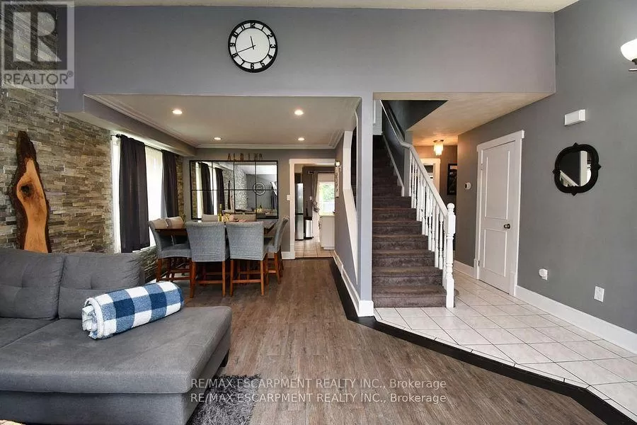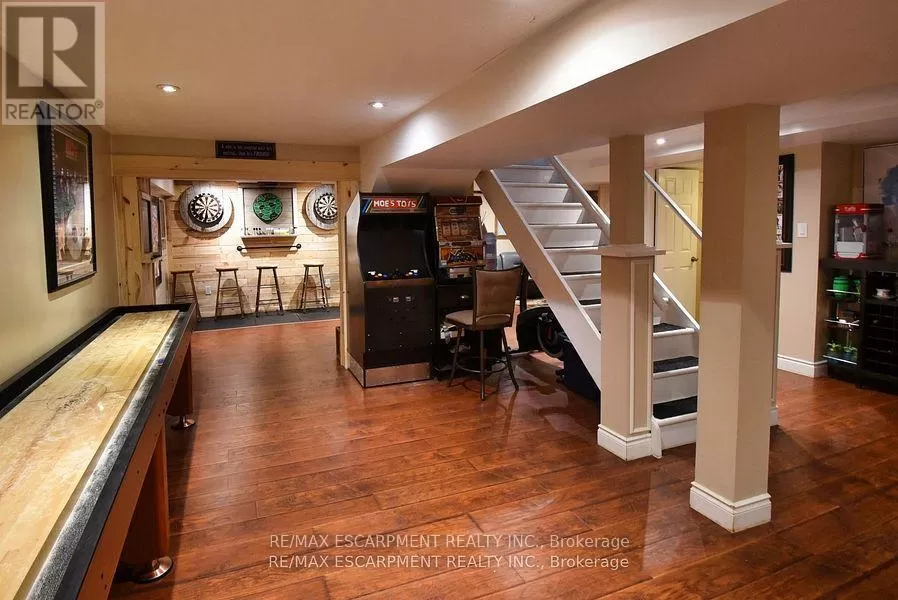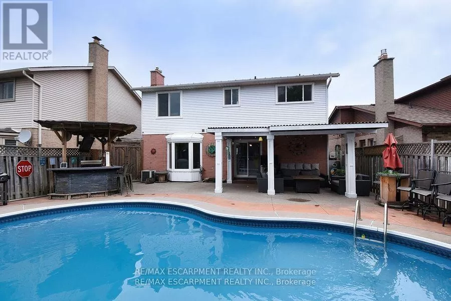 Cross Streets: RIDGEMOUNT. ** Directions: Between Upper Sherman & Upper Wentworth and South of Stone Church. Excellent 3 Bedroom 2 story home. Prime Mountain location. Modern layout. Newer vinyl plan floors. Newer steel roof 2021. Newer exposed aggregate concrete drive and patio. Newer eaves. Window and Doors 2020. Impressive ledger stone in living and dining room. Family room with gas fireplace. New /Gas BBQ and Firepit. Wood pizza over. Prime bedroom with ensuite. Spacious bedrooms. Large loft and storage area. Entertaining basement with bar, dart board and video games. Rec room with electric fire place. Dream yard with heated inground pool. Tiki bar. Covered Canopy. Great for entertaining. (id:27476)