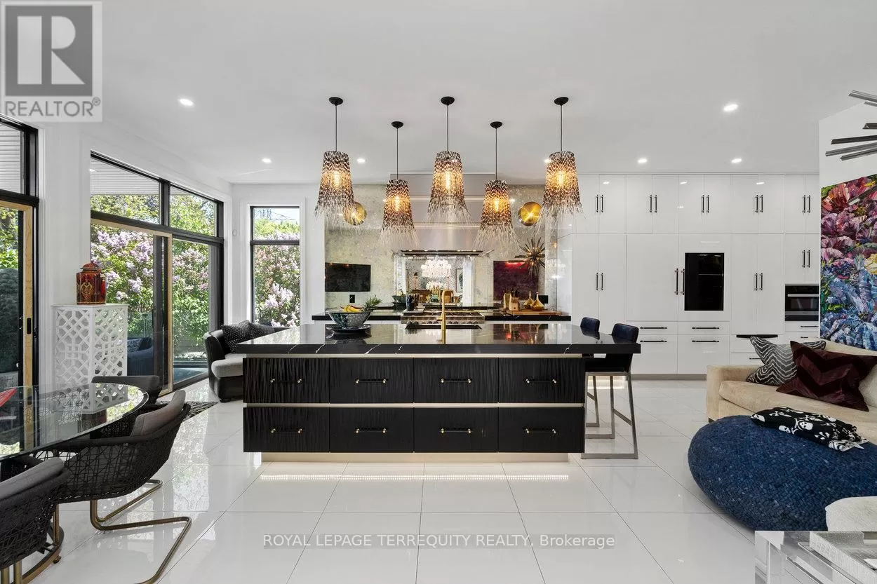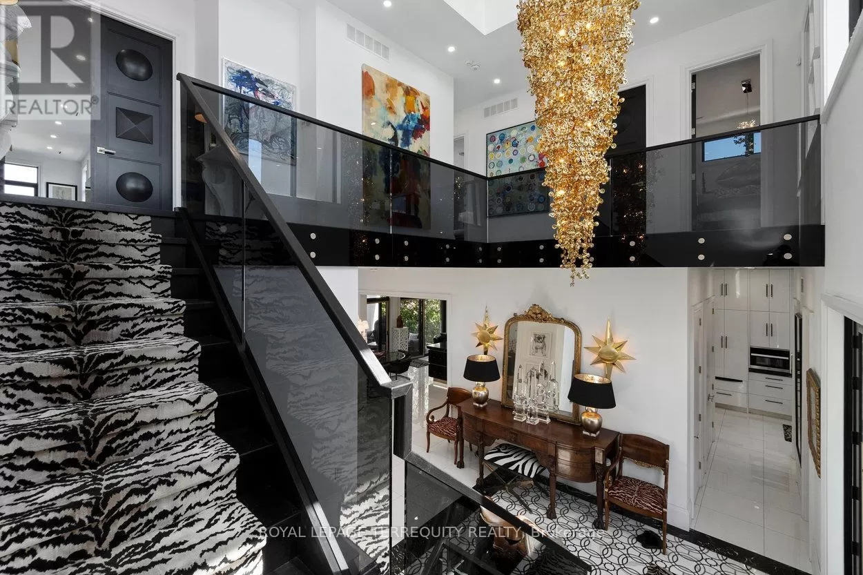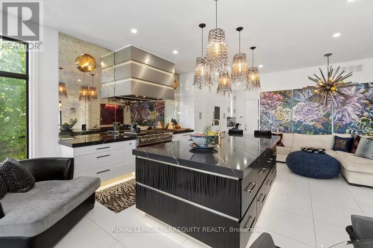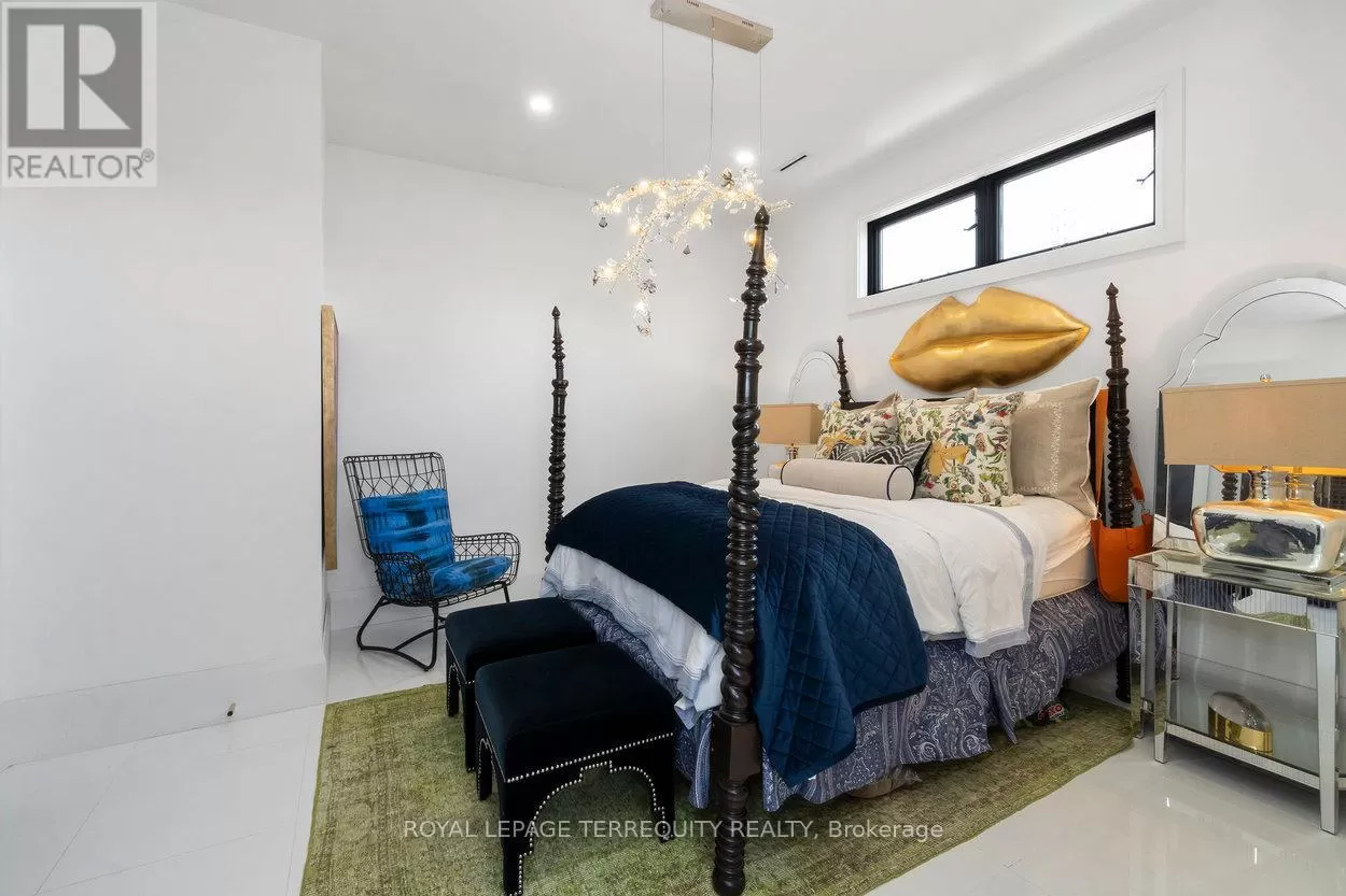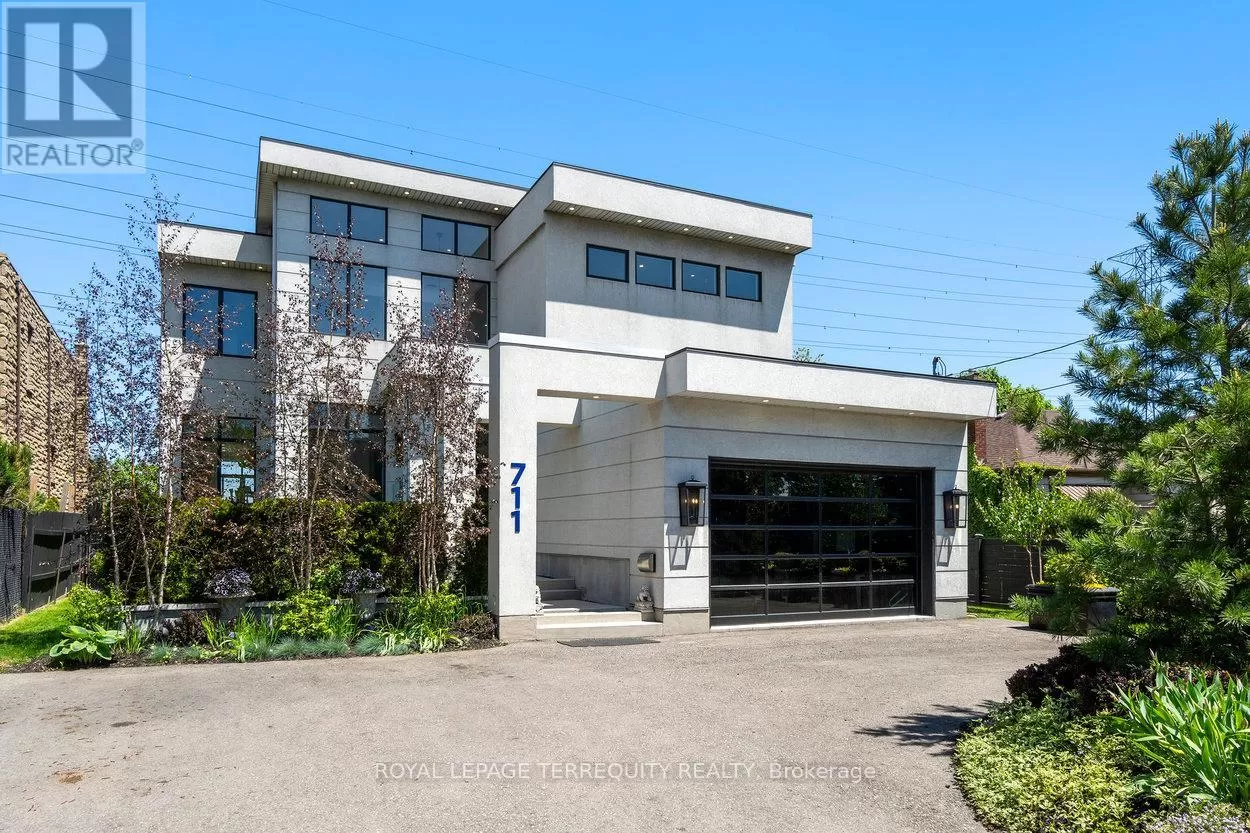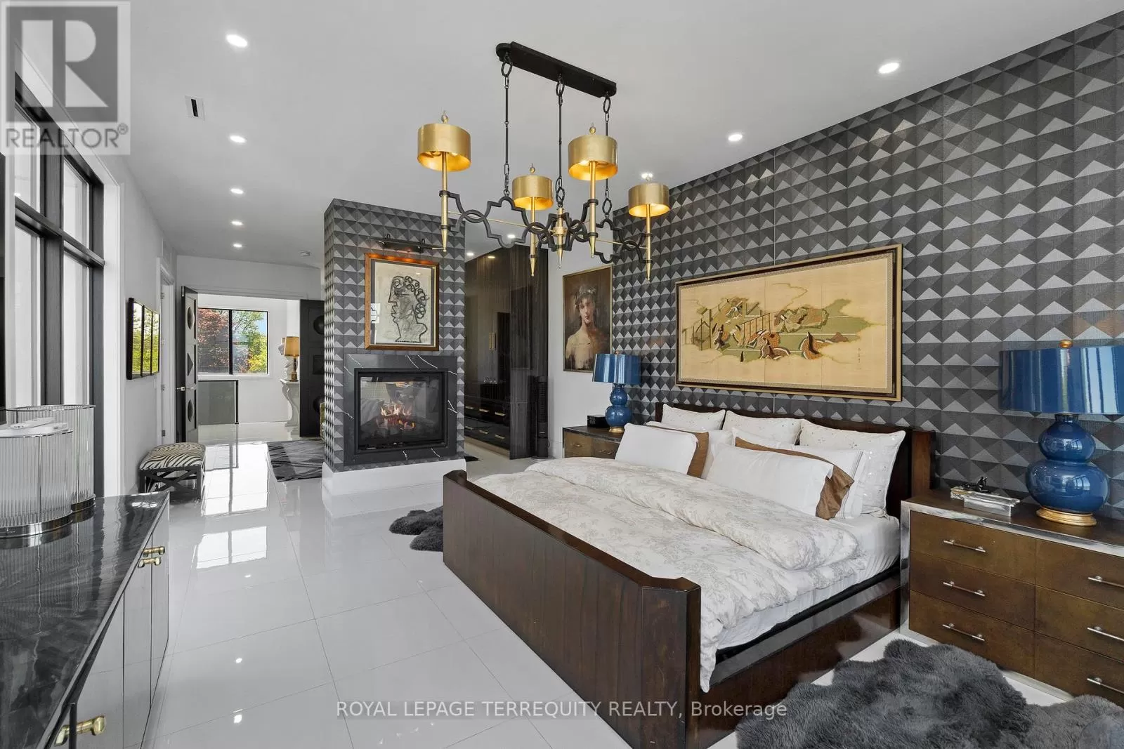 Eastport Drive and Beach Boulevard A rare offering on the shores of Lake Ontario, 711 Beach Blvd is a striking, custom-built residence completed in 2020, offering over 6,700 sq ft of total living space across three levels. Situated directly on the Waterfront Trail- 10 km of lakefront maintained by the City of Hamilton- this property boasts panoramic water views, total privacy, and direct access to the beach. With a 56' frontage that widens to 72' along the lakeside, and a professionally landscaped lot with multiple outdoor terraces, this is coastal living at its most refined. The home is a masterclass in design and craftsmanship, with 10' ceilings, Architectural Series Pella windows & doors, four Duradeck-covered terraces & an elegant stucco façade. Inside, high-end finishes abound: from custom millwork & Emtek marble hardware to Visual Comfort chandeliers, Swarovski accents & hand-cut marble inlays. The main floor is anchored by a dramatic two-storey foyer and a showstopping kitchen with commercial-grade appliances, grand Caesarstone island, built-in desk/office area & a bespoke bar & coffee room. The upper level features three bedrooms, each with an ensuite bath, including a luxurious primary retreat with a double-sided fireplace, lake views, and a spa-style bath with a huge gold soaker tub & an incredible double vanity. The lower level includes two additional bedrooms/offices, a large recreation/media room, a gym area & abundant storage. With a Jacuzzi swim spa, double garage with lift potential & outdoor parking for 5, this is a one-of-a-kind beachside sanctuary designed for elevated everyday living. (id:27476)