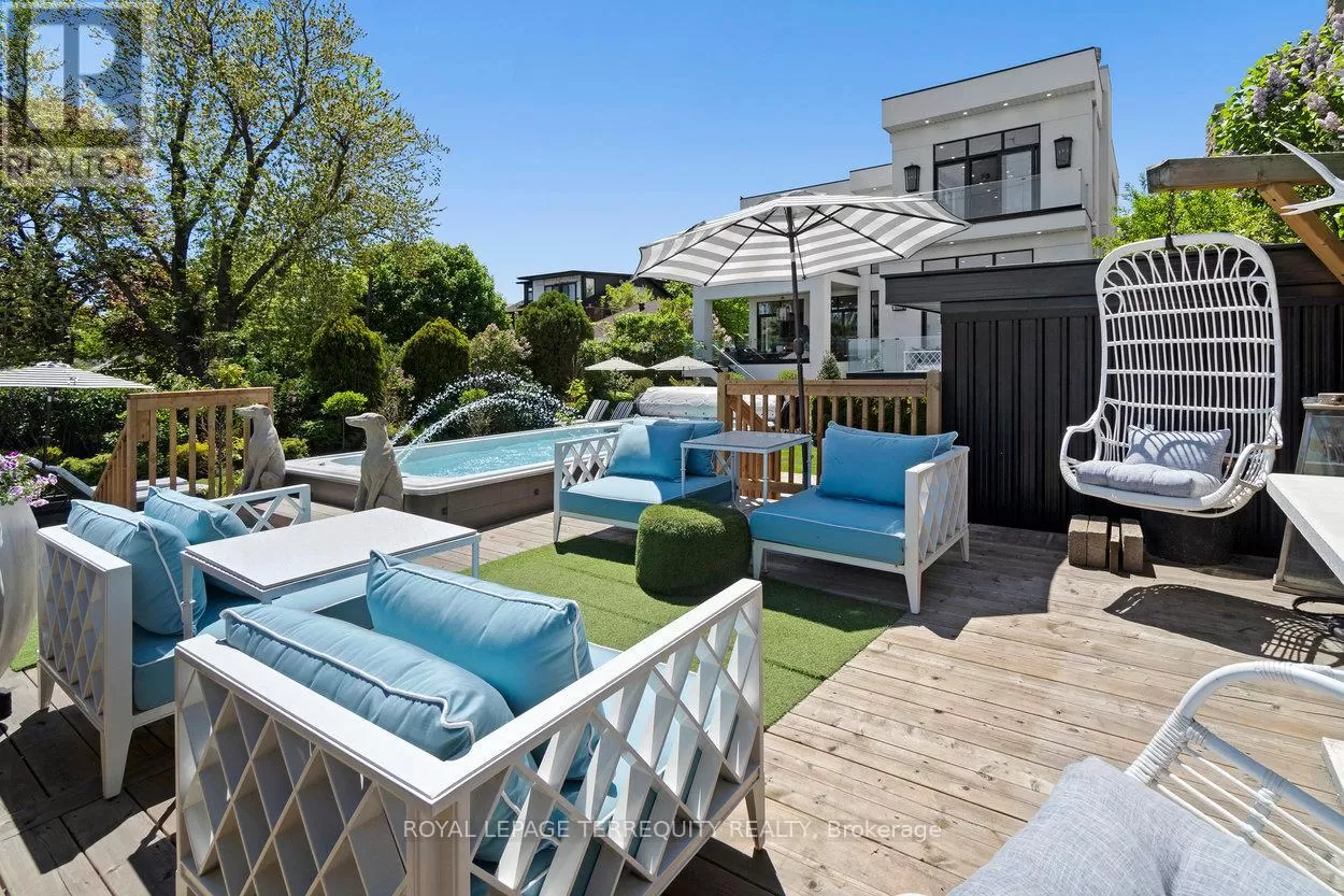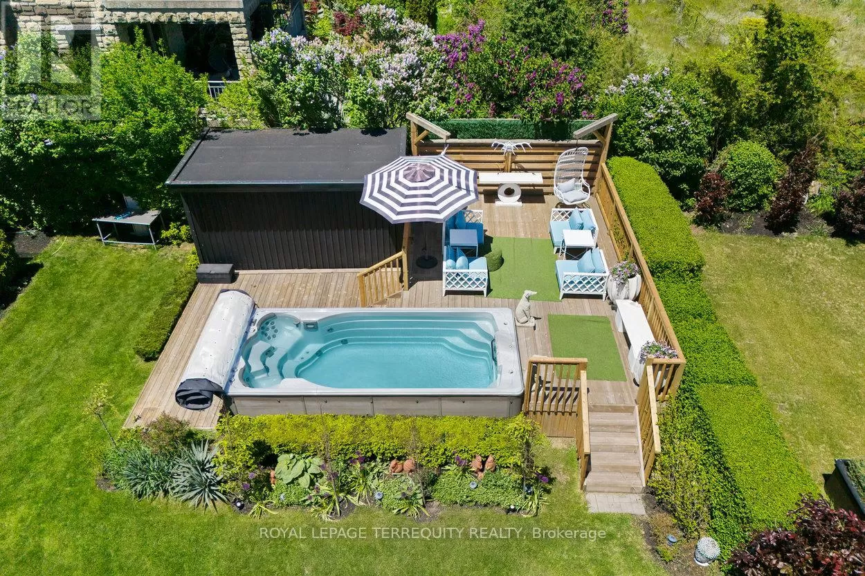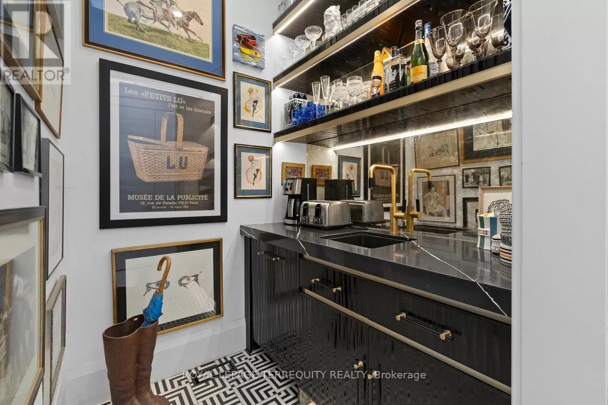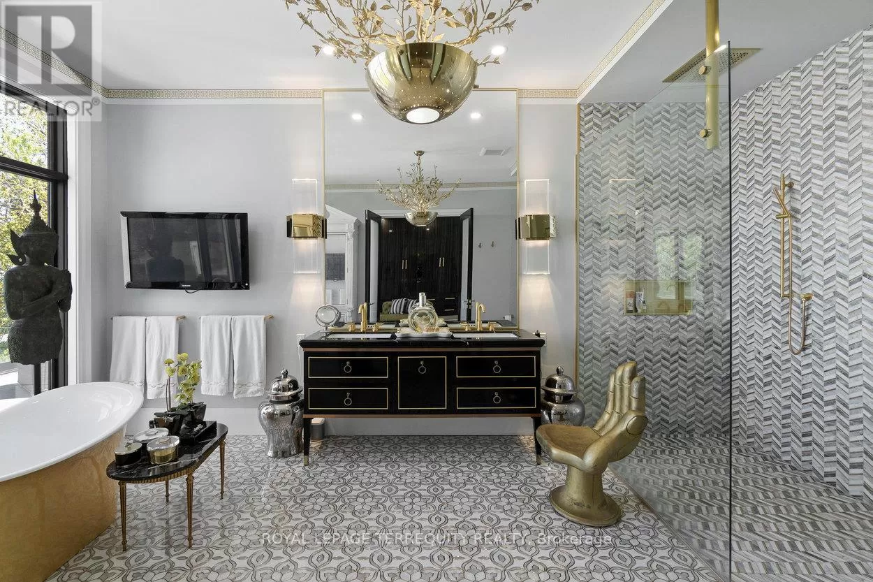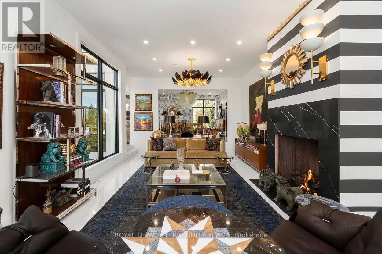 Eastport Drive and Beach Boulevard A rare offering on the shores of Lake Ontario, 711 Beach Blvd is a striking, custom-built residence completed in 2020, offering over 6,700 sq ft of total living space across three levels. Situated directly on the Waterfront Trail- 10 km of lakefront maintained by the City of Hamilton- this property boasts panoramic water views, total privacy, and direct access to the beach. With a 56' frontage that widens to 72' along the lakeside, and a professionally landscaped lot with multiple outdoor terraces, this is coastal living at its most refined. The home is a masterclass in design and craftsmanship, with 10' ceilings, Architectural Series Pella windows & doors, four Duradeck-covered terraces & an elegant stucco façade. Inside, high-end finishes abound: from custom millwork & Emtek marble hardware to Visual Comfort chandeliers, Swarovski accents & hand-cut marble inlays. The main floor is anchored by a dramatic two-storey foyer and a showstopping kitchen with commercial-grade appliances, grand Caesarstone island, built-in desk/office area & a bespoke bar & coffee room. The upper level features three bedrooms, each with an ensuite bath, including a luxurious primary retreat with a double-sided fireplace, lake views, and a spa-style bath with a huge gold soaker tub & an incredible double vanity. The lower level includes two additional bedrooms/offices, a large recreation/media room, a gym area & abundant storage. With a Jacuzzi swim spa, double garage with lift potential & outdoor parking for 5, this is a one-of-a-kind beachside sanctuary designed for elevated everyday living. (id:27476)