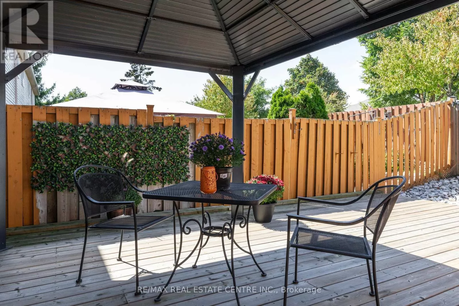 Cross Streets: RYMAL. ** Directions: UPPER GAGE TO CADHAM. This beautifully maintained 3-bed, 3-bath townhome offers the perfect balance of comfort, style & convenienceall in a welcoming community with low monthly condo road/common area fee. Move-in ready, ideal for anyone looking for a low-maintenance lifestyle without compromise. Step inside to a long foyer that sets the tone for the home with gleaming engineered hardwood floors through most of the main level & provides convenient inside access to the garage. A stylish 2-pc powder room features stone accent wall & granite counter. At the heart is the updated kitchen, designed with both function & style in mind. Granite counters, beveled tile backsplash & large island with seating make it perfect for entertaining. A pantry with sliding shelves ensures everything has its place. The open-concept living & dining area is bright & inviting, large windows filling the space with natural light. A Roxul-insulated, sound-proofed wall creates the perfect spot for your entertainment setup. Patio doors lead to a private backyard oasis featuring a large deck with gazebo, fully fenced & no grass to cutideal for relaxing & entertaining outdoors. Upstairs, youll find cozy carpeting in all 3 bedrooms. paired with engineered hardwood throughout the hallway & stairs. The spacious primary offers a large closet & ensuite privilege to a full bath with newer bathfitter surround, large vanity with granite counter. A fully finished lower level extends your living space with a sizeable rec room, 2-pc bath, laundry, utility room & generous storage spaces. Notable features: Newer insulated garage door, HVAC approx 2017, Roof approx. 5 years, Newer eaves, ComfortNET thermostat, Blackout curtains with reinforced rods, New concrete steps & railing at entry. Centrally located on Hamilton Mountain, just minutes from Red Hill Parkway, with access to QEW & LINC. Nearby public transit, schools, parks & shopping. This home truly has it all - modern updates & thoughtful details - do not miss this opportunity! (id:27476)