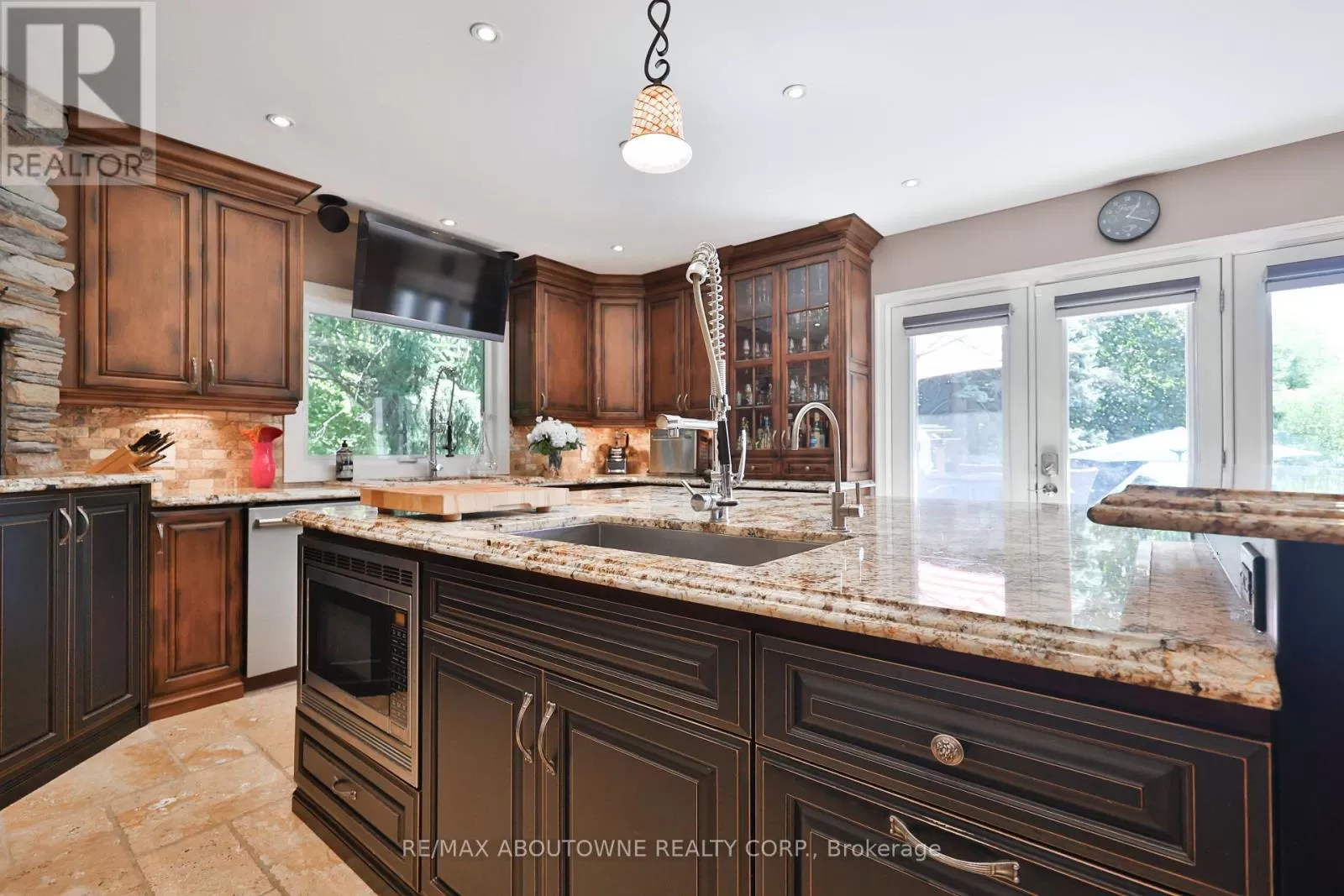 Main / School Welcome to Muskoka in the city! This extraordinary .96ac property, with its breathtaking views and total privacy, presents an extremely rare real estate opportunity. This gorgeous sprawling bungalow features 6,317SF of high-end finished space (3,417 AG) which over the last 15 years has had over 1 mil. in whole home renovations. Just to mention a few: Georgian Bay Ledge Rock exterior and massive rooftop terrace to enjoy the spectacular scenery. CHEF'S CUSTOM DREAM KITCHEN with solid wood cabinets, gas fireplace, Viking Pro Series 48" 6-burner double oven gas range with commercial grade exhaust hood, 3 dishwashers, Bosch B/I microwave, Electrolux 66" fridge & freezer combo, Hisense beverage fridge, Reverse Osmosis drinking water system, Commercial draft beer taps with chilled lines and True Keg cooler, Barista bar with La Spaziale commercial espresso machine, Pioneer B/I 5.1 Dolby audio system with subwoofer, Sony 42" TV and heated floors. You may never want to leave your kitchen! Step into the Huge Great Room with 10' ceilings. LED pot lighting T/O. Hardwood flooring T/O. Custom library/office with 2-sided gas fireplace and lounge area. Bathrooms have high-end fixturing, heated floors and extensive use of marble, granite and porcelain. Electronic blinds in kitchen, great room and primary bedroom. B/I temperature controlled wine cabinet in dining room. Special fiberglass roof shingles with 50 year warranty. Eavestroughs have LeafFilter screens. All main windows and patio doors. Concrete pool has a special paint finish, new Hayward heater, pump and salt water filtration. Recently completed basement with industrial design inspiration and bedroom with Arizona vistas. 22,000 watt Generac back-up generator. The addition of a 3-car insulated garage, heated and air conditioned. Extensive landscaping. Please click on the link below for all inclusions and floorplans. Just minutes to shopping, restaurants, schools, playground, park, trails, golf, Aldershot GO, etc. 10+++ (id:27476)