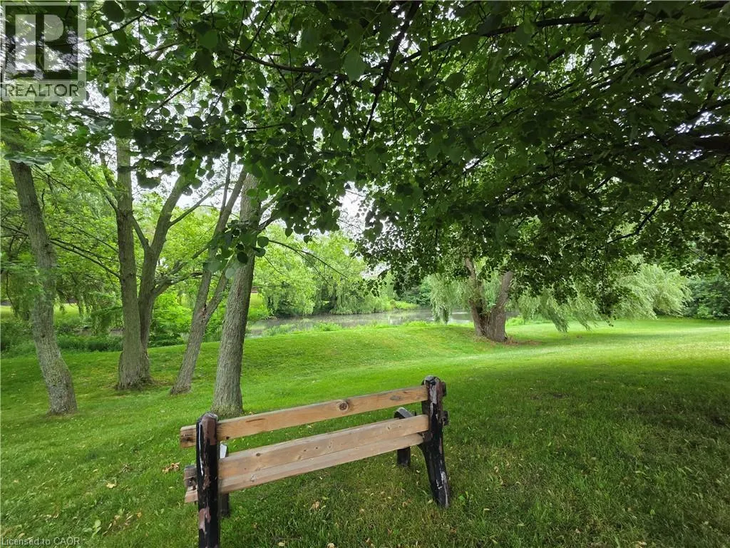 South East corner of Garth Street & Rymal Road West Welcome to the 1 Szollosy Circle in the vibrant 55+ community of St. Elizabeth Village. This charming, bright, well-maintained end-unit bungalow-town offers one-floor living with a neutral palette, laminate flooring throughout most of the home, and soft carpet in the primary bedroom for added comfort. Ideally located near the main entrance for easy access and just a short walk to the villageâs many amenities. The layout includes two rear-facing bedrooms with generous closetsâone with sliding doors to a private deck overlooking green space, ideal as a bedroom, dining room, or office. The spacious bathroom features a low-threshold Mirolin walk-in shower with built-in seat and grab bar. Monthly fees include property taxes, exterior maintenance (roof, windows, doors, siding), grounds care, and full access to resort-style amenities: indoor pool, hot tub, gym, yoga and dance studios, pickleball court, walking trails, wellness centre, plus on-site café, pharmacy, church, doctors, physio, massage clinic, and salon. (id:27476)