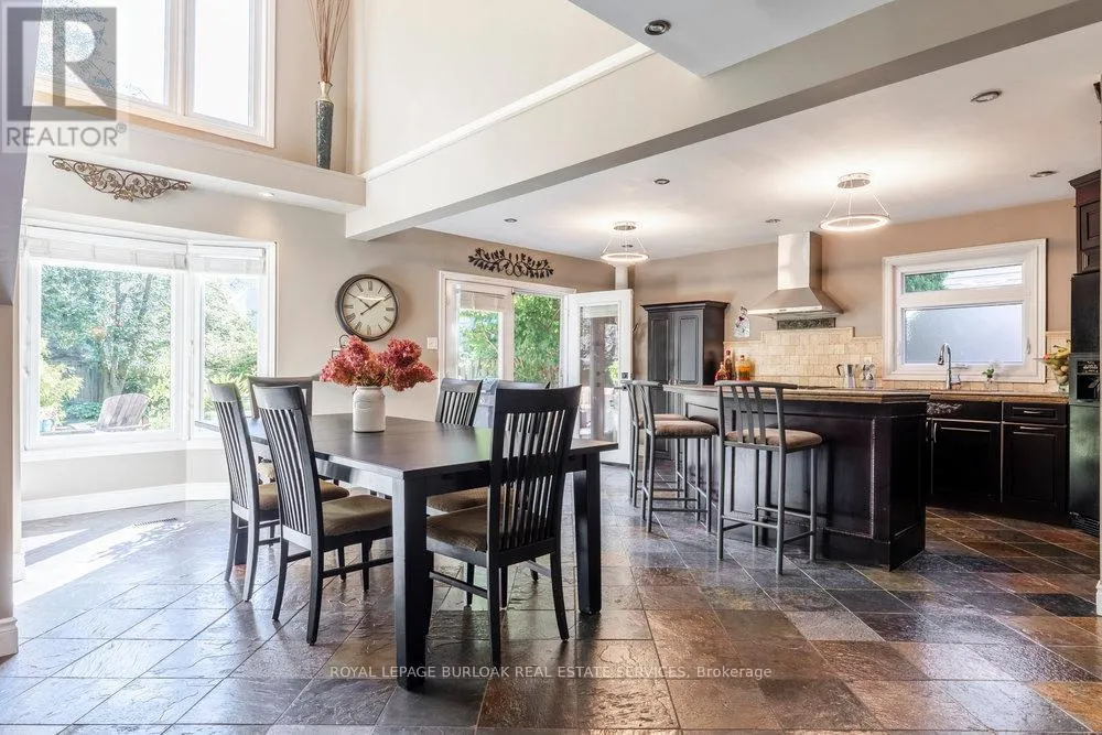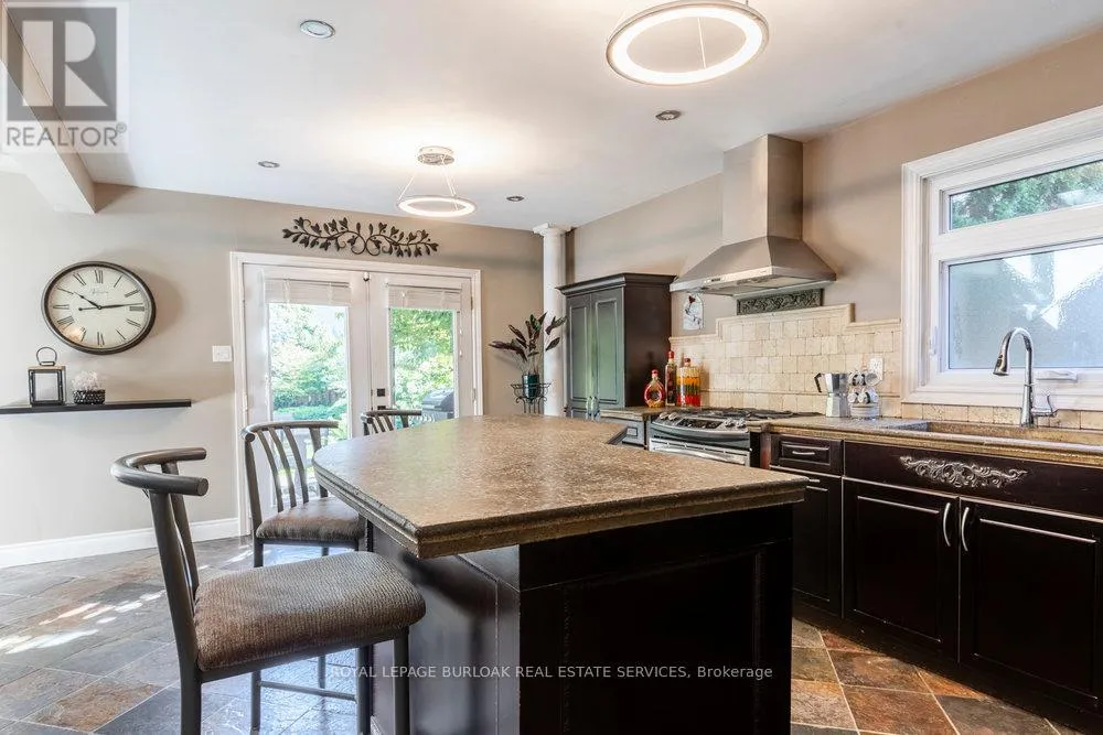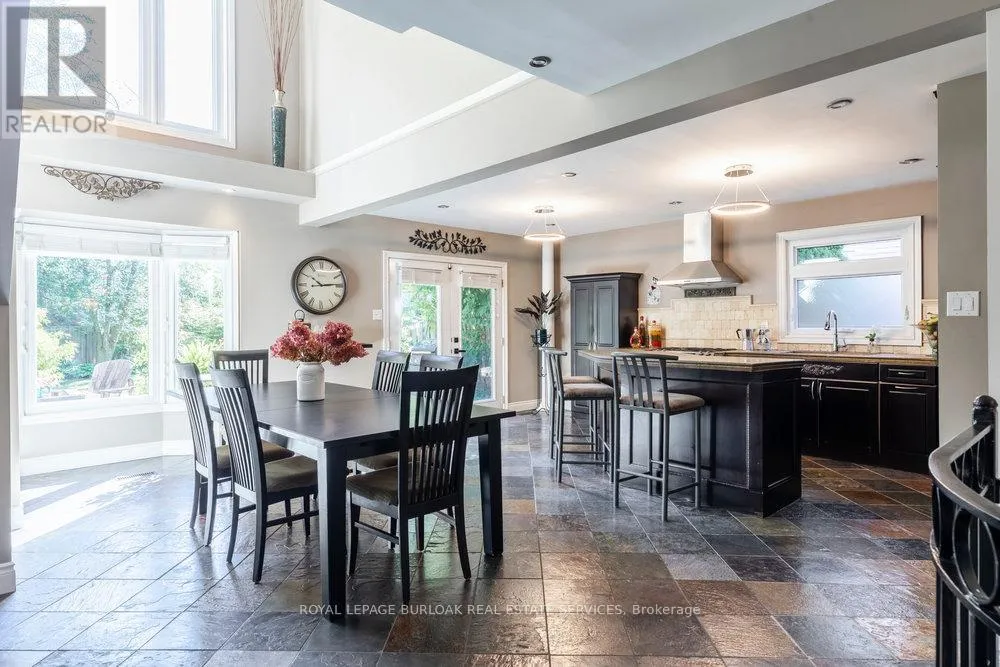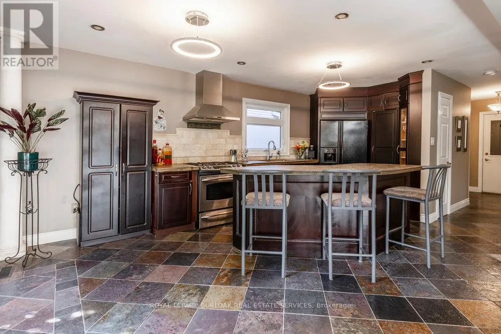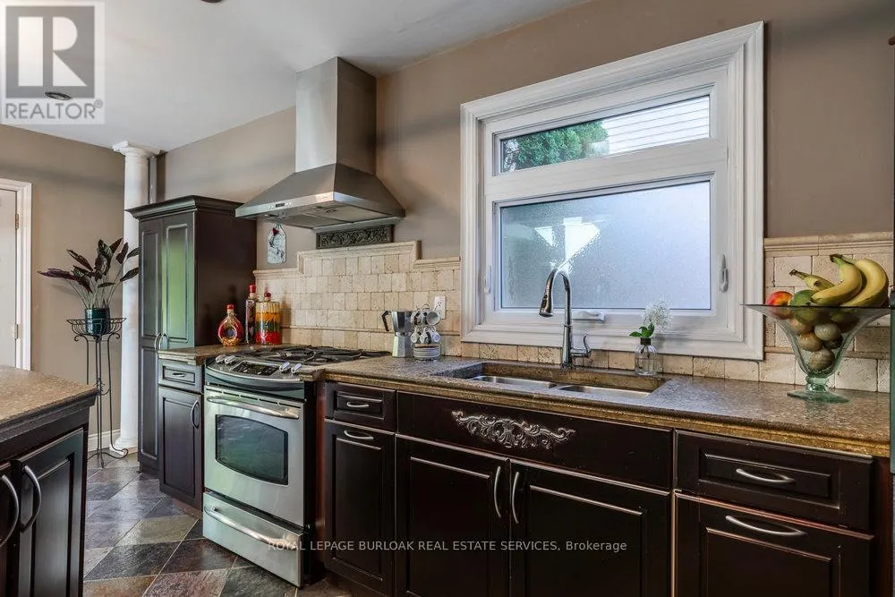 York Rd. to Fieldgate Street Discover your family's dream home in the charming enclave of Dundas! Nestled on a quiet, family-friendly street, this exquisite residence is tailored for modern family living. As you step inside, you are welcomed by a warm and inviting atmosphere, fully updated and move-in ready. The main floor is a haven for entertaining, featuring a spacious living room and a sunken family room with a cozy wood-burning fireplace. The expansive dining area boasts a two-storey high ceiling, complemented by a modern kitchen with rich cabinetry, concrete countertops, and ample storage. Venture outside to a stunning backyard oasis, complete with lush trees and gardens for ultimate privacy and plenty of grass for the kids and pets to enjoy. Convenience abounds with a 3-piece bathroom, main floor stacked laundry, and inside access from the double car garage. Upstairs, the home offers four generous bedrooms, an office, and a spacious 5-piece bathroom. The fully finished basement is a versatile space with a rec room for movie nights and a utility room brimming with storage. In addition, a fully separate basement suite with its own outdoor entrance provides endless possibilities. Located close to schools, parks, highway access, and amenities, this home is truly a dream come true for any family! (id:27476)