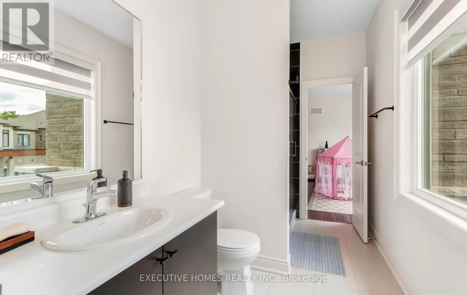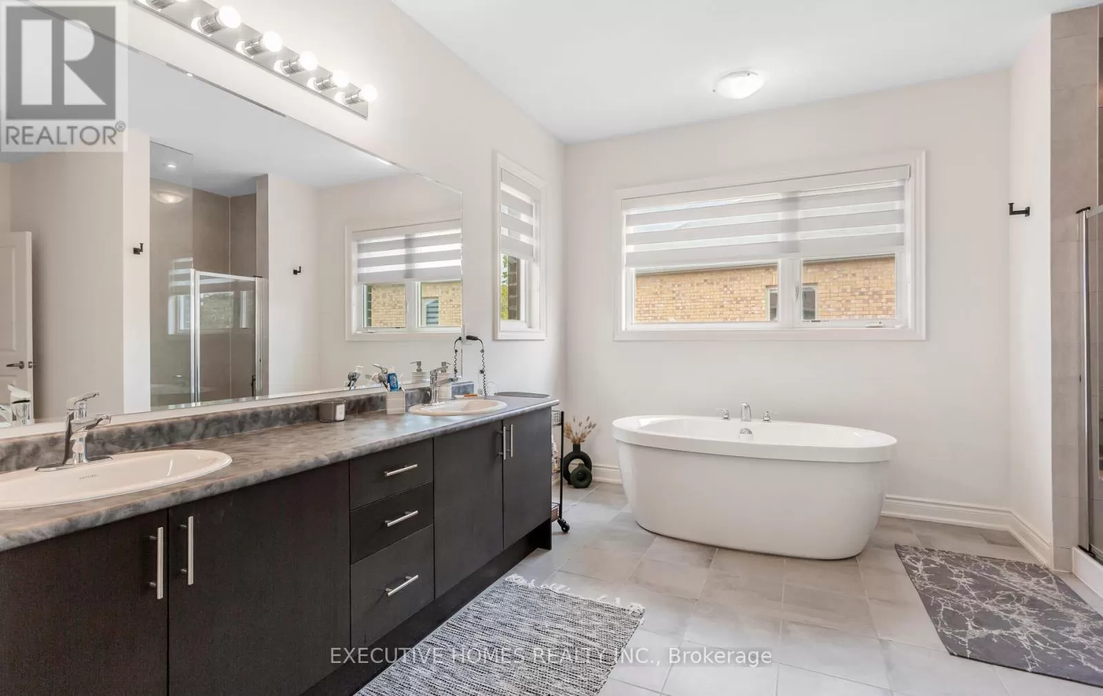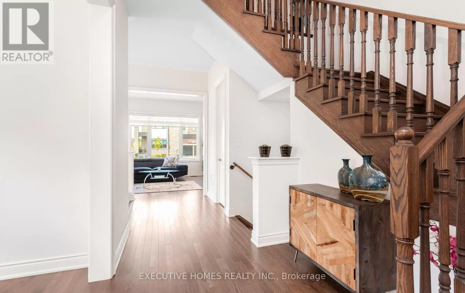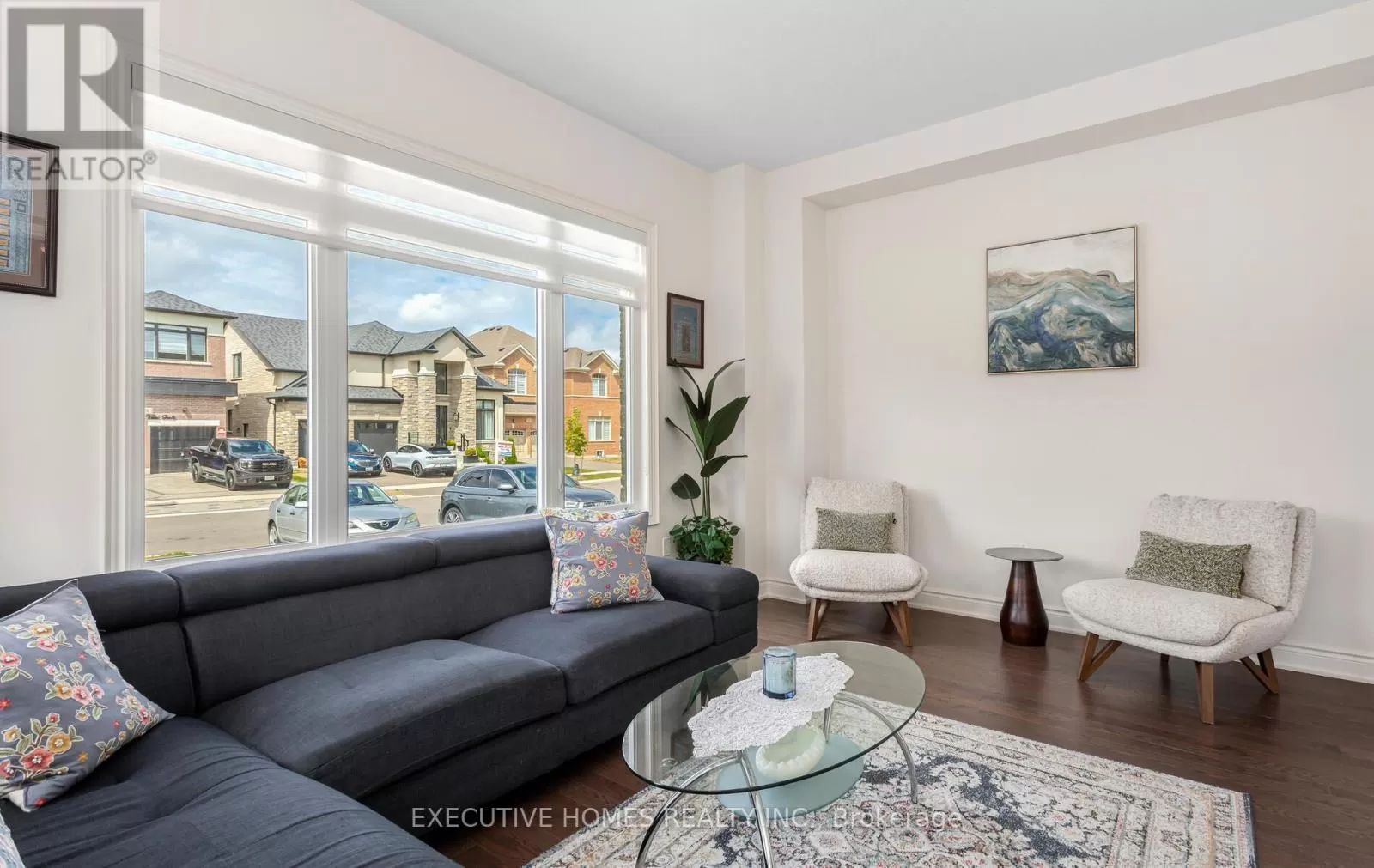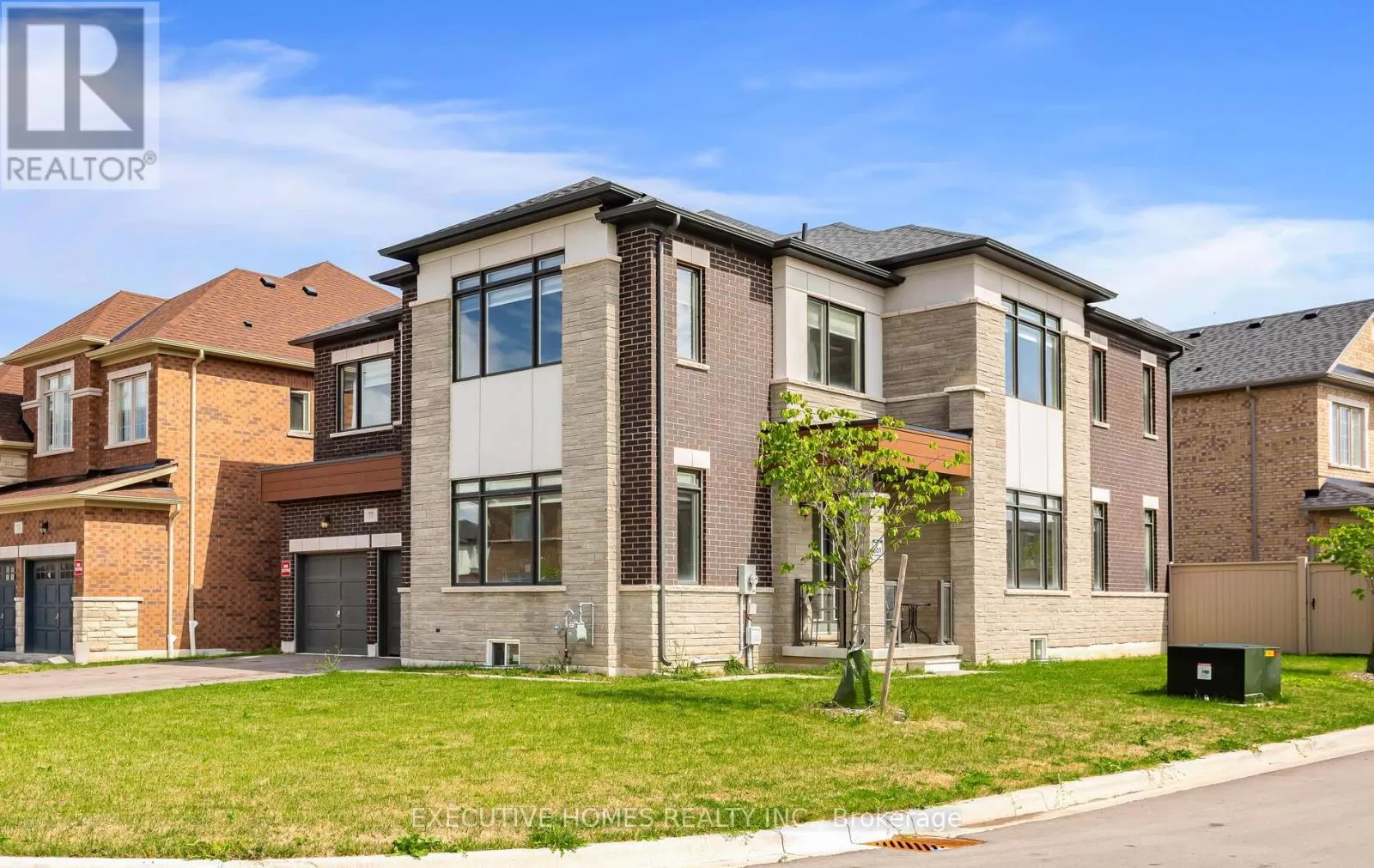 Cross Streets: Dundas/Kerns Road. ** Directions: WEST. A great opportunity to own this almost brand new, stunning and spacious corner lot having huge Walk Out Basement offers around 4,000 sq ft of living space. This home features hardwood flooring throughout, a chef's kitchen with high end appliances, marble countertops and a large center island, expansive windows filling the space with natural light, and a cozy family room with coffered ceilings and a gas fireplace. Additionally, the main level includes a spacious office or in-law suite, adding convenience to your lifestyle. The primary bedroom offers a walk-in closet and a beautiful 5-piece ensuite, while three additional bedrooms each come with their own ensuites and walk-in closets. Spacious Media/ Ent lounge on upper floor. Completing this home is a full-sized unspoiled basement, providing endless potential for customization and expansion.Close Proximity To Go Station, Amenities, Highways, School. (id:27476)