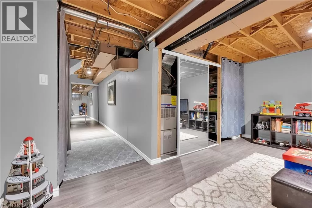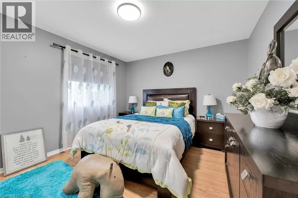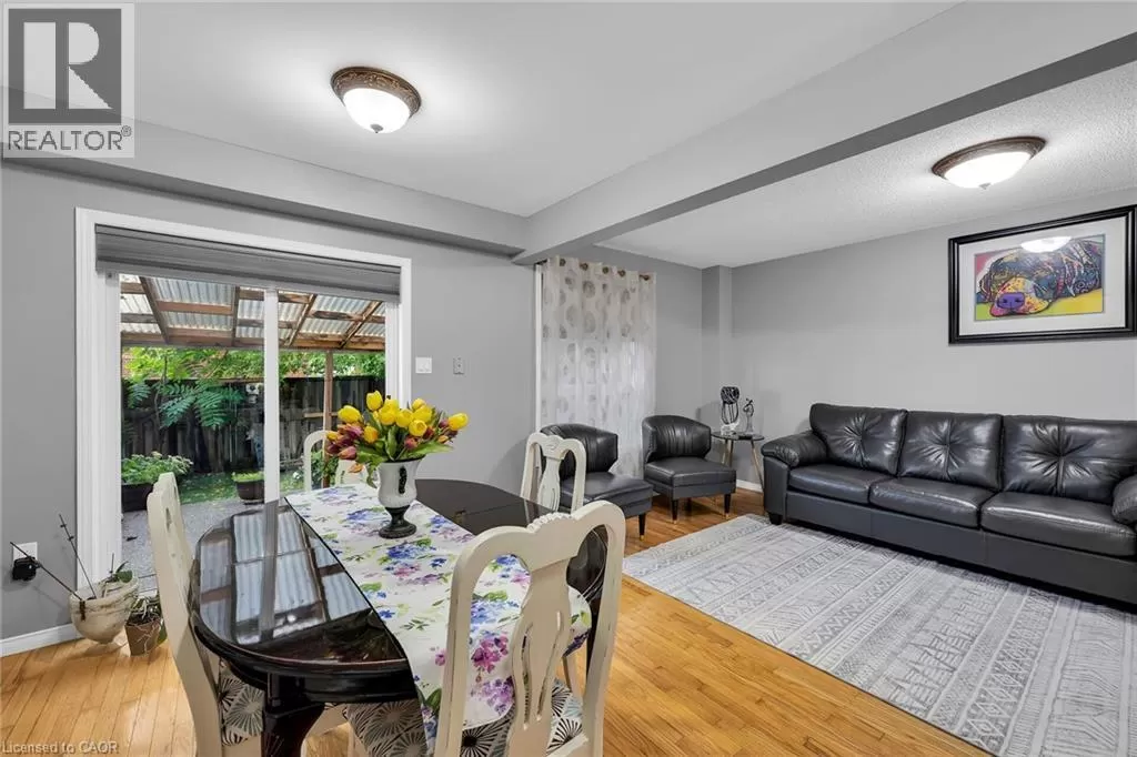 Barton St towards Grays Welcome to 5 Vulcan Court, Stoney Creek, a beautifully maintained freehold townhome with NO condo fees, nestled on a quiet court in a prime location close to all amenities.This move-in ready gem offers a blend of comfort, functionality, and pride of ownership throughout. Step inside to discover a warm and inviting open-concept layout featuring a spacious living and dining area with gleaming hardwood floors and an abundance of natural light. The oak staircase and absence of carpeting throughout the home provide both elegance and ease of maintenance. The kitchen is open and functional, perfect for everyday living and entertaining. Upstairs, youâll find generously sized bedroom ideal for families, guests, or a home office setup. The finished basement offers additional living space perfect for a rec room, gym, or home theatre. Step outside to your private backyard oasis, complete with a beautiful aggregate concrete patio and driveway, creating a clean and upscale exterior. The large lot offers plenty of space for outdoor entertaining, gardening, or simply relaxing in privacy. Additional features include a single-car garage with interior access, central location just 5 minutes from the lake, and convenient access to the QEW, schools, parks, shopping, and public transit. Donât miss your opportunity to own this stunning townhome that truly shows pride of ownership. Whether you're a first-time buyer, investor, or downsizer, 5 Vulcan Crt has everything youâve been looking for and more. (id:27476)